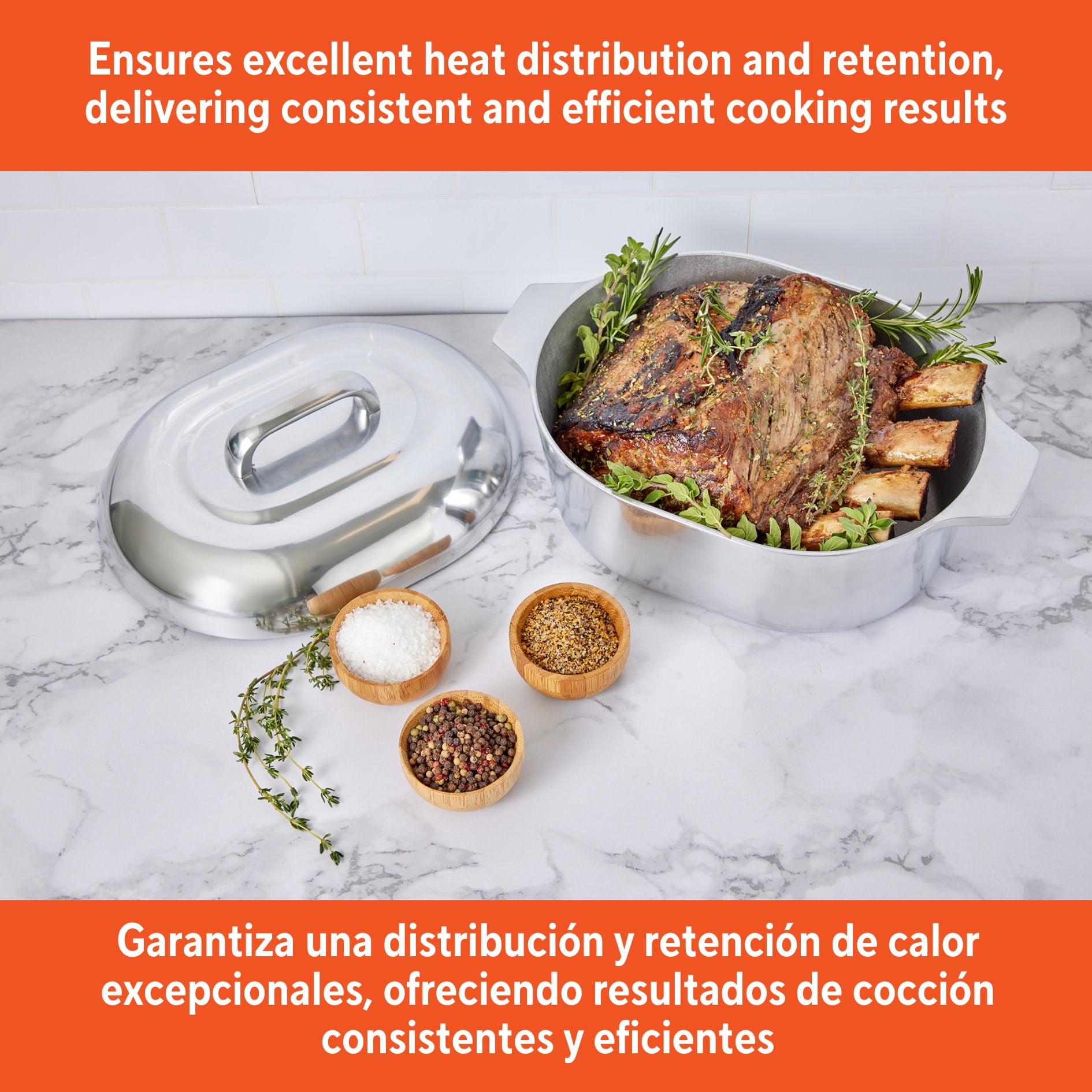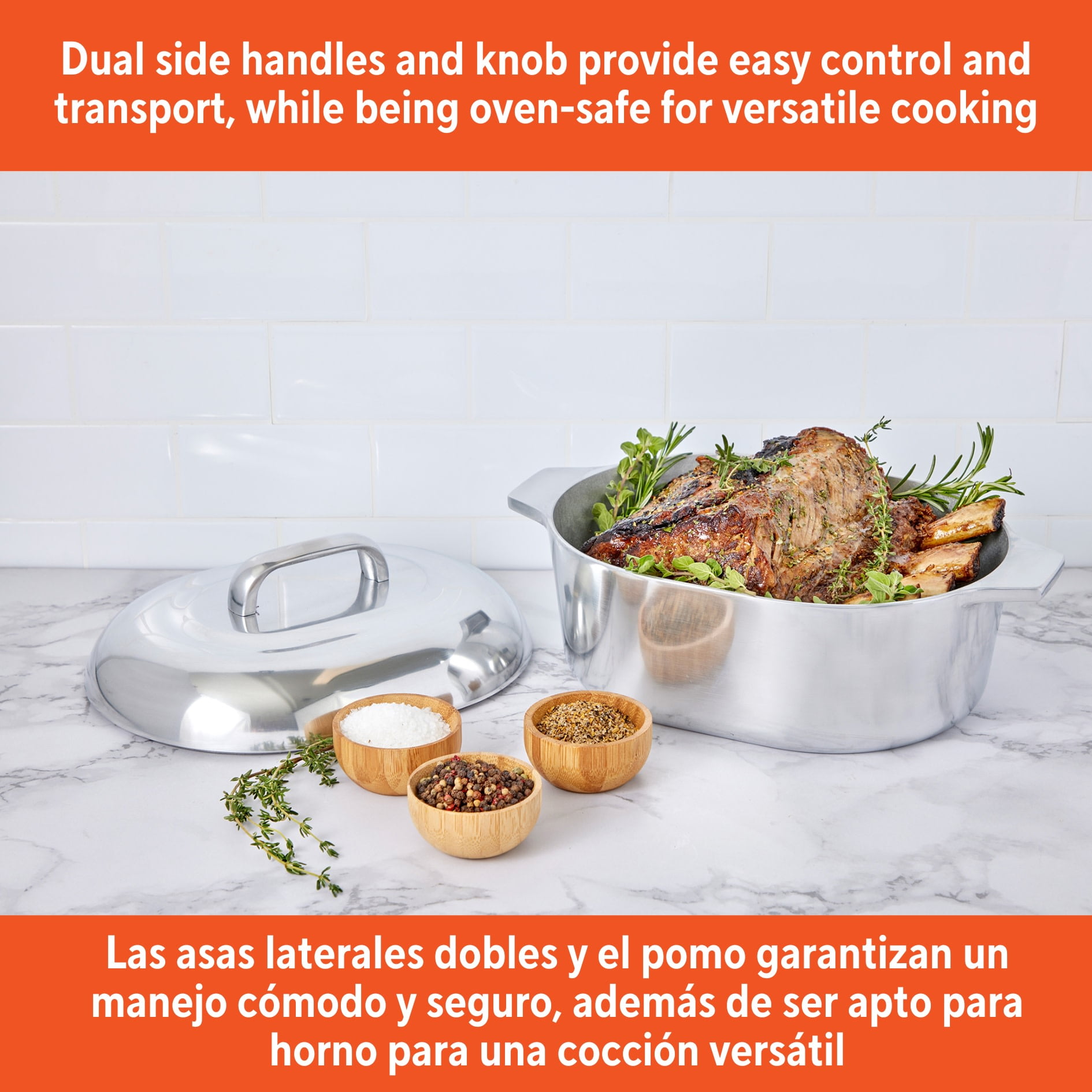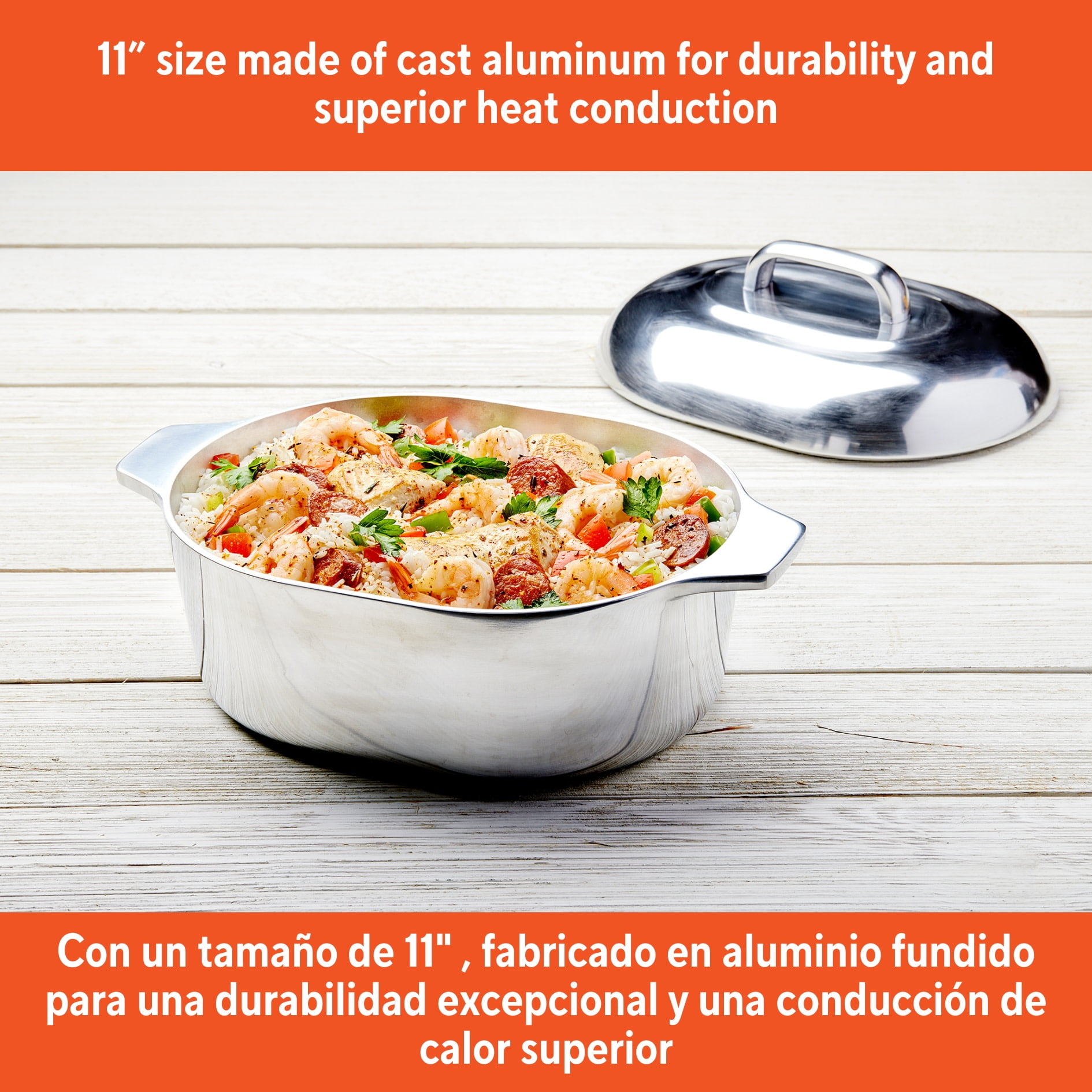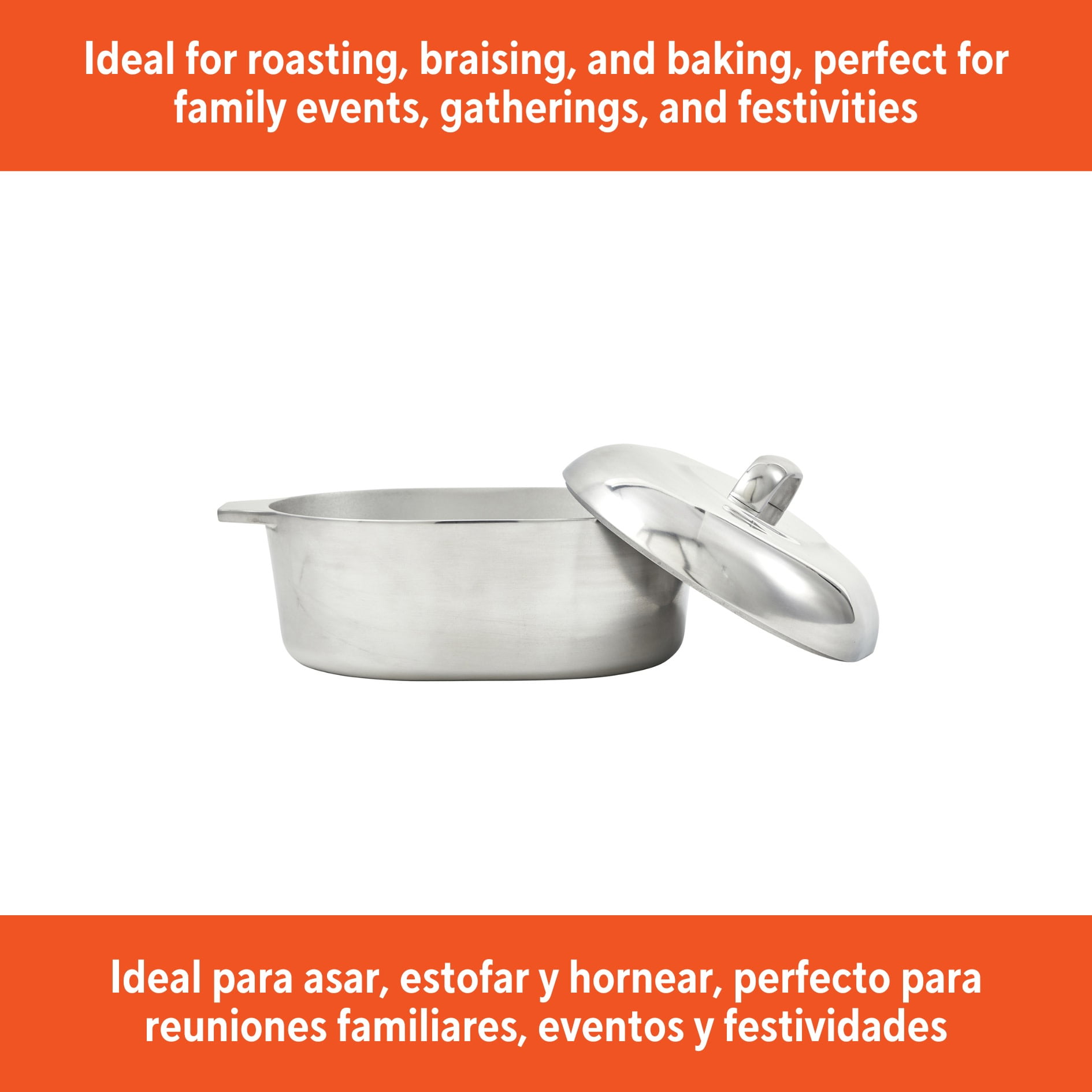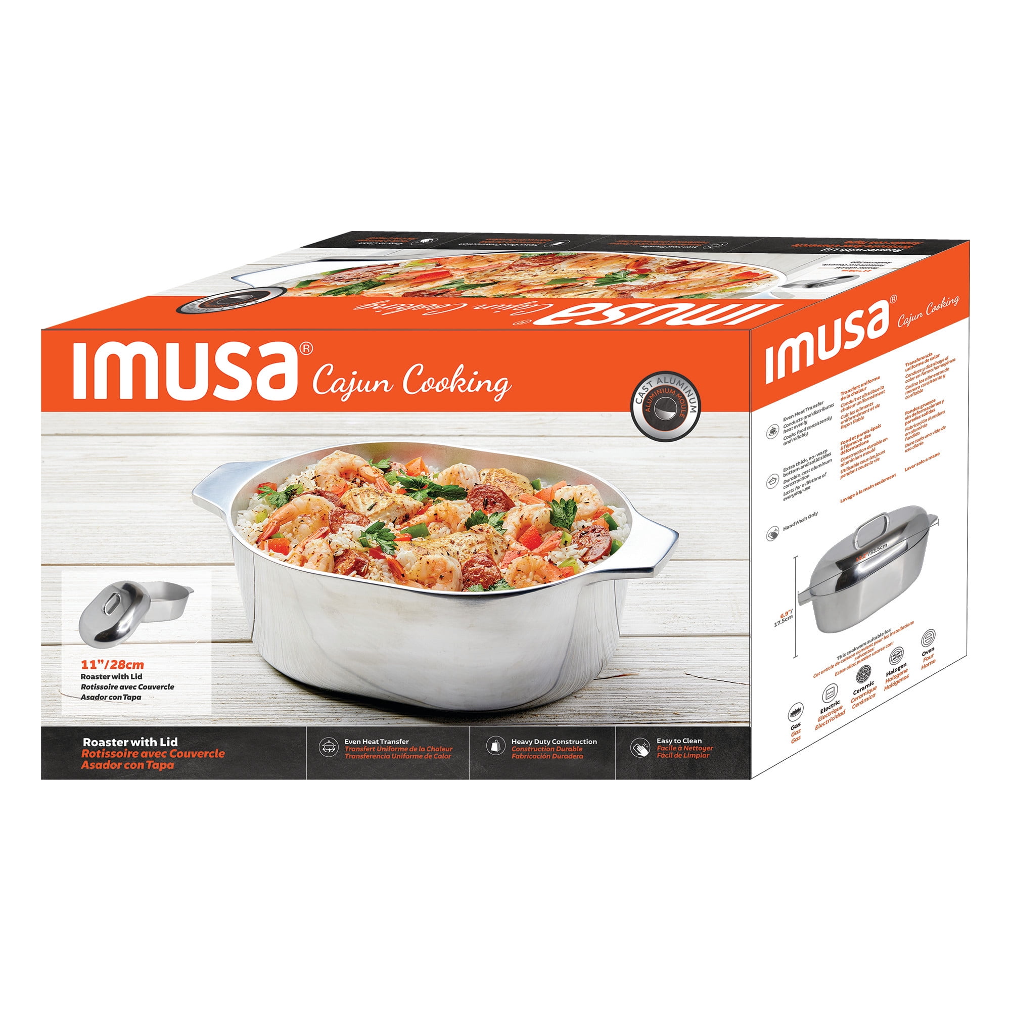 The IMUSA 11” H. Cajun Oval Roaster is a must-have in any kitchen featuring timeless design and durability. This H. Cajun classic roaster is made of heavy-duty cast aluminum construction for fast even heating, easy cleaning, and low maintenance. Roast flavorful dishes with this versatile oval roaster. The heavy construction is built to last, and the sleek retro styling and durable cast construction are the hallmark features of this enduring cookware line. The shiny polished interior and exterior will blend in perfectly in your kitchen. The side handles are extremely useful when transporting and can be used as a serving dish after cooking. The oval shape is ideal when roasting a turkey and the matching lid retains all the moisture in. This oven safe roaster will be your go to vessel for any holiday celebration, especially when cooking for a large group. Trust the IMUSA H. Cajun Oval Roaster for balanced, home-cooked meals. It will surely become your kitchen’s beloved companion, uniting tradition, and innovation in every delectable creation and elevating your culinary experience.