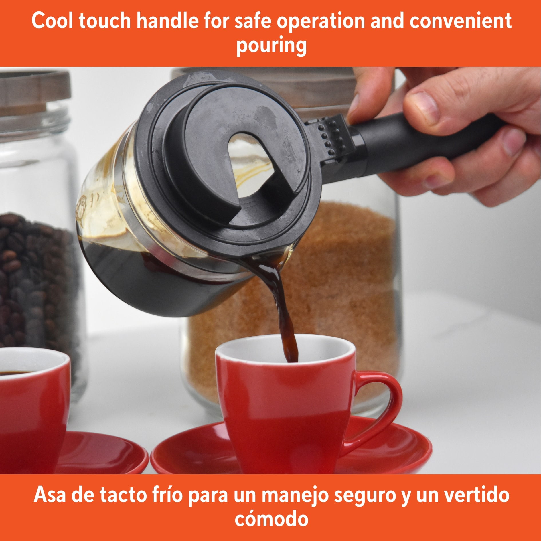 The IMUSA Espresso and Cappuccino Maker is the perfect appliance for your coffee needs. Made from durable plastic with an elegant matte black finish, and a transparent glass carafe, use this coffeemaker to brew up to 4 servings of aromatic fresh espresso directly into the glass carafe, and you are ready to serve. The 3-option selector knob and 5 bar pressure of the IMUSA Espresso and Cappuccino Maker allows you to make a rich flavor-tasting coffee from the comfort of your own home, and the powerful steam nozzle produces a thick froth for an enhanced coffee experience. This coffeemaker comes with a removable drip tray for easy cleaning, and the cool touch handle of the glass carafe allows safe operation and convenient pouring. Whether using it for making espresso, cappuccino, lattes, macchiato, or Italian style moka, the IMUSA Espresso and Cappuccino maker excels. Feel the coffeehouse experience in the comfort of your home with the IMUSA Espresso and Cappuccino maker, it will surely make every sip a moment to savor.