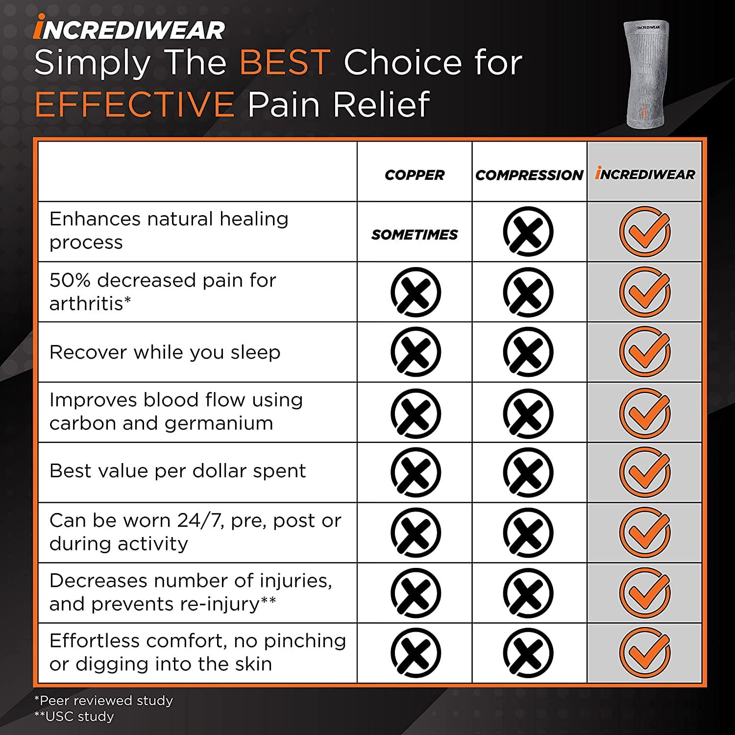 Made for everyday wear or with the athlete or medical patient in mind, Incrediwear knee braces can bring comfort to your body within minutes of putting them on,giving extra joint support needed for sprains, meniscus tears, tendonitis and arthritis. Incredibrace knee brace can significantly enhance comfort and mobility, outcomes that occur due to increased blood flow, regulation of temperature, and delivery of a greater supply of oxygen and blood to the targeted area. Most knee supports simply compress the injury; Incredibraces support the injury and use the addition of a patented organic germanium bamboo charcoal blend making this brace ideal for anyone experiencing discomfort related to circulatory issues or anyone who has suffered a sports related injury, arthritis, or injury from repetitive use. Increased blood can help to decrease swelling and increase mobility leading to a reduction in pain. Incredibraces knee braces are, odor absorbing and moisture wicking for supreme long wearing comfort. Incredibraces are the ideal choice for the active or inactive, sports enthusiasts, arthritis sufferers or those just seeking the best comfort available in a medically designed brace. Try it – you won’t be disappointed!