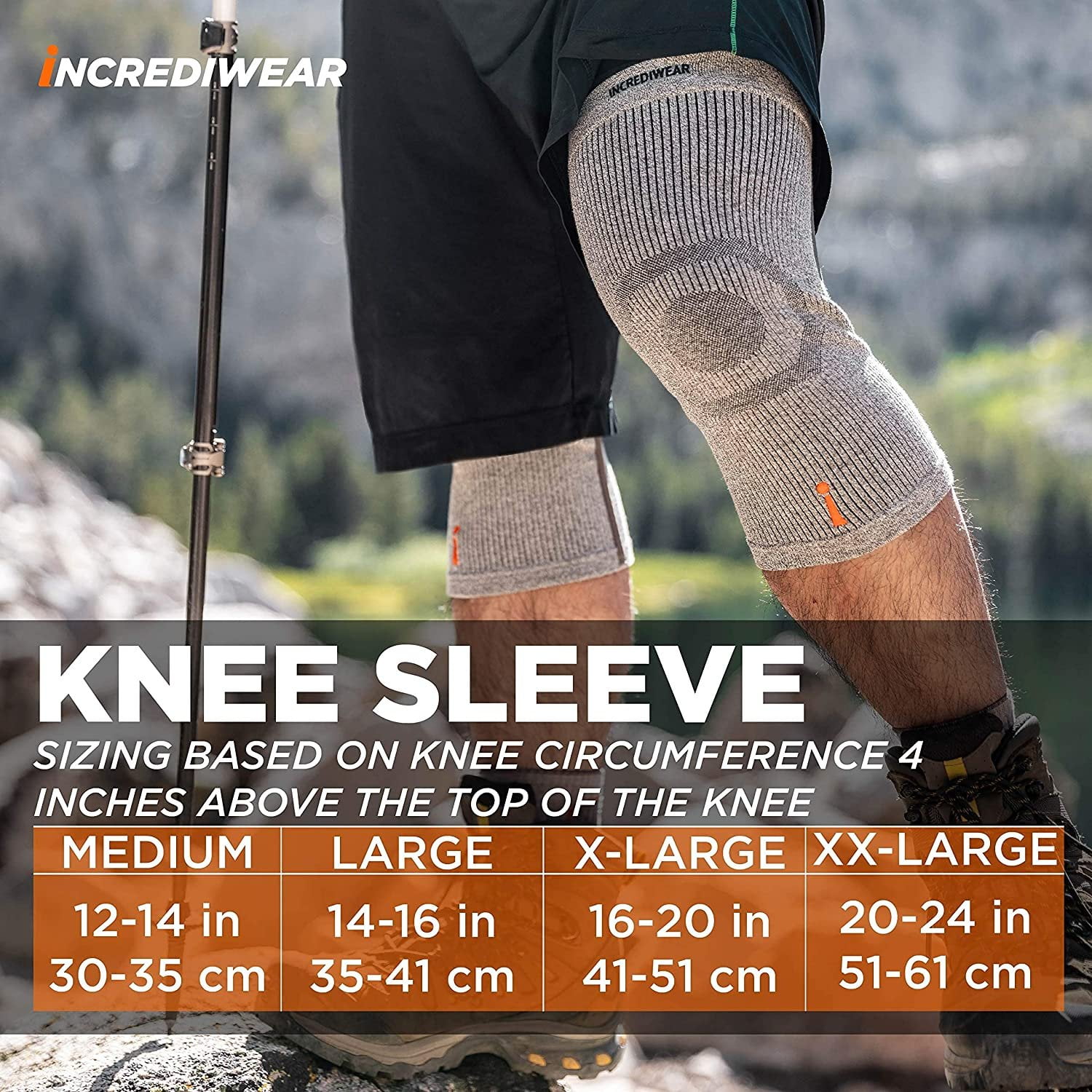 1 Incrediwear Knee Sleeve – size Medium Perfect for injuries, arthritis, knee swelling, or even after surgery to accelerate recovery. Made of a special blend of fibers to release negative ions that vibrate cellular walls Embedded with Carbon and Germanium for increasing circulation, and is made of Nylon, Polyester, Cotton and Spandex for a comfortable feel Medium fits 12″-14″. Measure leg circumference 2″ above the top of kneecap.