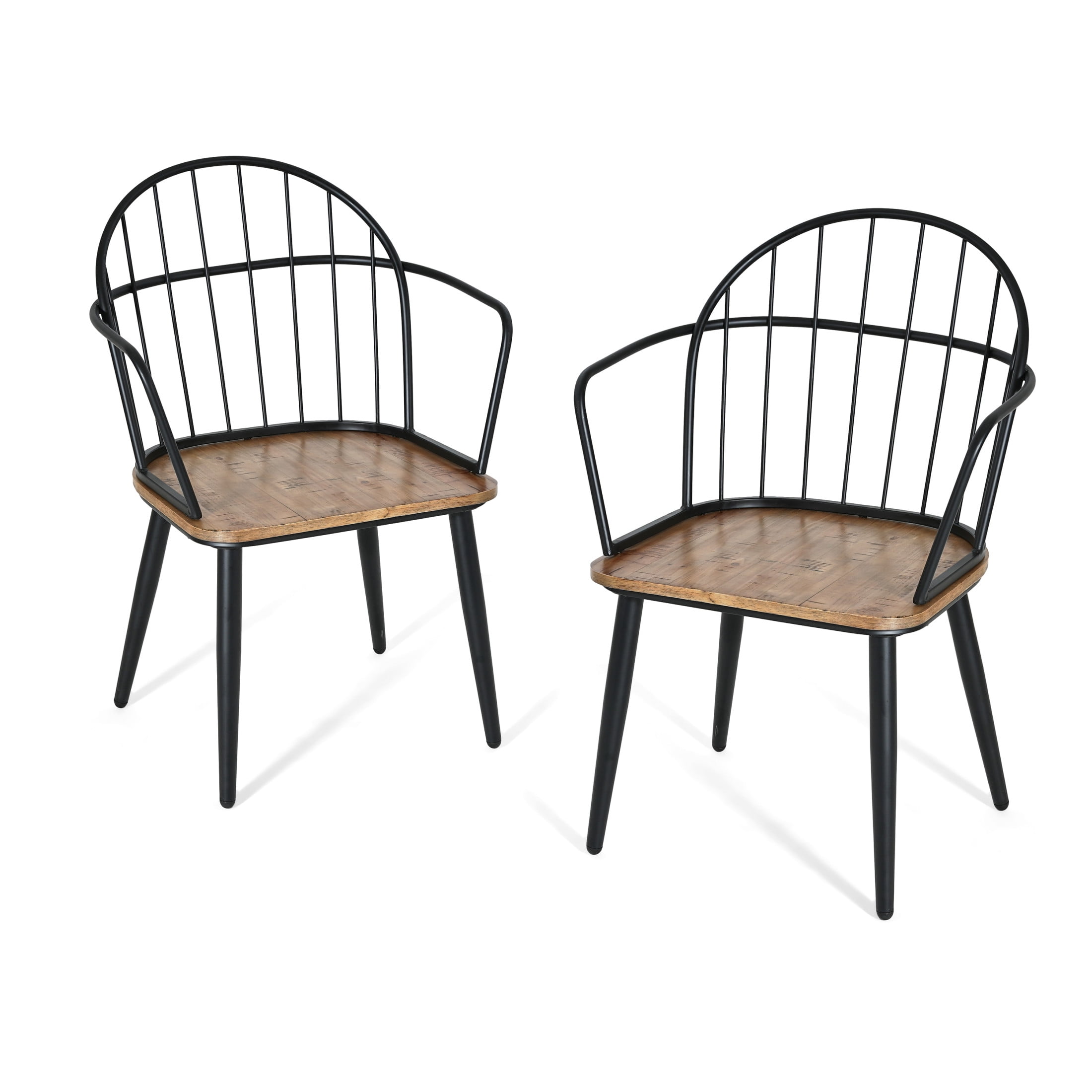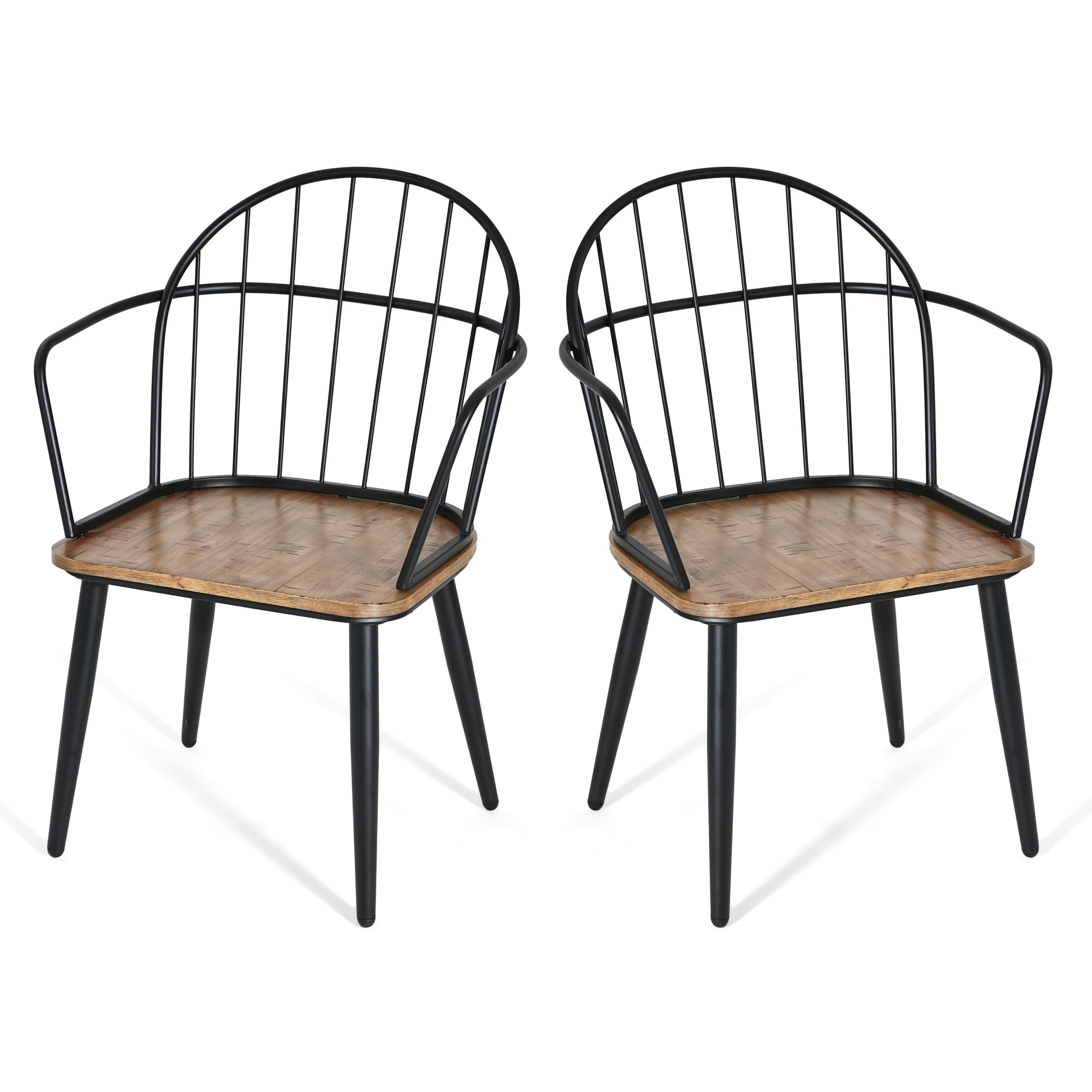 Industrial Dining Chairs with Arched Back, Wooden Seat, Matte Black Iron Base, Set of 2