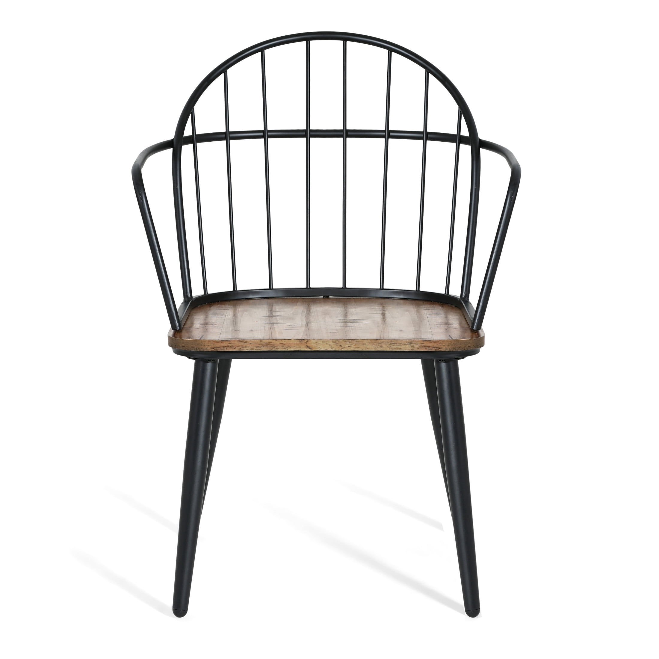Industrial Dining Chairs with Arched Back, Wooden Seat, Matte Black Iron Base, Set of 2: Includes: Two (2) Dining Chairs Light birch finish and wooden seat for a standout impression Arched back and metal tubing frame for industrial-inspired design Sturdy matte black iron base supports up to 250 lbs Made with MDF, birch veneer, and metal for durability Versatile use and size Easy assembly DIMENSIONS: 24.8″ L x 22.5″ W x 36.5″ H SEAT: 18.25″ H ARM: 27.56″ H