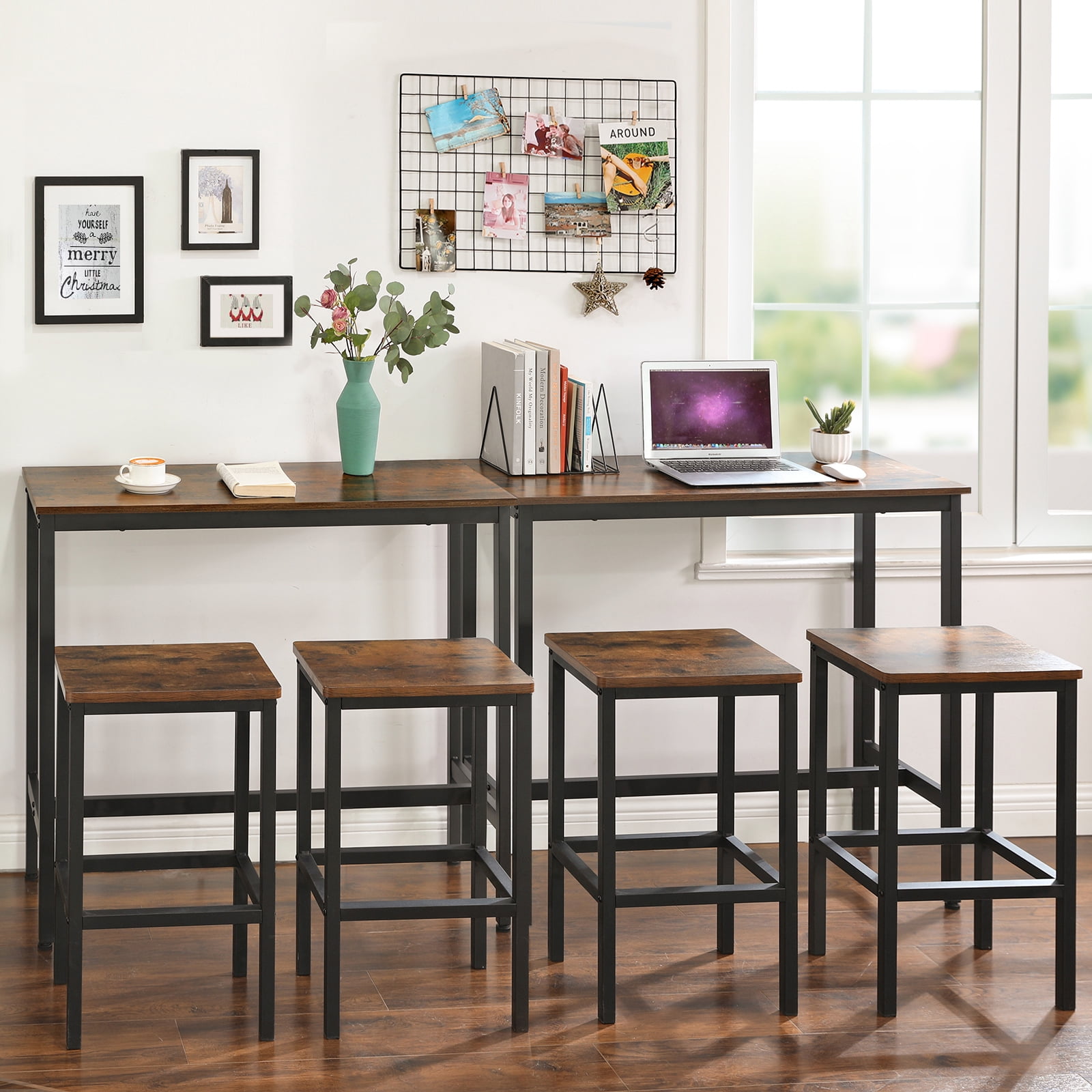 Minimalist Charm: A sleek, rustic brown bar table with metal legs adds effortless style to your dining area, perfect for simple, cozy meals. Space-Saving Design: At just 15.7” deep, this narrow table fits perfectly in small kitchens or dining spaces while offering ample room for dining essentials. Rock-Solid Stability: Built with 1” thick metal legs and reinforced stretcher bars, plus adjustable feet for uneven floors, this table stays steady on any surface. Quick & Easy Setup: Assemble in just 10 minutes with clear instructions and numbered parts—perfect for busy lifestyles. Complete Your Nook: Pair with stools to create the breakfast nook of your dreams, part of the stylish ALINRU collection.
