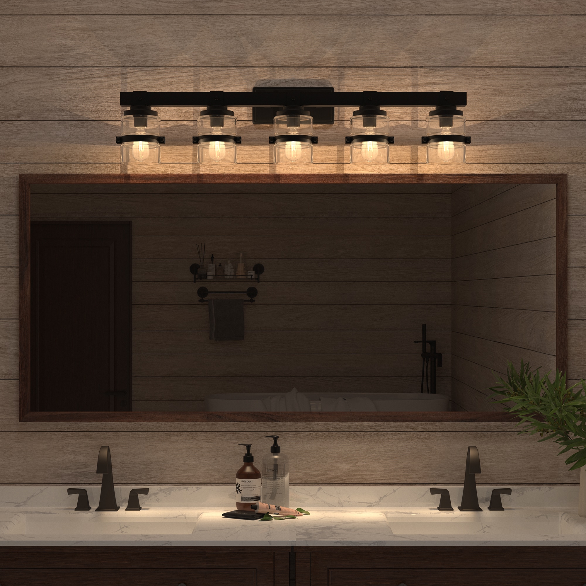 Industrial simplicity 40.94-in 5 -Light Matte Black Industrial Vanity light