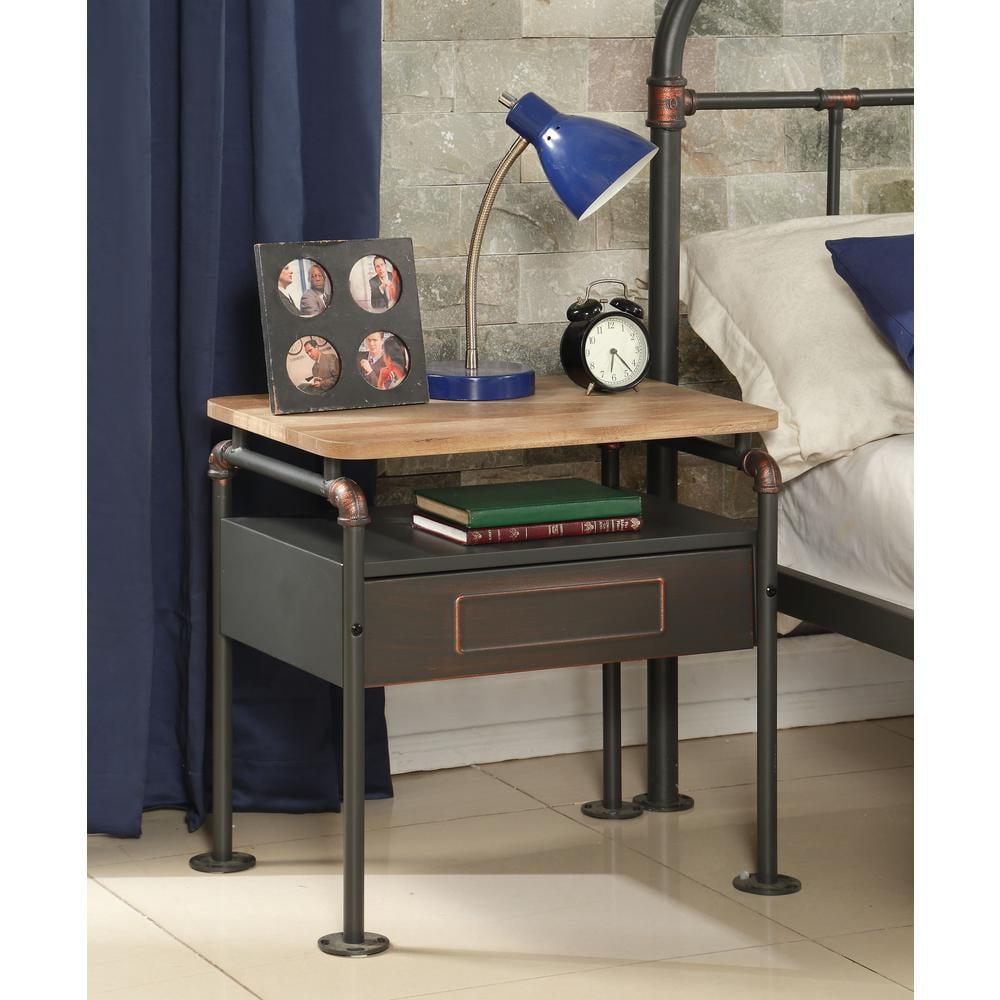 Box Spring NOT Required (Slat System Included) Metal Bed: Vintage Open Frame with Industrial Pipe Cast Industrial Pipe Cast with Copper Hand-Brush Finish Drawer: Glide Side (2/3 Ext.), Dovetail NO, Felt NO, Safety NO, Auto Close NO Matching Nightstand 30737