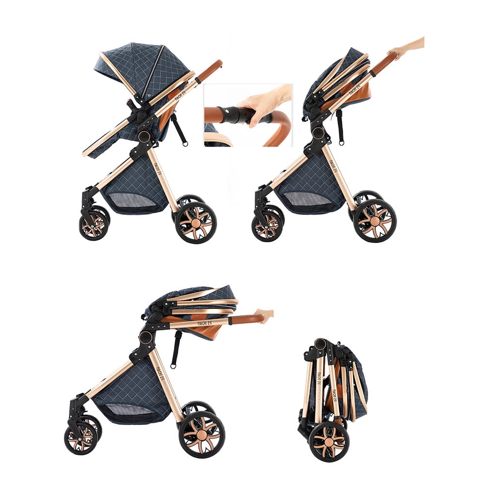 Infant 2 in 1 High Landscape Convertible Baby Stroller One-Key Folding Pushchair