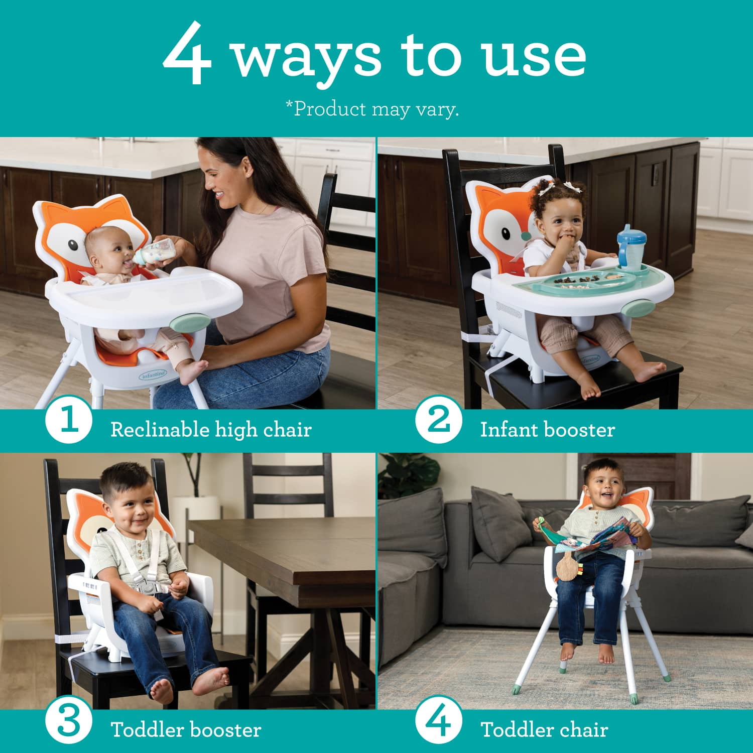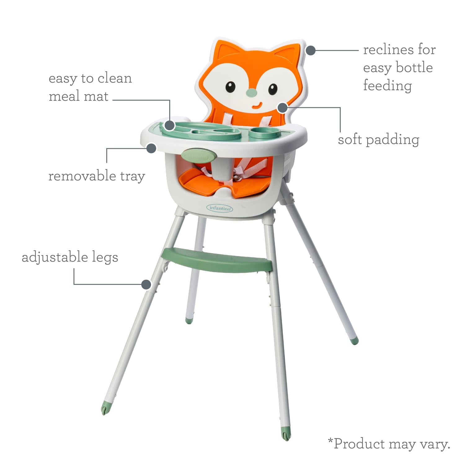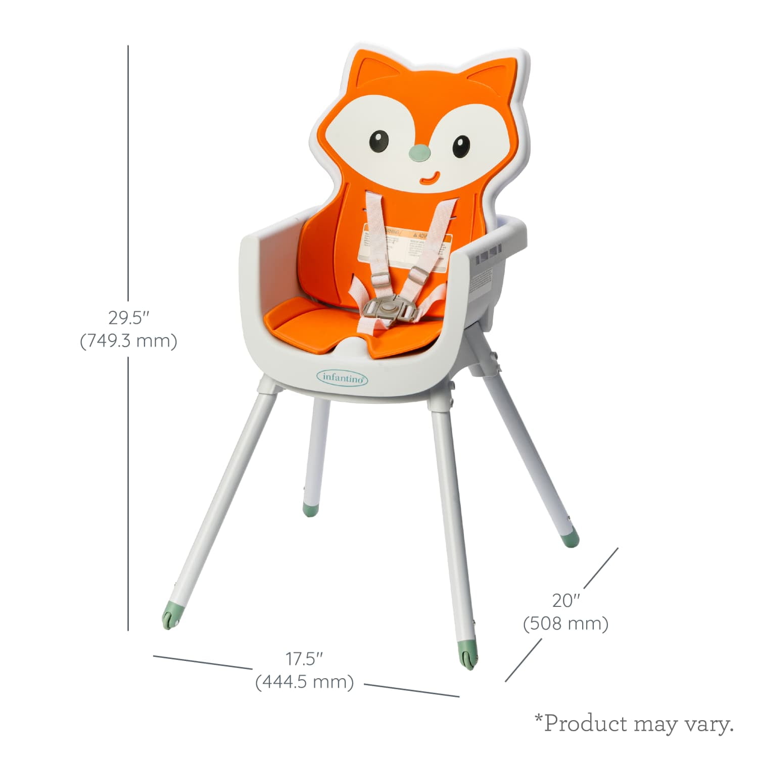 Infantino Grow-with-Me 4-in-1 Convertible High Chair, for Babies & Toddlers 6-36 Months, Orange Fox