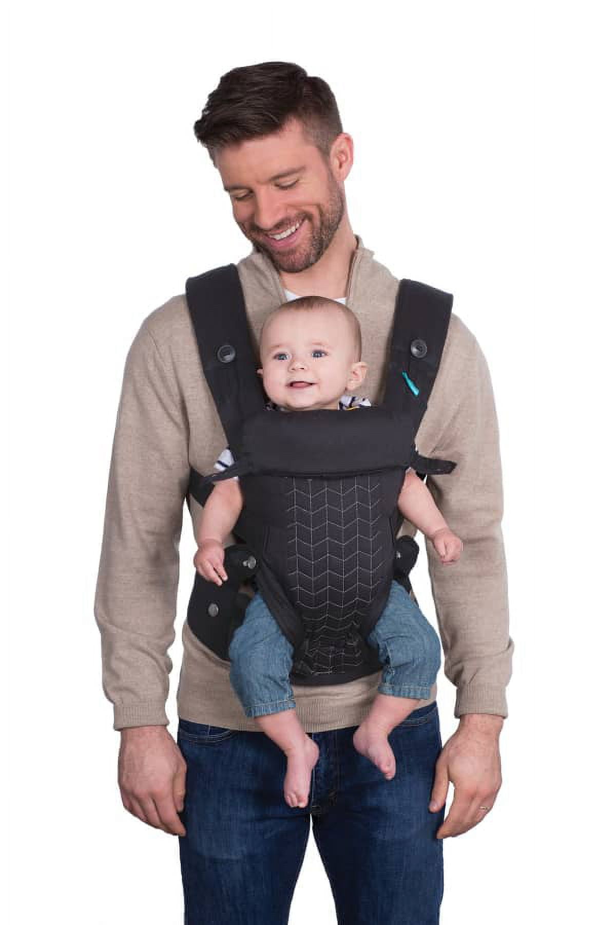4 ways to carry: facing-in infant, facing-in older child, facing out and backpack Carry children from 8-40lbs, 3.6-18.14 kgs Firm, adjustable head support Extra-padded shoulder straps Wide, weight-transfering waistbelt Soft, quilted fabric is machine washable Adjustable seat converts to provide knee-to-knee support from newborn to toddler At Infantino, we believe every baby deserves access to quality products, this is why we design our products to be unisex so all little ones can enjoy them