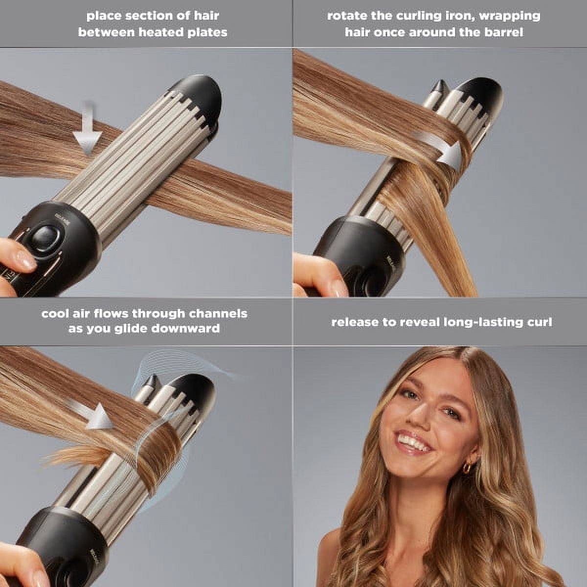 Cool Air Styler Effortless glide: Quartz ceramic-coated plates glide and preheat hair to form lasting smooth curls. Lasting loose curls: Unique cool air system allows cool air to flow outside of barrel to immediately set your curl and protect your hair. High heat: Plates heat up to 400?F; Fast, consistent heat: Heats up in 30 seconds and maintains heat level upon reaching a stabilized temperature. Heat for every hair type: 3 heat settings (low, medium, high) plus cool air setting?choose the right one for you. No stress: Automatic safety shutoff lets you focus on styling without fear of forgetting to turn the styler off.