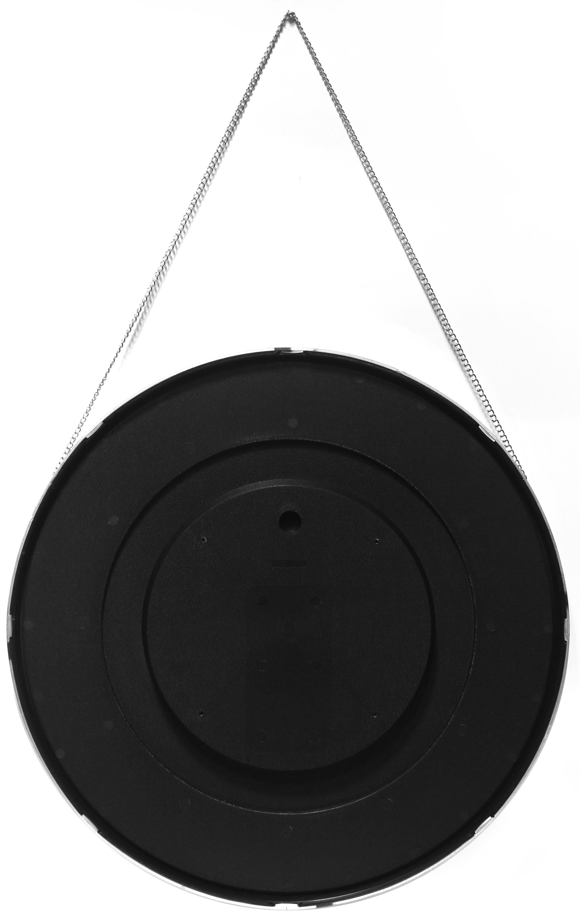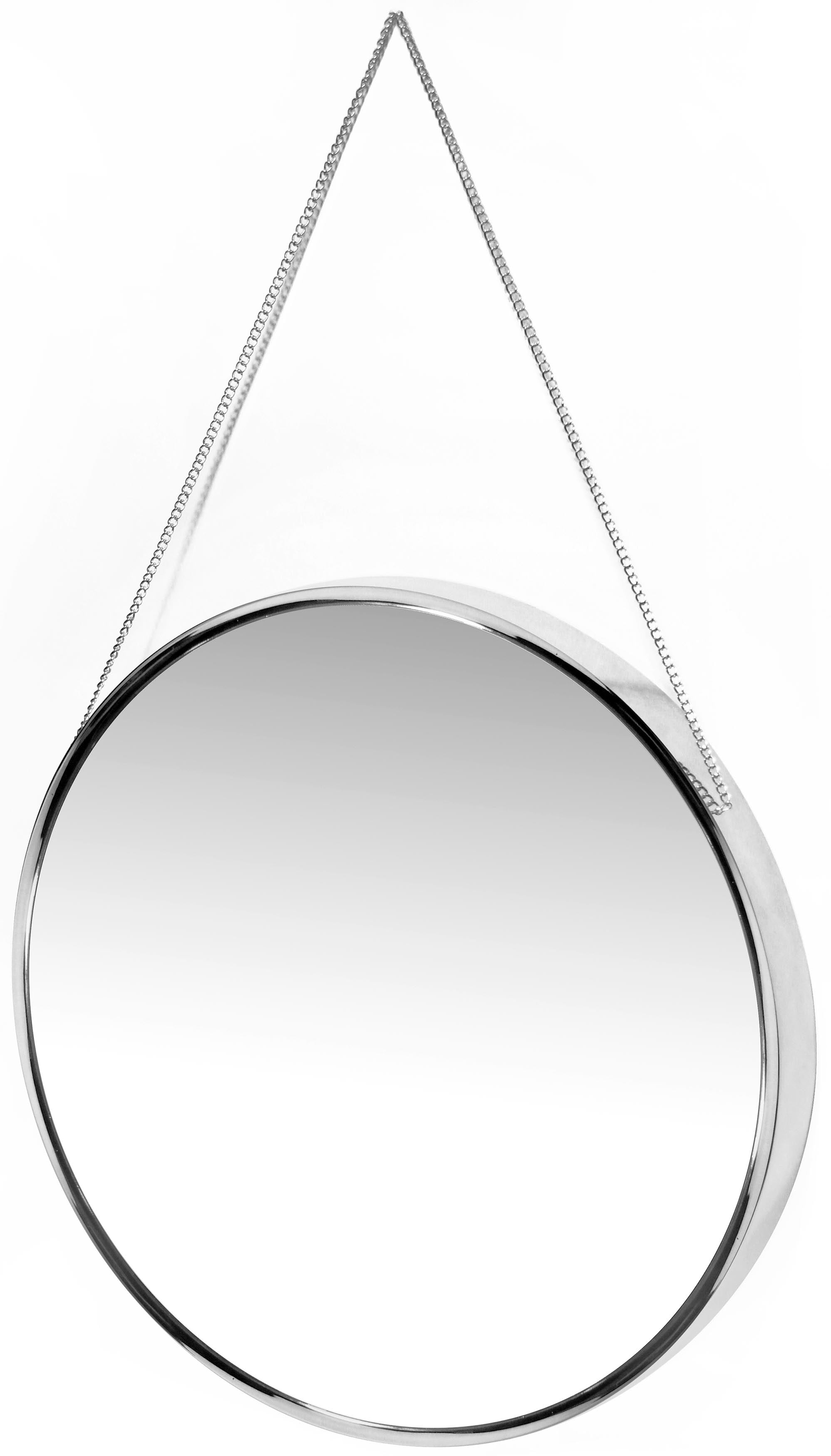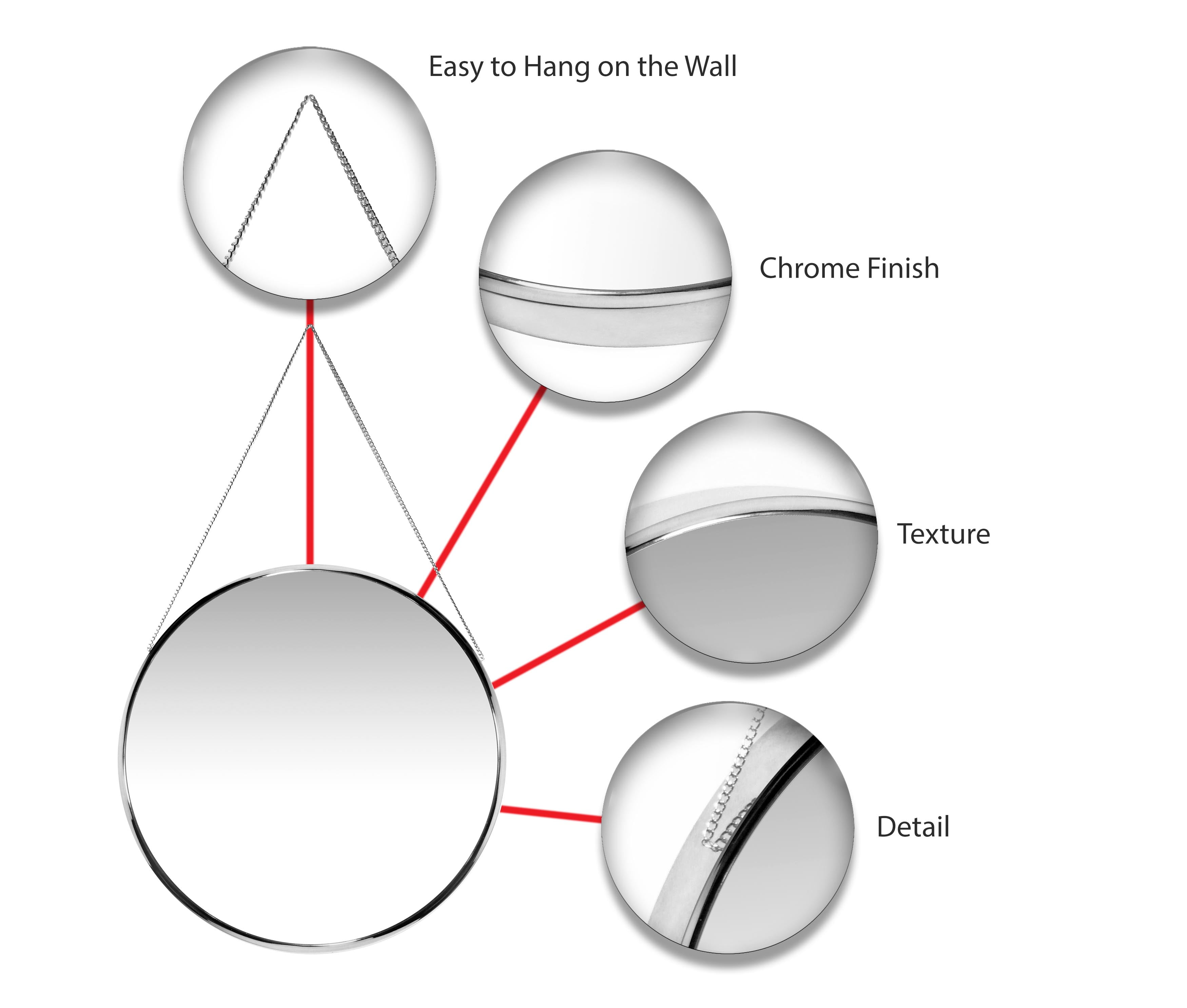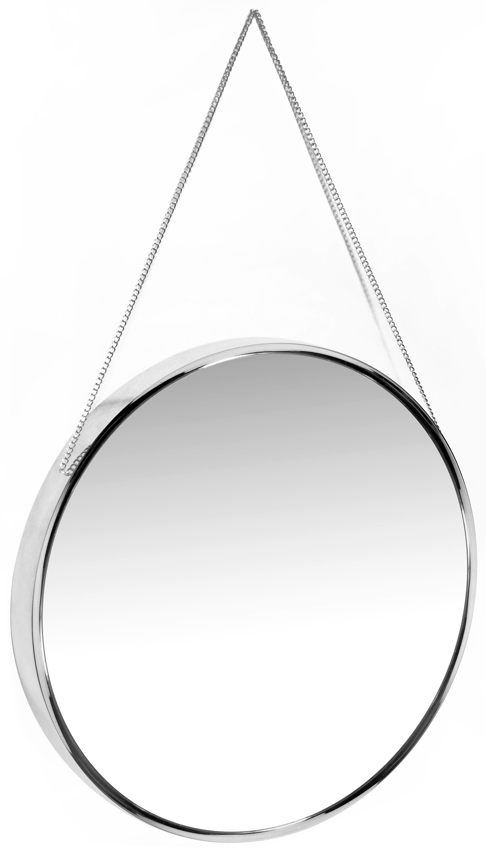 Artfully unique and simply stylish, the Franc Chrome wall mirror is a true piece of art. This round mirror comes with a real metal chain that can be used to hang it. Ahead of all metal wall mirrors that you may have owned or seen, this one is a must have if you like the rich chromatic colors of Rose Gold and Silver. These colors are currently in trend for home décor accents and a unique decorative mirror such as the Franc is the perfect modern/contemporary décor accent. Anyone with an eclectic taste will instantly be drawn to this bold 17.5-inch mirror. The mirror offers an interesting contrast when paired with pastels and plain wood. It is perfect for places that beg a little makeover. Just hanging this mirror in that space will instantly transform it to a chic space that reflects and magnifies light with simple elegance.