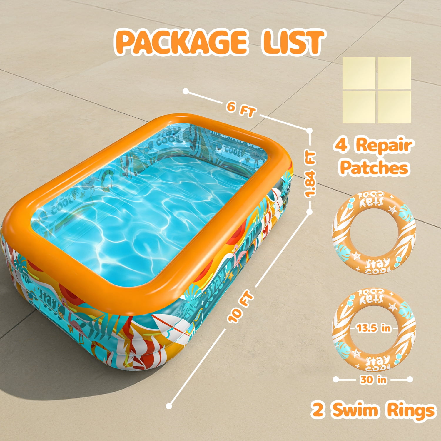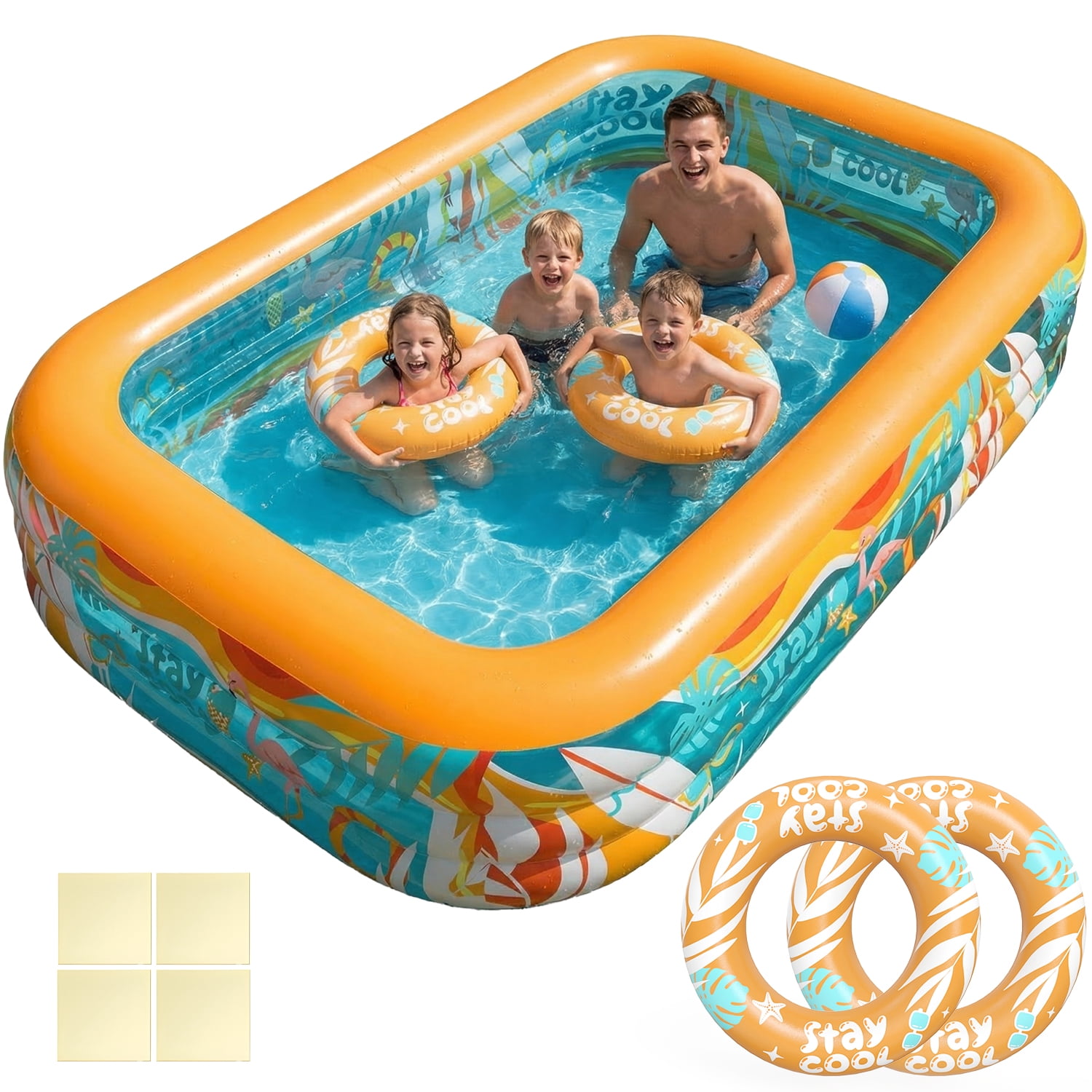 JoyStone Inflatable Pool for Kids and Adults, 120″ x 72″ x 22″ Thickened Family Swimming Pool Paddling Pool with 2 Pool Floats, Summer Water Toy for Backyard, Garden