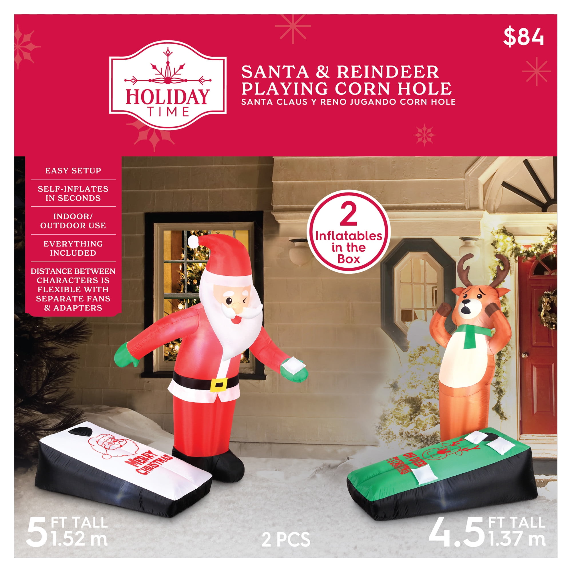 Inflatable Santa & Reindeer Playing Corn Hole 5ft Holiday Time Christmas Outdoor Decoration