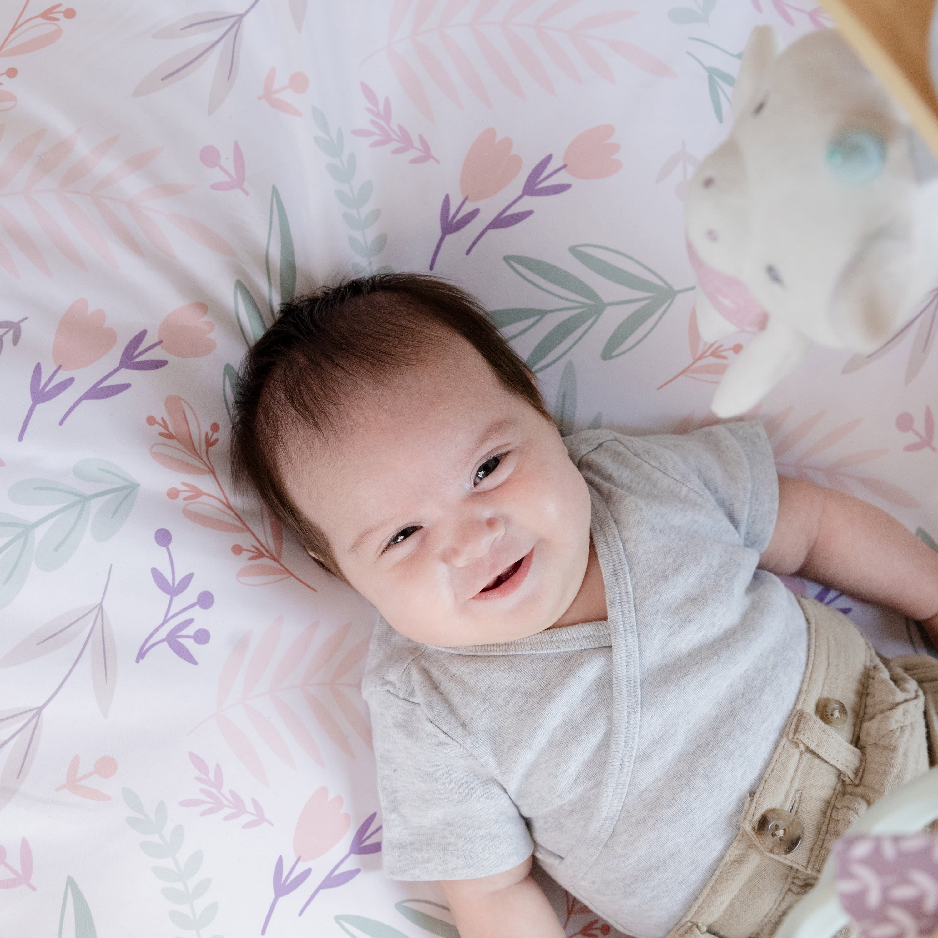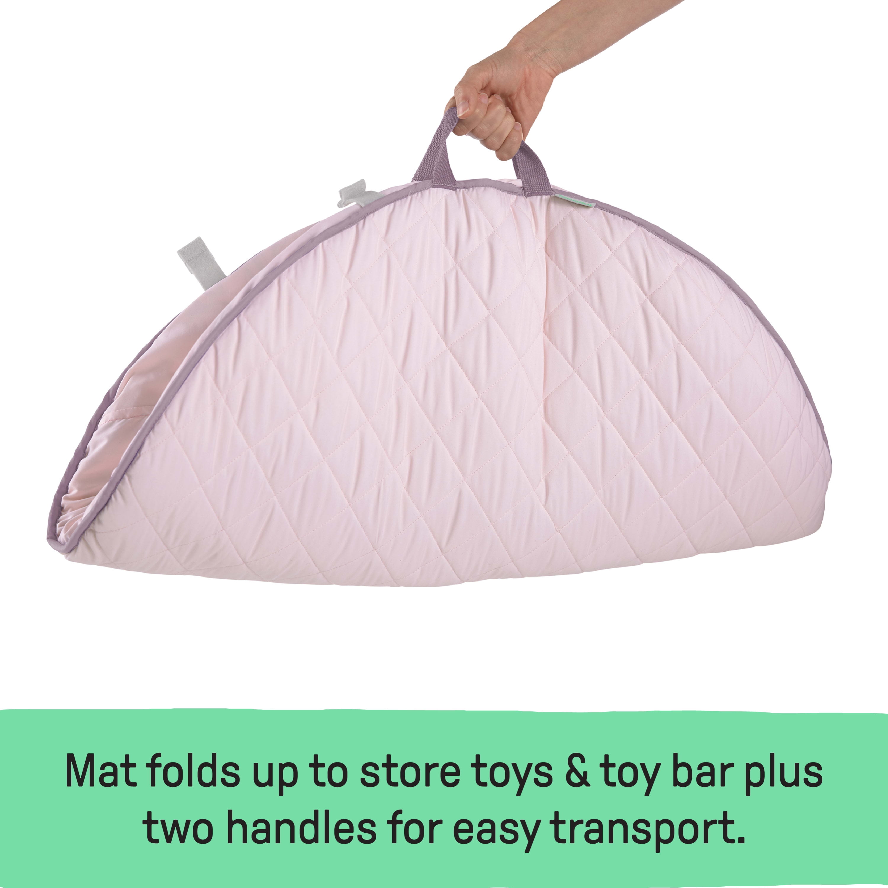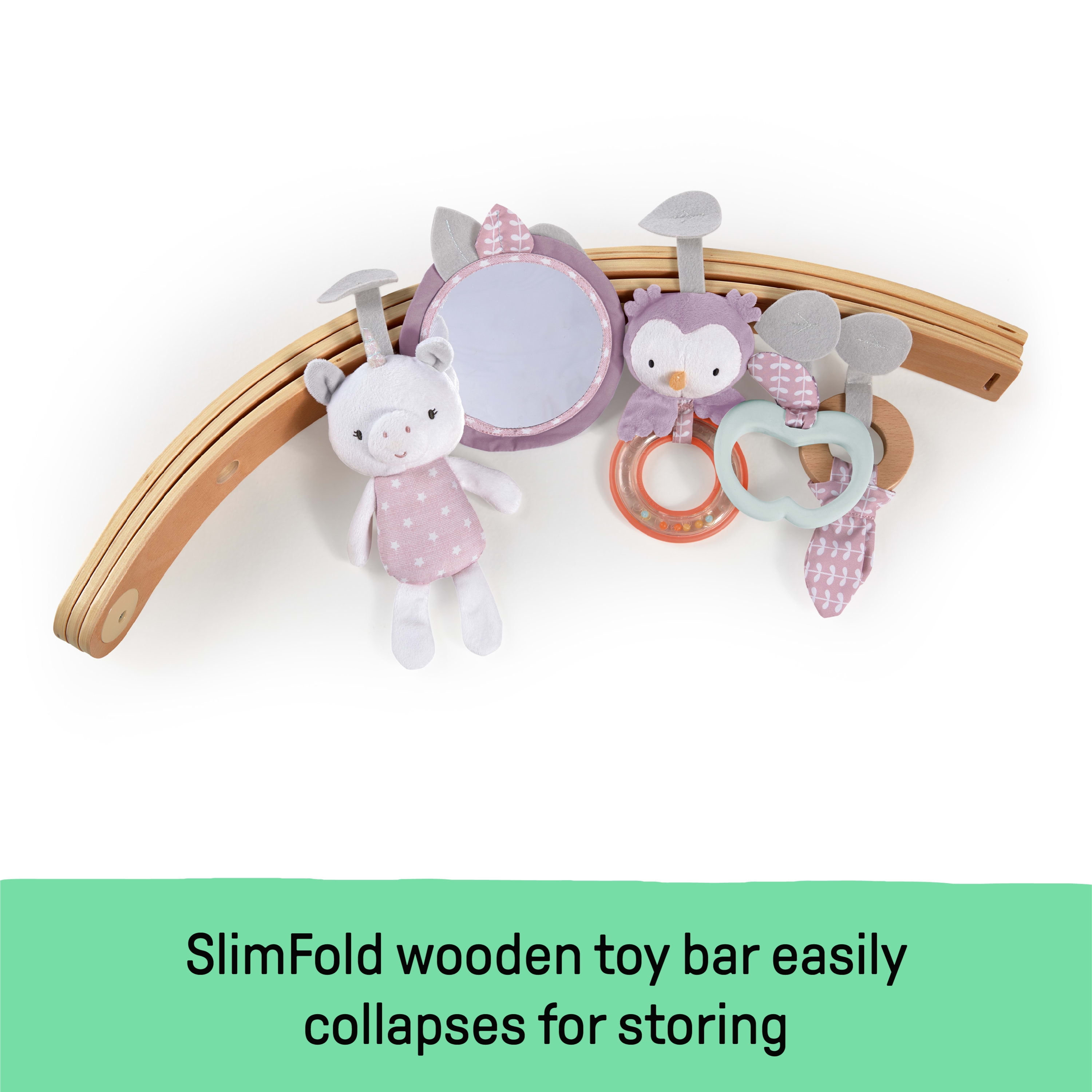 Give your baby the coziest spot to stretch out and play. The Ingenuity Cozy Spot features a patent-pending duvet design that’s so soft it’ll feel like your baby is playing on a cloud. You can create a comfy and safe spot for your little one even on hard floor surfaces! The natural wooden toy bar and reversible print choices are designed to blend beautifully with your home décor. The whimsical activity toys and tummy time pillow are removable for easy storage and travel for playtime on the go. When it’s time to pack up, the toy bar features a SlimFold design and the whole mat folds in two with handles to transform into a self-storage bag. This adorable play gym is so easy to move and store, you can have your living room back.