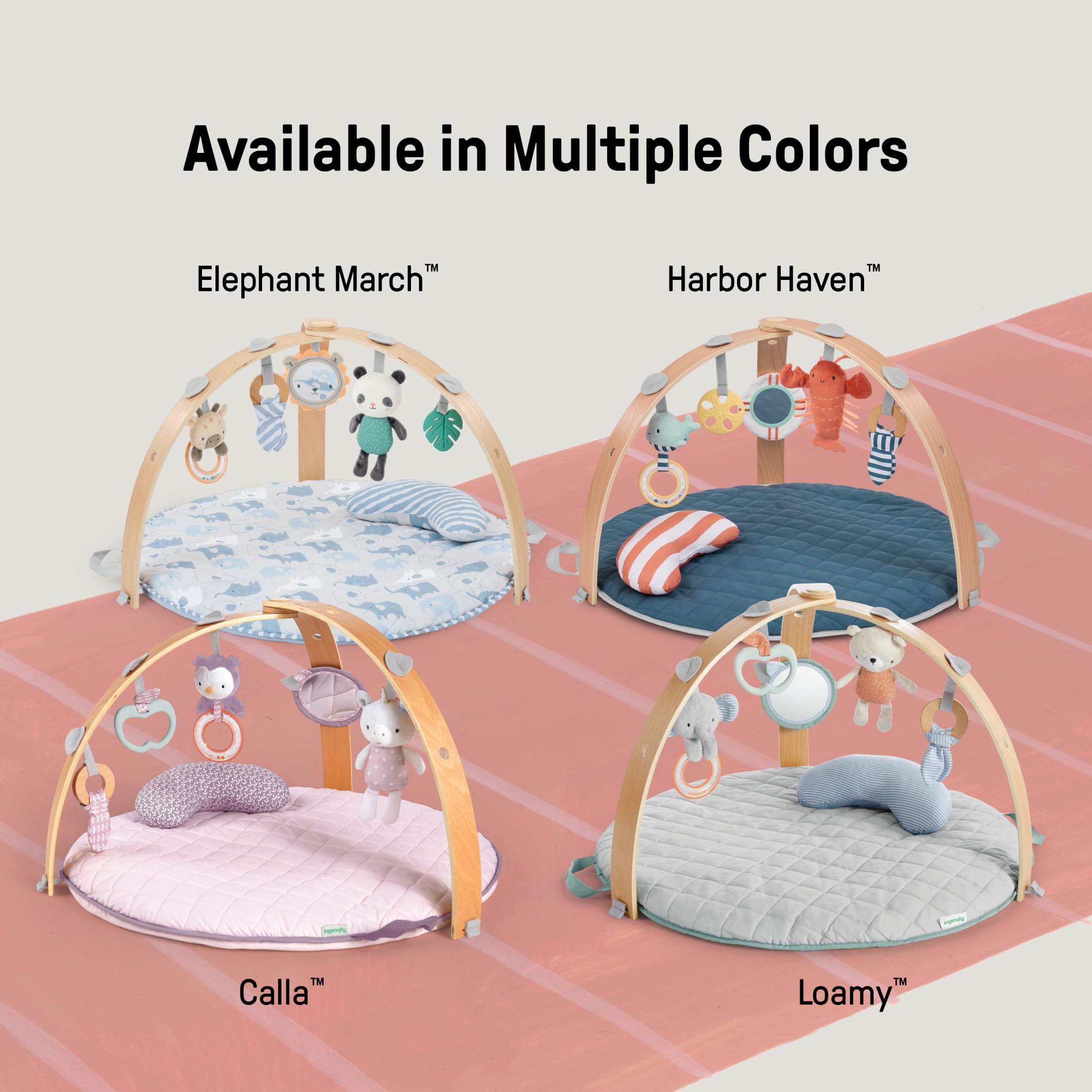 Reversible duvet play mat is machine washable Ultra-plush mat creates a comfy and safe play space for newborn baby SlimFold wooden toy bars and removable activity toys collapse for self-storage Beautiful gender-neutral design, including toys and tummy time pillow Folds in two with handles for easy transport