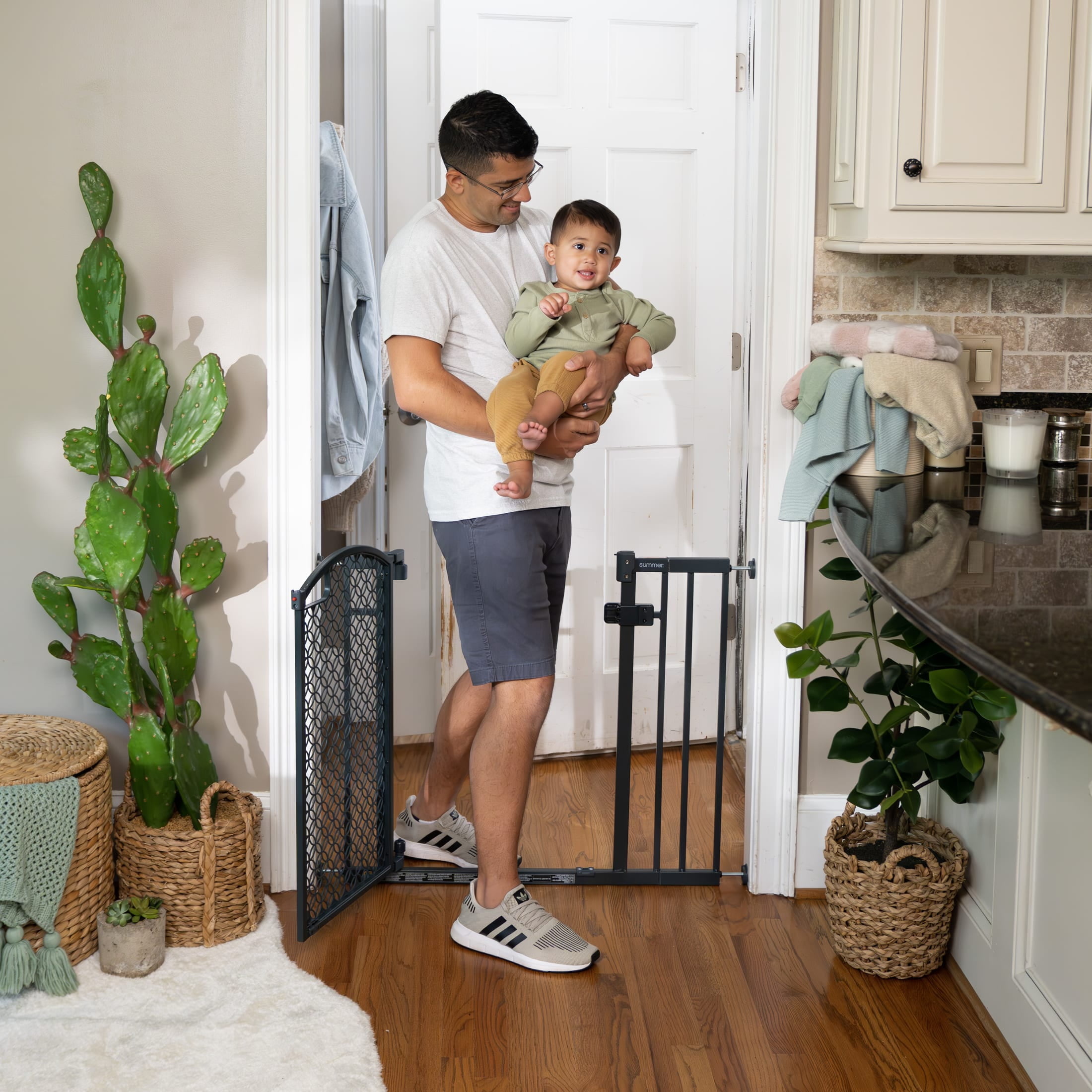 Ingenuity Modern Home Walk-Thru Safety Pet and Baby Gate, Grey, Openings from 30-60″ Wide, 30′ Tall, Ages 6-24 Months