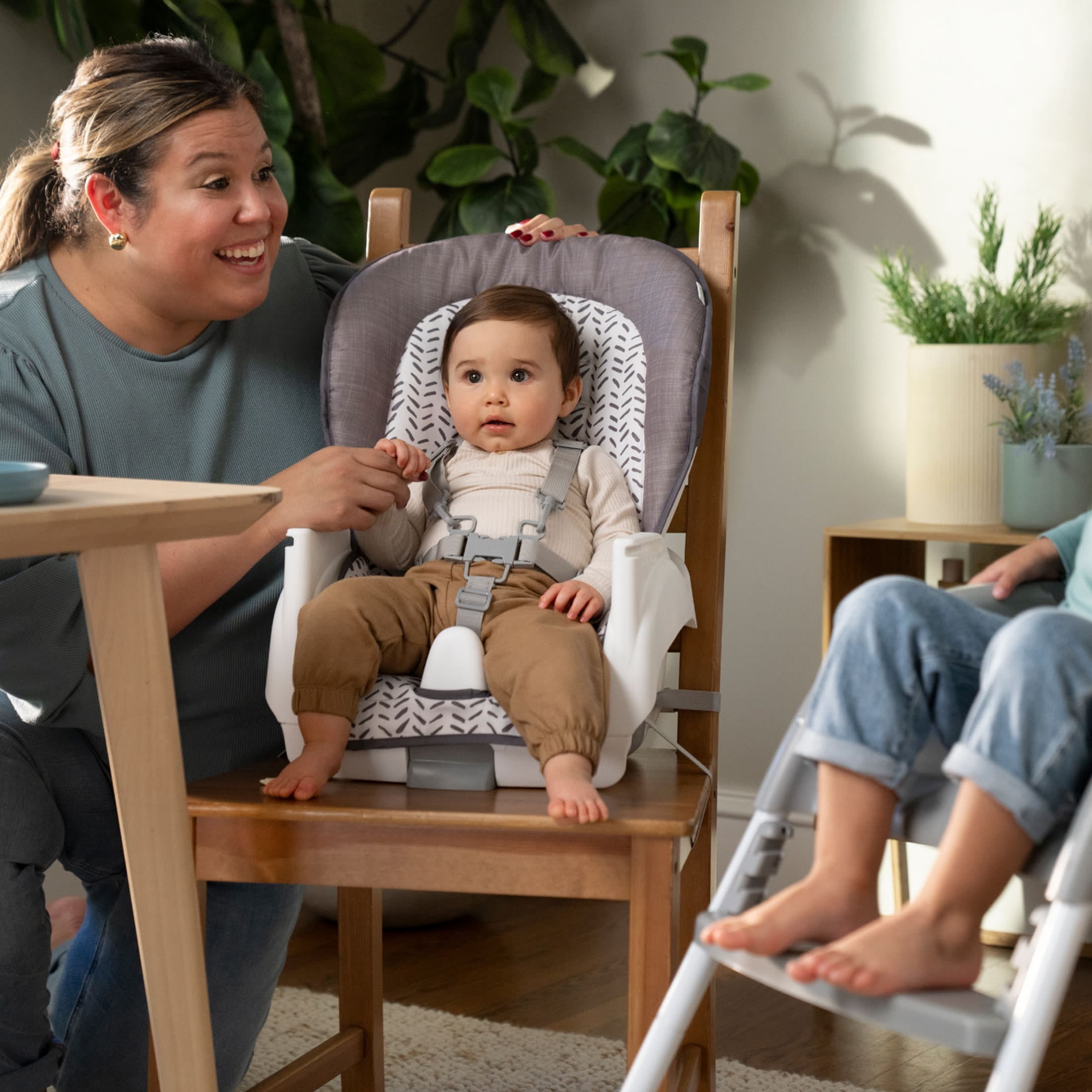 Baby may be little, but their stuff seems to fill the whole house! Multiple modes mean gaining more value while saving more space. You can use the patented, 3rd-party safety tested Ingenuity Trio Foldaway 6-in-1 High Chair as a: full size highchair, up-to-table chair, booster seat, toddler stool, toddler chair, and dual child seating. As your little one enjoys every bite, our adjustable footrest offers 3 levels to help keep their ankles, knees, and hips at a 90 degree angle, the ideal position for better digestion during mealtime. We created the Ingenuity Trio Foldaway 6-in-1 High Chair to fold with ease so you can tuck it away immediately after mealtime and save space in any kitchen. Whatever mode you’re in, mealtime almost always comes with a mess, but with removable, easy-to-clean fabrics, you don’t have to stress the mess. Plus, when baby reaches for those lost bites of food, you’ll know they’re safe in the chair’s 5-point harness. Give your little one additonal comfort with the 2 seat recline options. All accessible with a single hand adjustment from mom or dad. An easy-to-remove, dishwasher-safe tray makes mealtime that much easier. Don’t miss out on this space-saving, better-digestion high-chair.