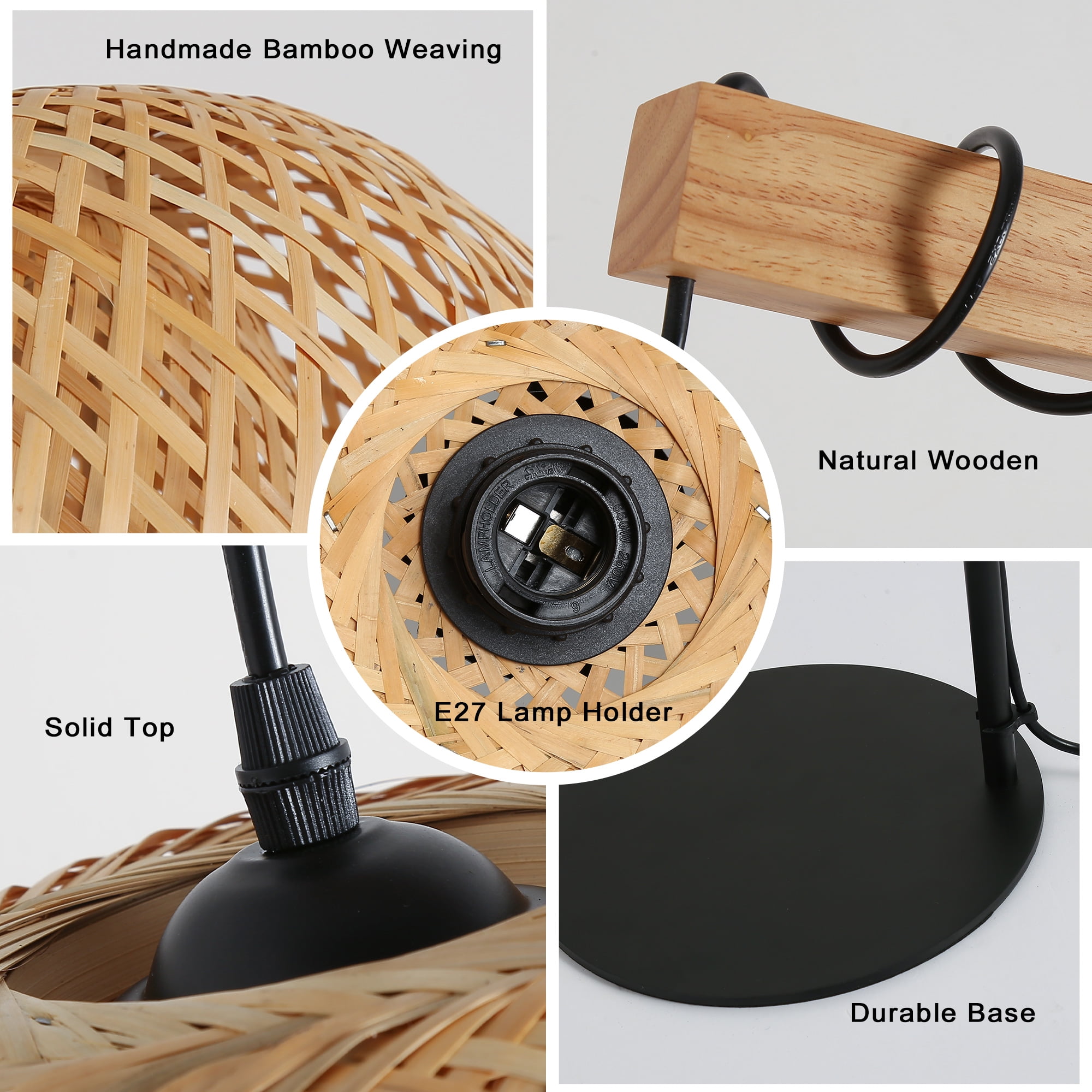 Injak 60” Boho Foot Switch Black E26 Edison Bulb Floor Lamp with Bamboo Shade Bamboo Boho Floor Lamp – Features a vertical metal design with an on/off foot switch for easy operation. The unique light pole and metal brackets ensure stability, while the black round linen lampshade adds a modern touch to any room Floor Lamp Dimensions – Constructed with metal legs and a rattan lampshade. Lamp shade size: 12.99” x 13.77”. Total height: 22.83”. Weight: 3.5kg. Compatible with E26 Edison bulbs (maximum 60W, not included), suitable for incandescent or LED equivalents Multi-Purpose Lighting – Equipped with a plug-in cord and foot switch, this lamp provides comfortable warm light, making it flexible and convenient for various settings Practical and Decorative – Designed for stability and safety, combining high-quality metal with textured bamboo and rattan. This lamp merges modern and traditional styles, making it an eye-catching addition to your decor Industrial Style Studio Lamp – Showcases mid-century elegance with independent decorative parts. Ideal as a reading lamp with LED bulbs, it complements various room styles including living rooms, dining areas, bedrooms, offices, cafes, and more