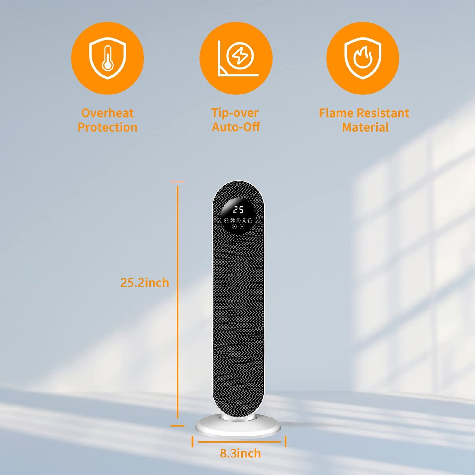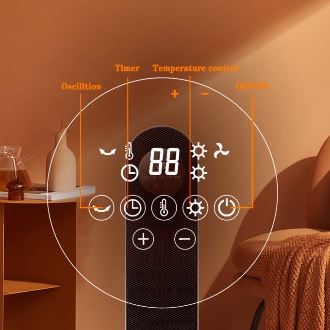 Digital display with controls Programmable thermostat 12-hour timer Overheated Protection 60° oscillation Inolait 26″ Space heater