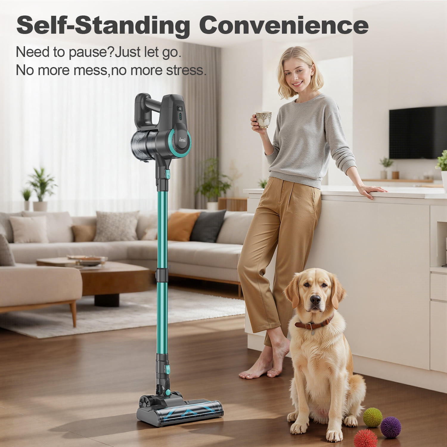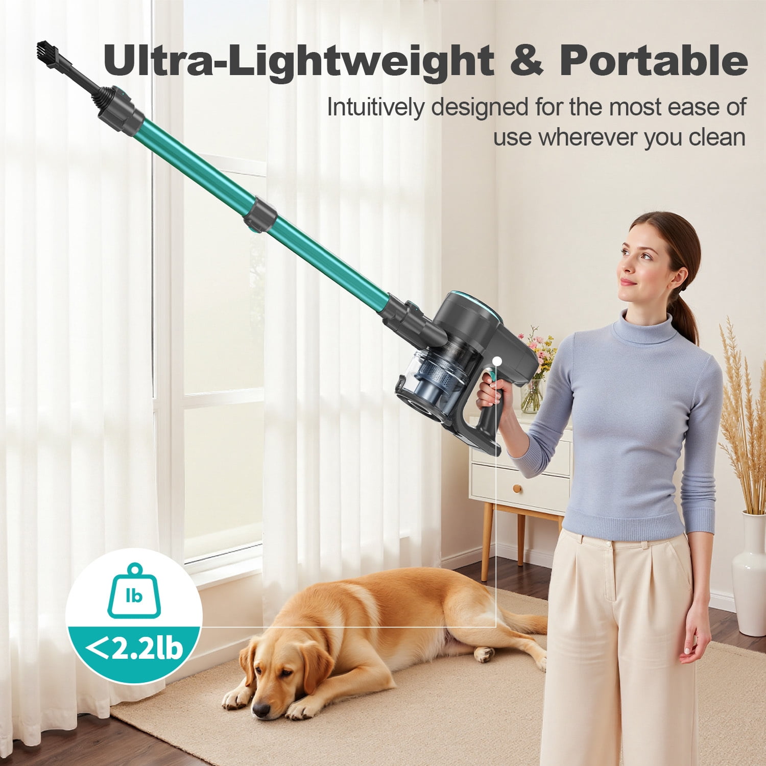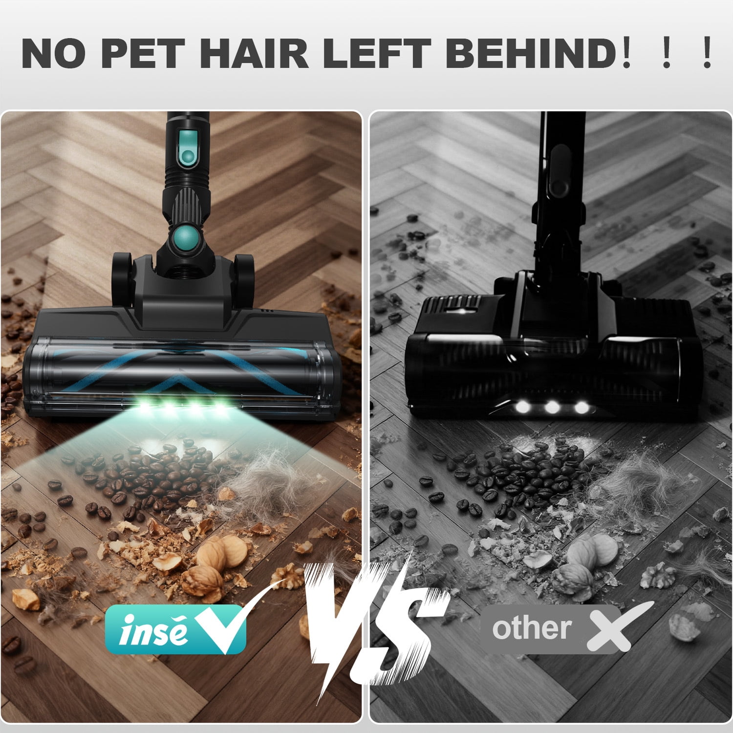 INSE Cordless Vacuum Cleaner,Ultra-Lightweight,LED Headlights,Removable Handheld Vacuum for Pet Hair Carpet Hardfloors,N3P Green