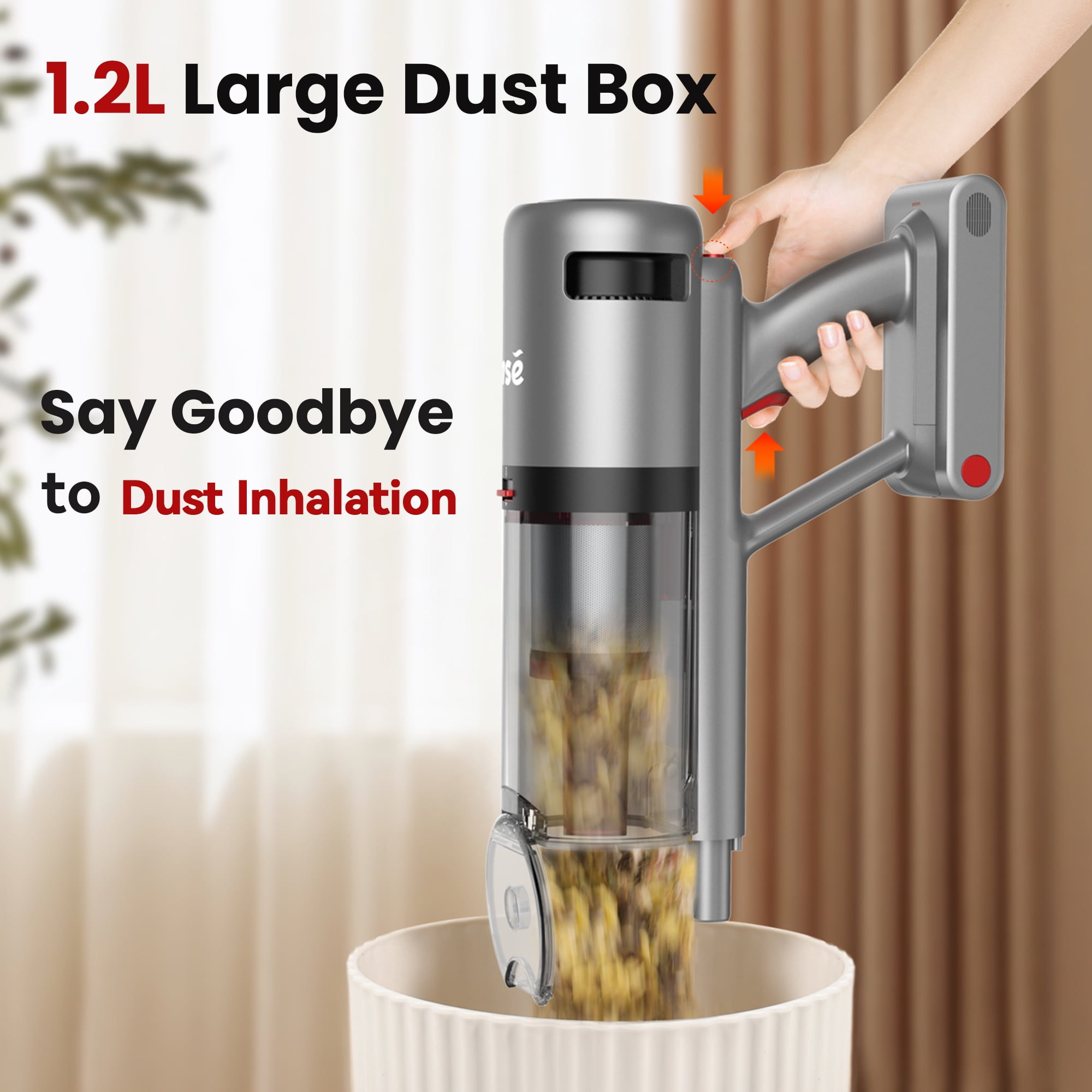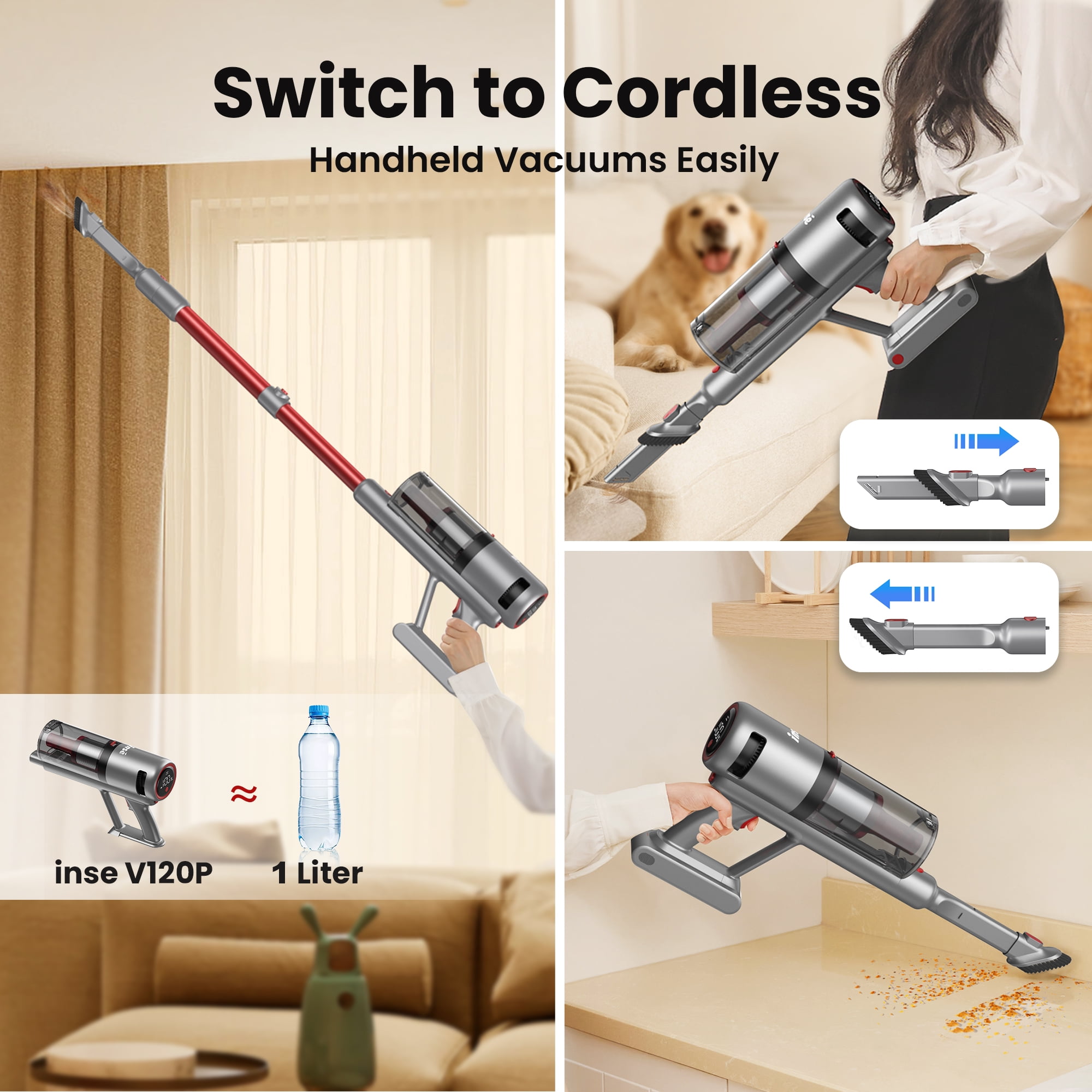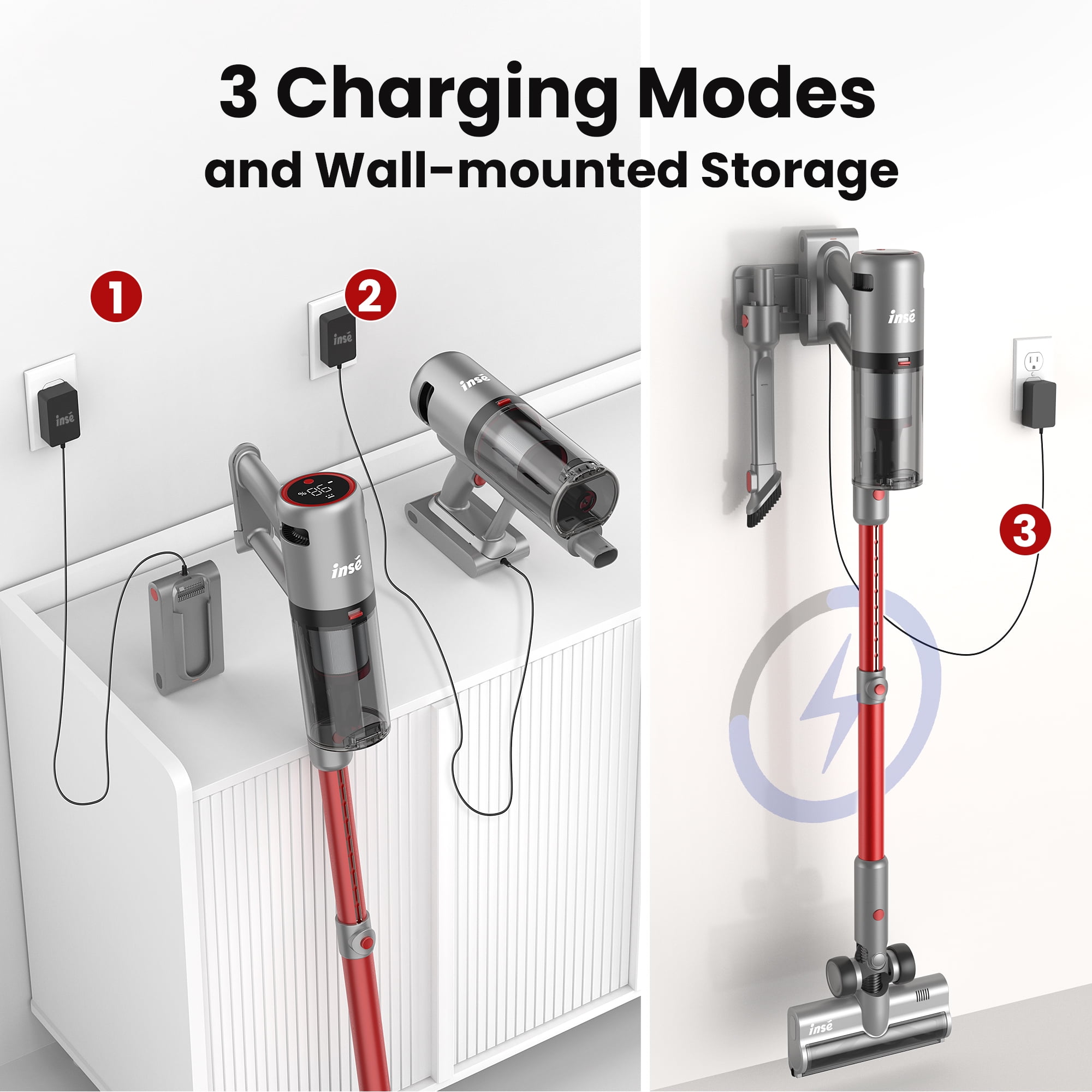 In a busy life, having a cost-effective vacuum cleaner is undoubtedly a good cleaning helper for every family. INSE New Upgraded Cordless Stick Vacuum Cleaner equipped with a 450W brushless motor, with a strong suction force of up to 30Kpa, which can easily cope with various floors, whether hard floors or carpets, it can be cleaned in one suction. Equipped with a large-capacity battery of 2500mAh, it provides up to 60 minutes of cleaning time to meet the cleaning needs of large households. 3.5 hours of fast charging technology makes the waiting no longer long, and you are always ready for the next cleaning. The smart LED display screen displays the power and working mode in real time, making the operation more intuitive and convenient. The intelligent alarm system reminds you to clean the blockage in time to ensure that the vacuum cleaner is always in the best condition. Equipped with a multi-angle rotating floor brush and LED light, it is easy to clean every corner of the home. Whether it is stairs, curtains or car interiors, INSE vacuum cleaners can easily cope with it and are your all-round assistant for home cleaning. 3 Suction Modes Stick Vacuum Cleaner Min Mode (20KPa): Suitable for daily cleaning (60mins), provide long-term cleaning time, absorb dust, paper dust, dirt and pet hair on the hardwood floor, tile floor Mid Mode(25Kpa): Provides greater suction power(40mins),Ideal for cleaning cat litter, large dust particles Max Mode (30KPa): Provide deep cleaning (30mins), especially for dog food, beans, cereal or use on carpet