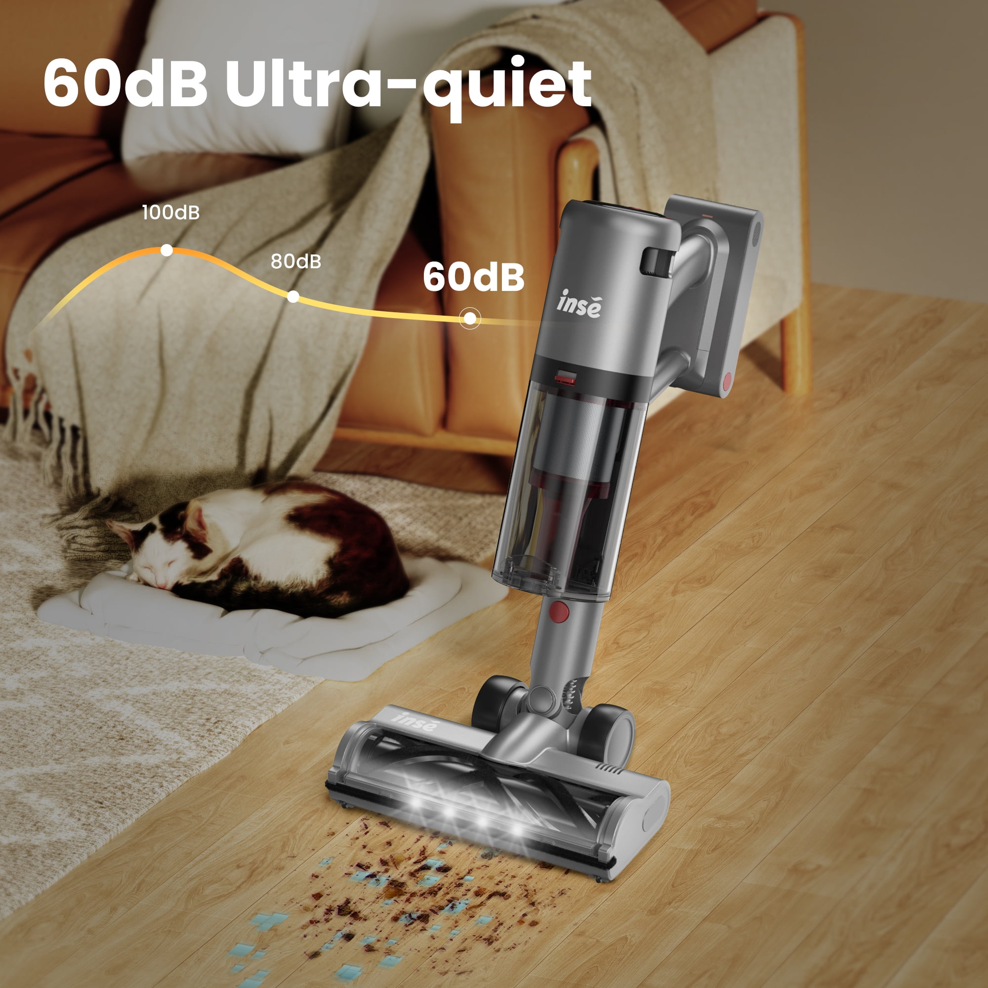 INSE Cordless Vacuum with 30Kpa Suction & 60 Mins Runtime, Stick Vacuum for Carpet, Tile, Pet Hair, Hardwood Floors
