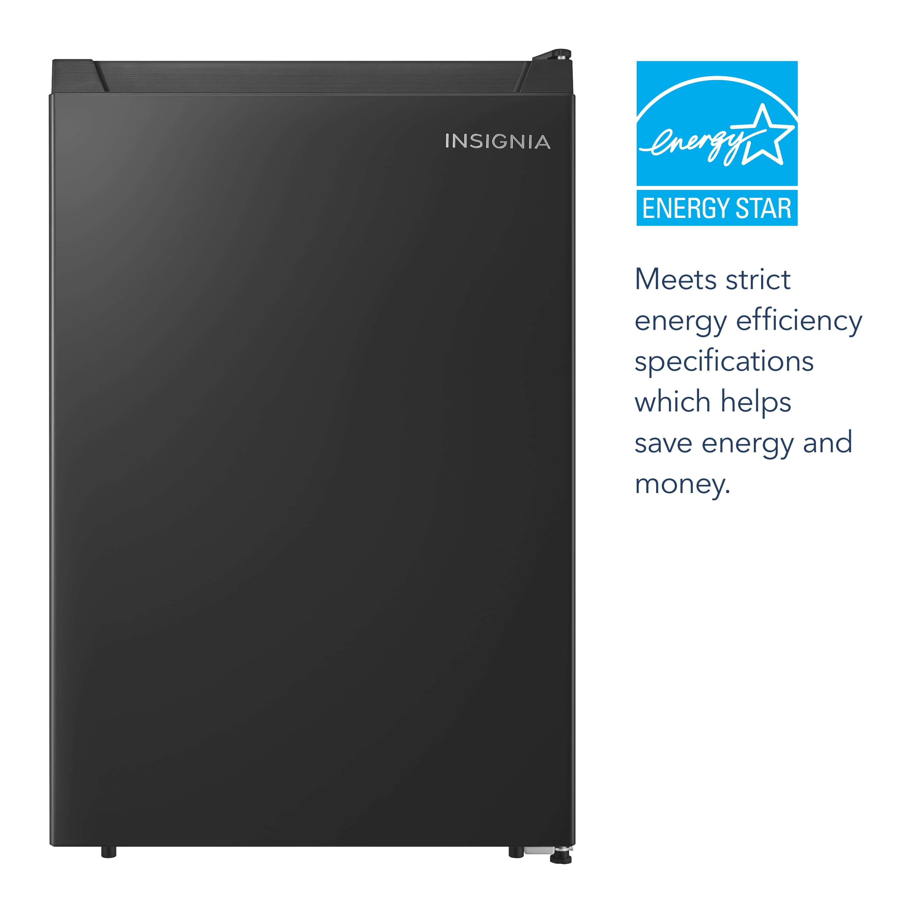 Chill your personal favorites in the Insignia 2.5 Cu. Ft. Mini Fridge with Reversible Door and ENERGY STAR Certification. An adjustable thermostat allows you to set an ideal temperature with the simple turn of a dial. A compact size and reversible door hinge help the fridge adapt to any space.