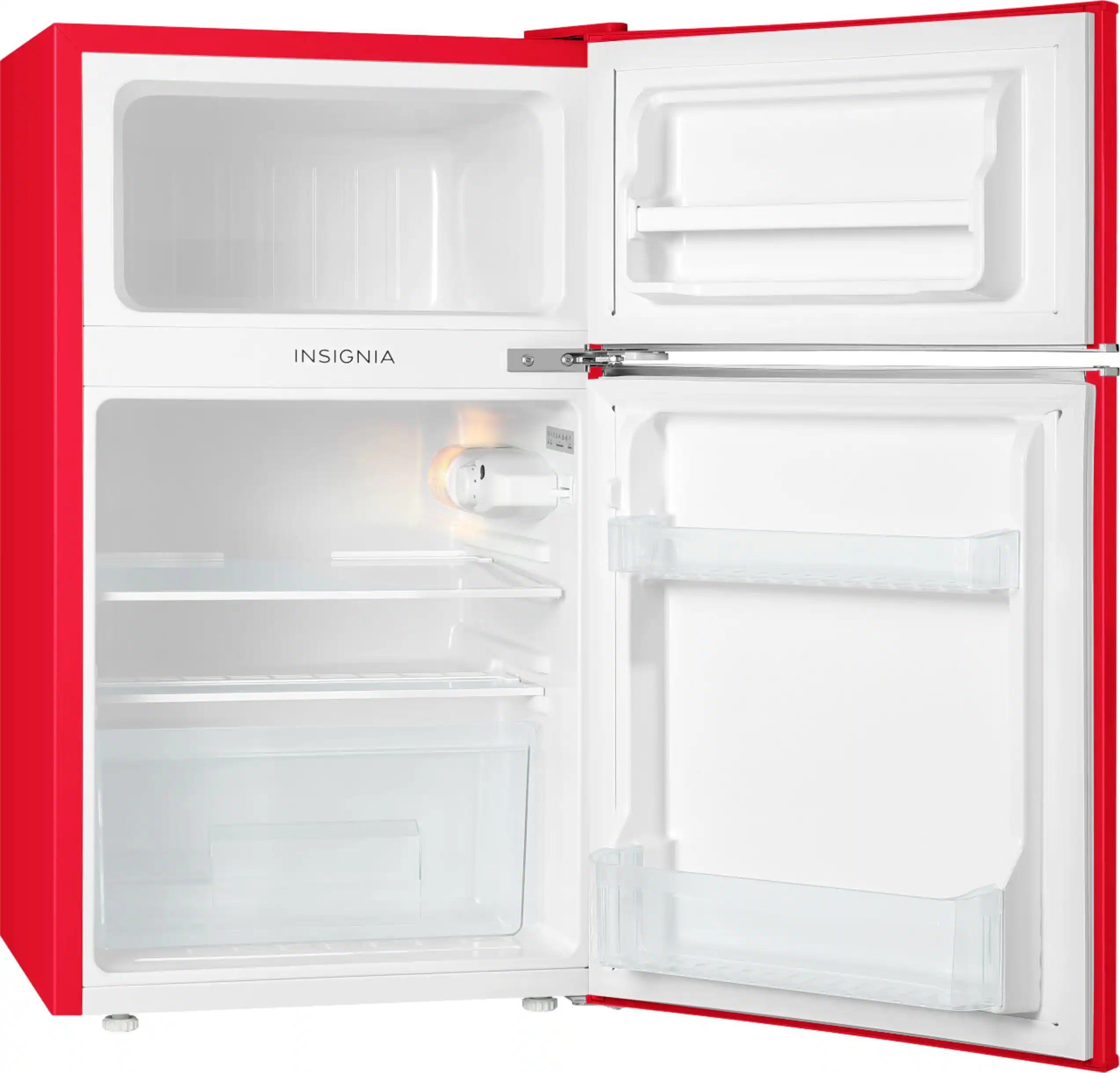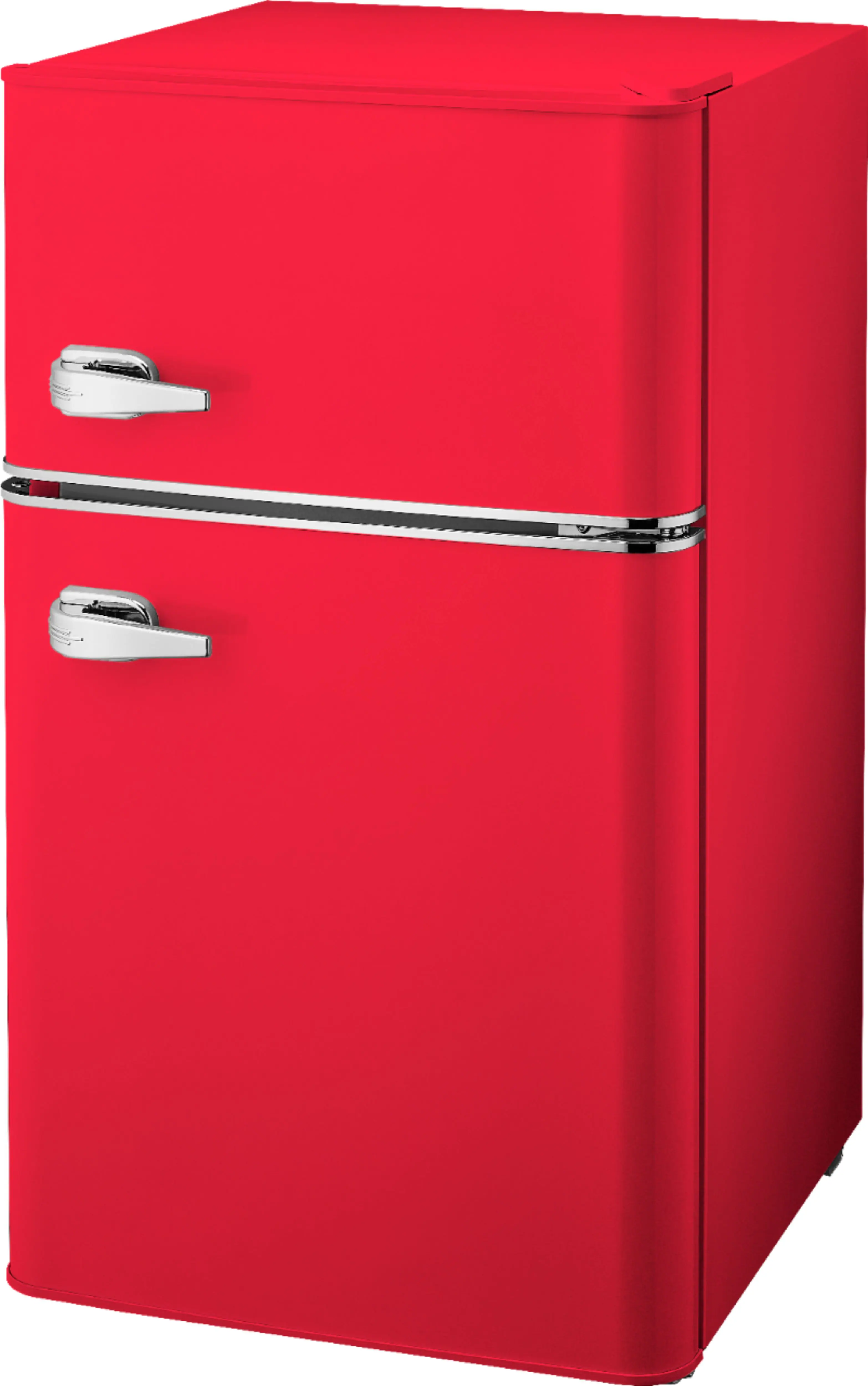 The 3.1 cu. ft. Retro Mini Fridge with Top Freezer blends style and functionality. Its small stature perfectly complements a basement, office, or dorm room. A dedicated crisper drawer is perfect for helping you preserve fruits and vegetables while adjustable shelving lets you to organize everything just the way you like it. A separate freezer compartment gives you .9 cu ft of storage space for your favorite frozen treats.
