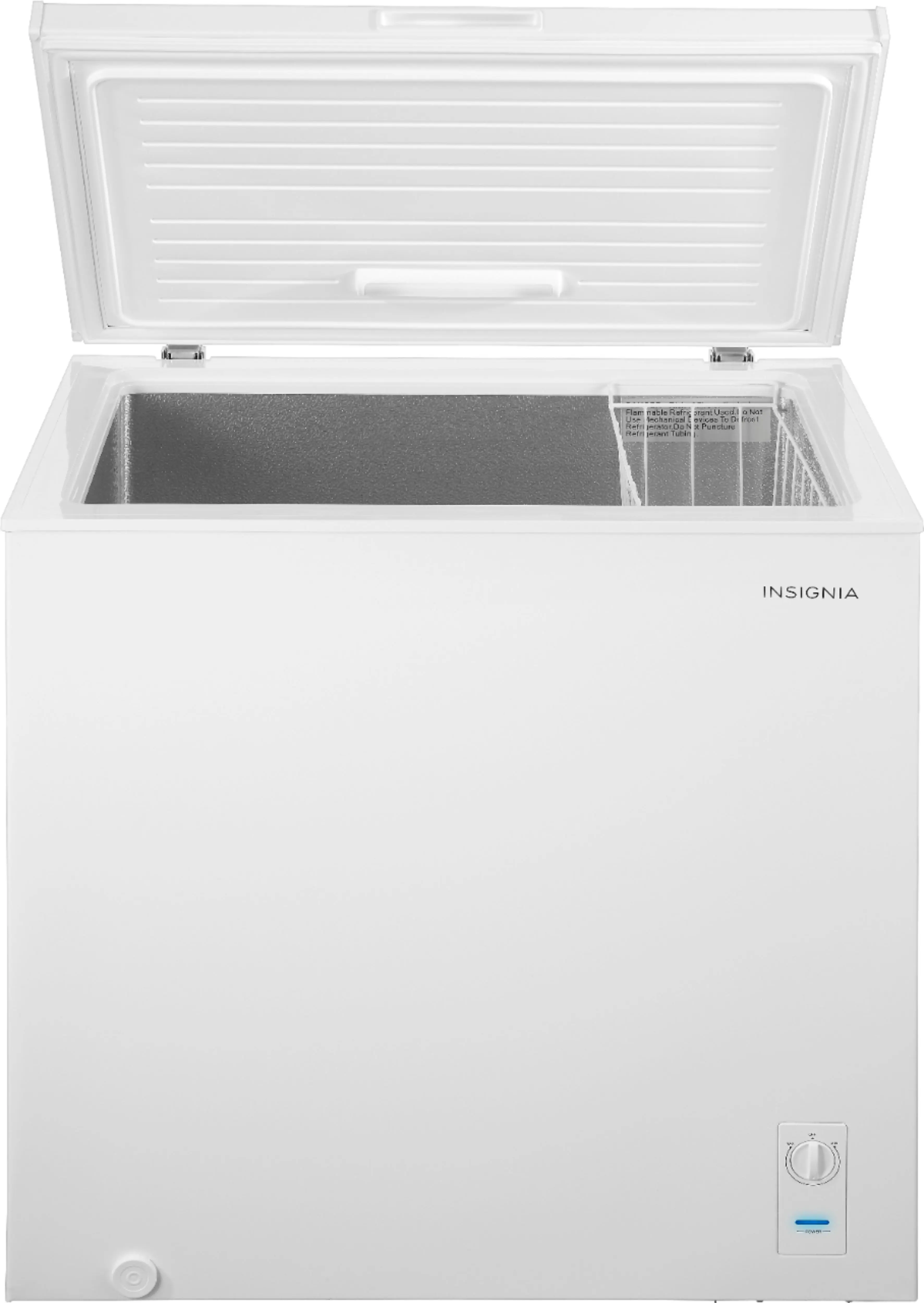 The Insignia 7.0 Cu. Ft. chest freezer has a removable storage basket to keep your food organized so you can find all your items. Have confidence that your food is stored correctly by adjusting the temperature control panel.