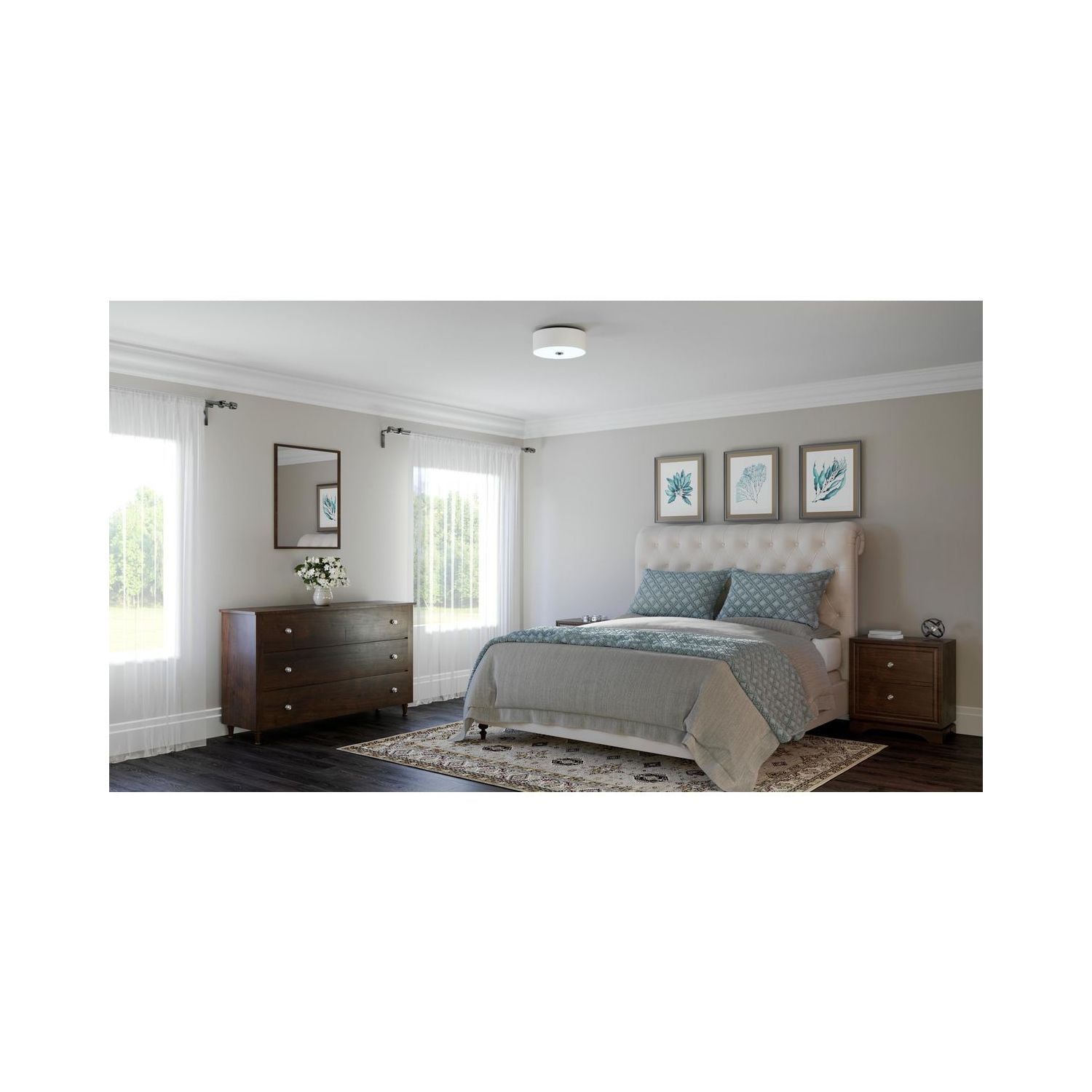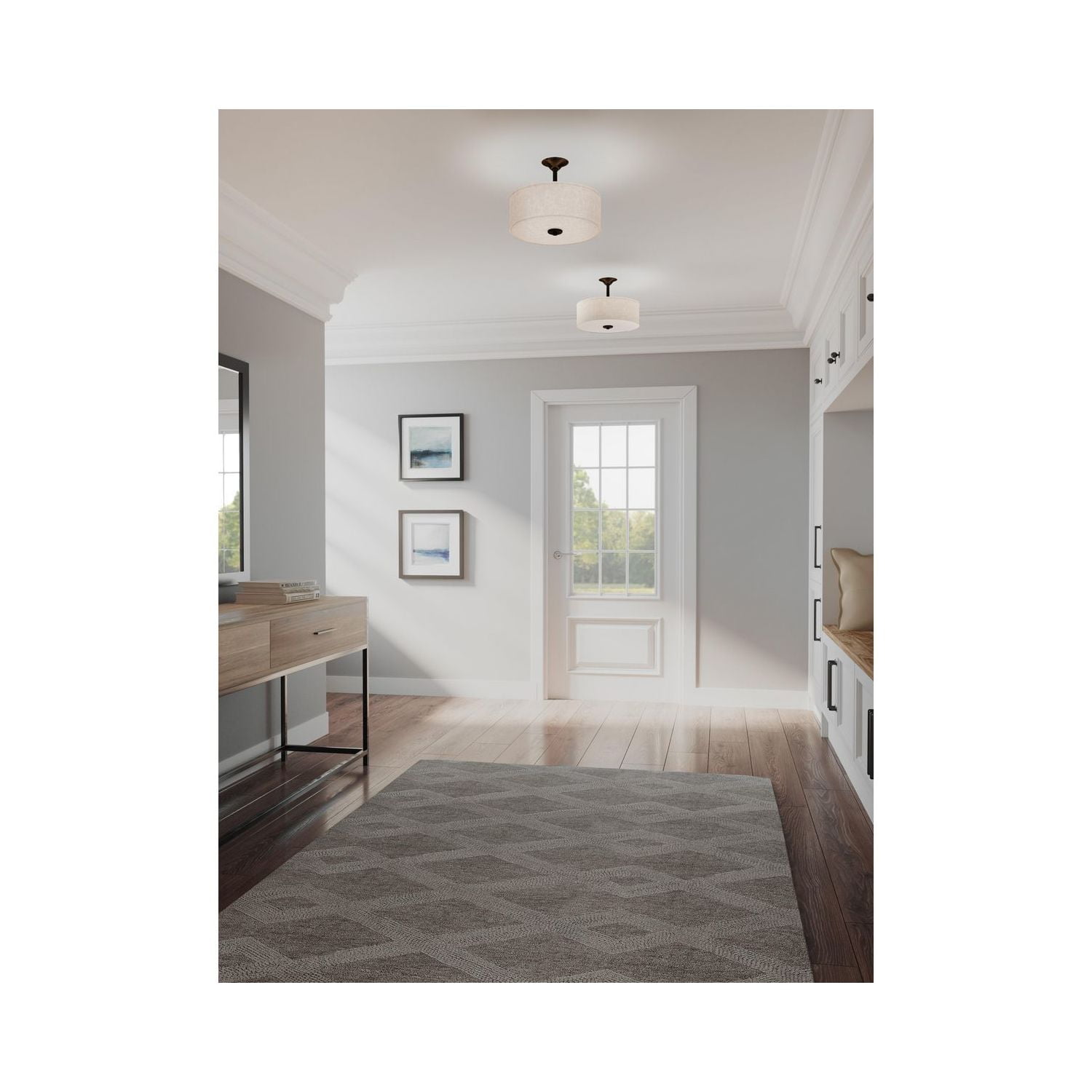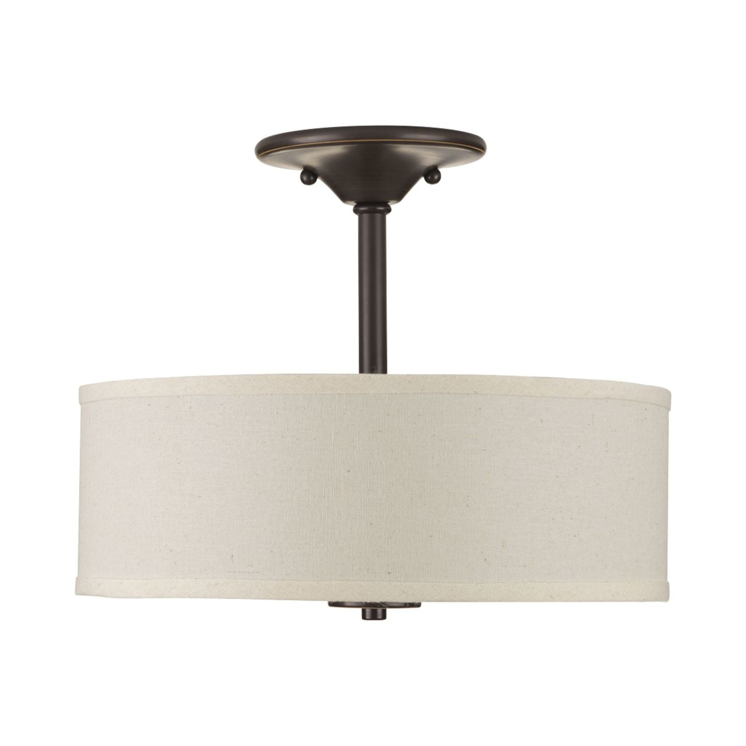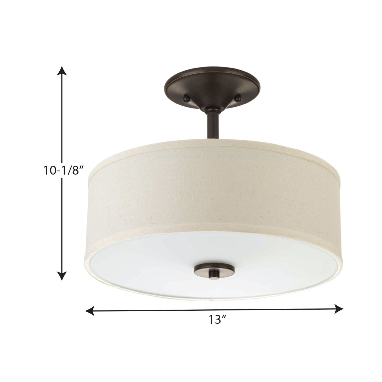 Freshen up your home décor with a semi-flush mount light from the Inspire Collection. A crisp off-white linen shade with an etched glass diffuser creates a beautiful muted glow. Metal accents are coated in a handsome antique bronze finish. Compatible with dimmable bulbs.