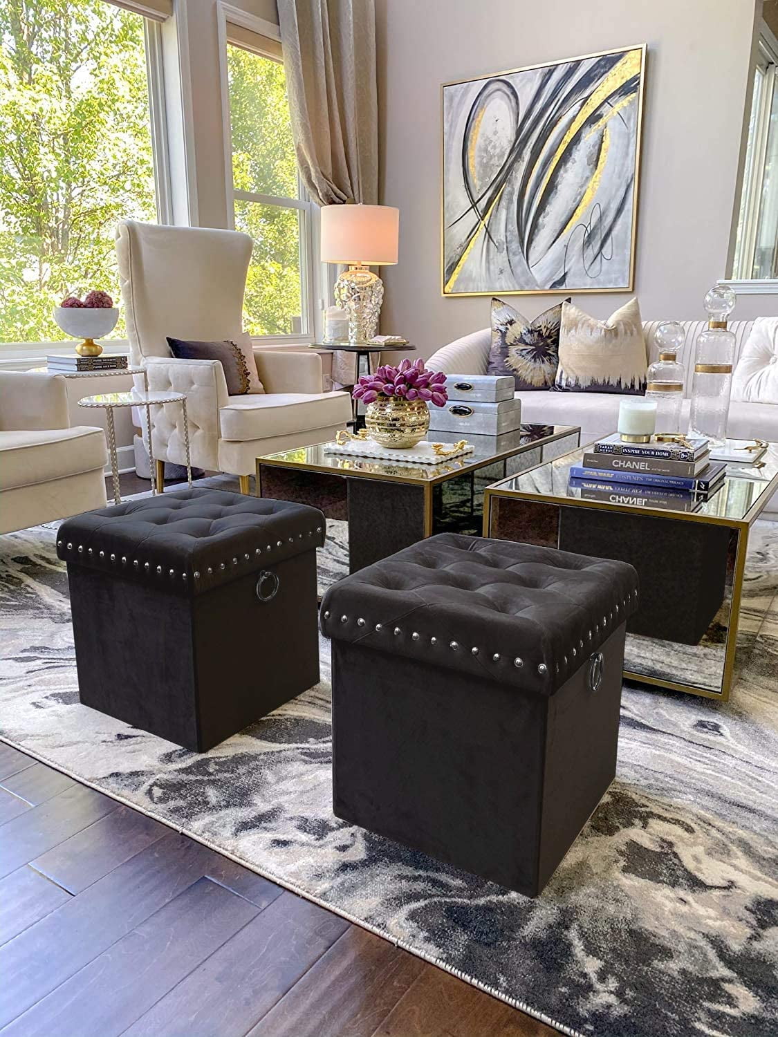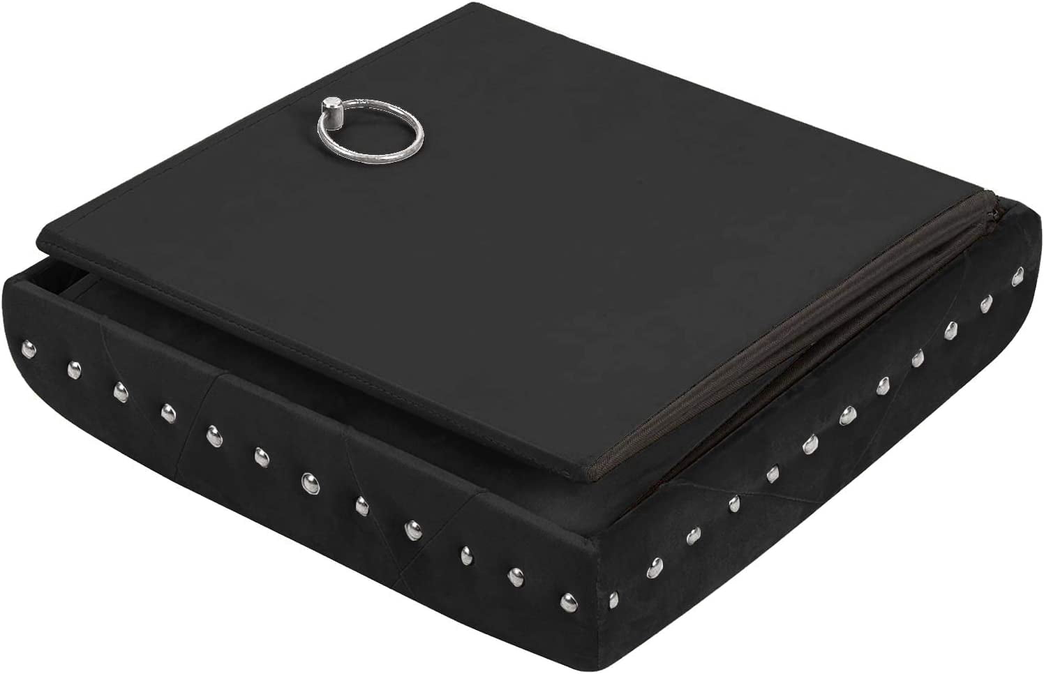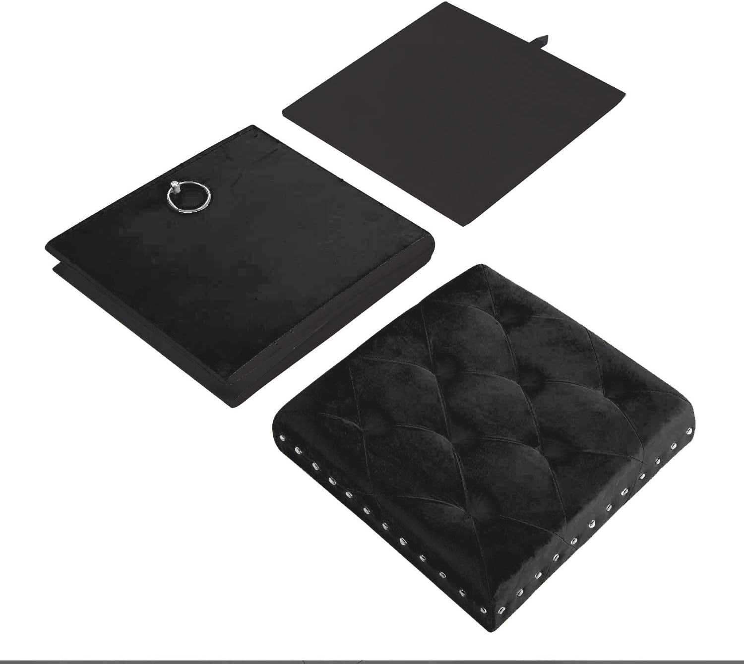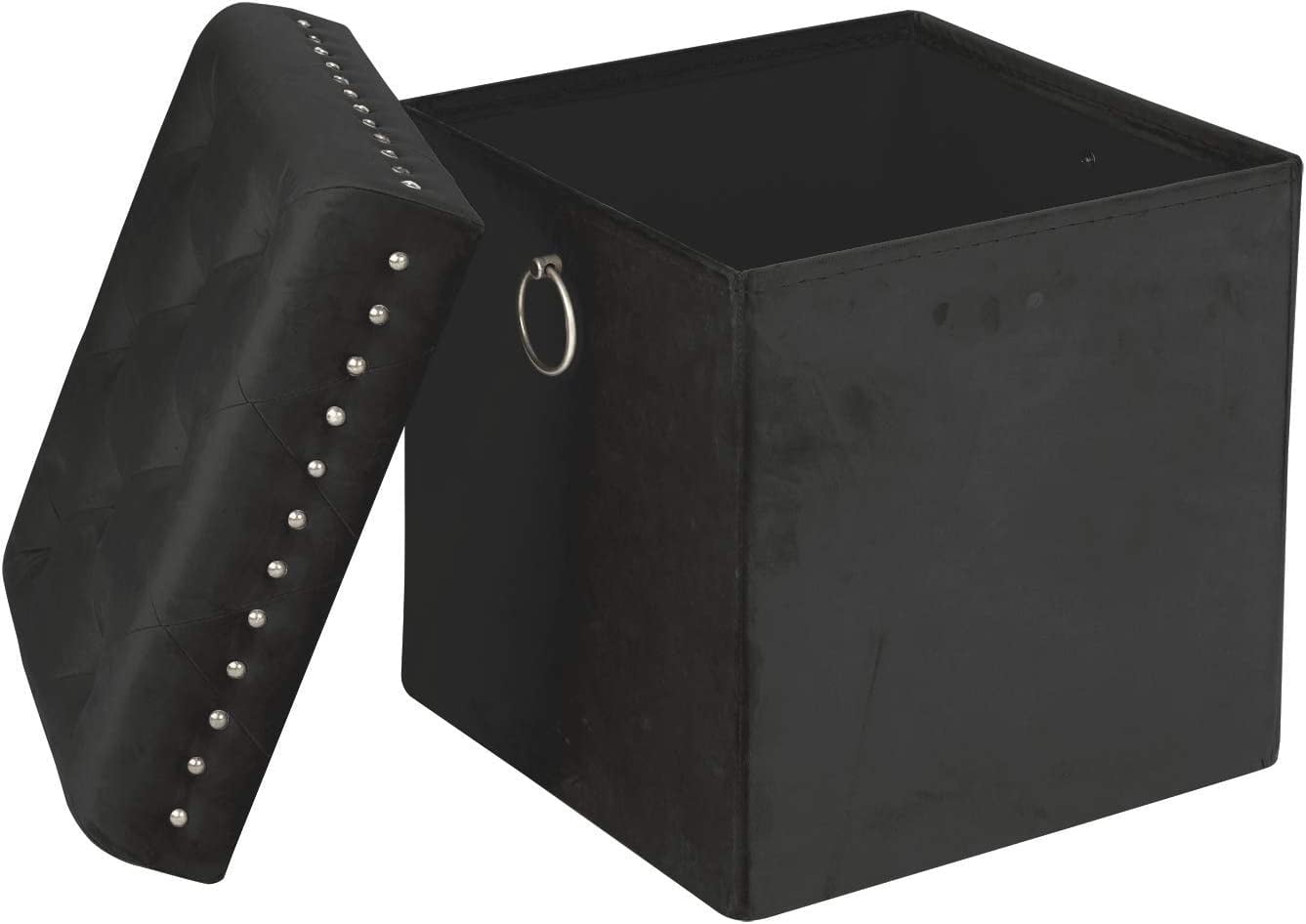 Inspire Me! Home Décor Anastasia Ottoman with Lux Metal Studs and Functional Handle Detailing, Classy Jet Black Soft Velvet, 16 x 16 x 17 in, Gorgeous Tufted Design, Comfortable Seating Hidden Storage