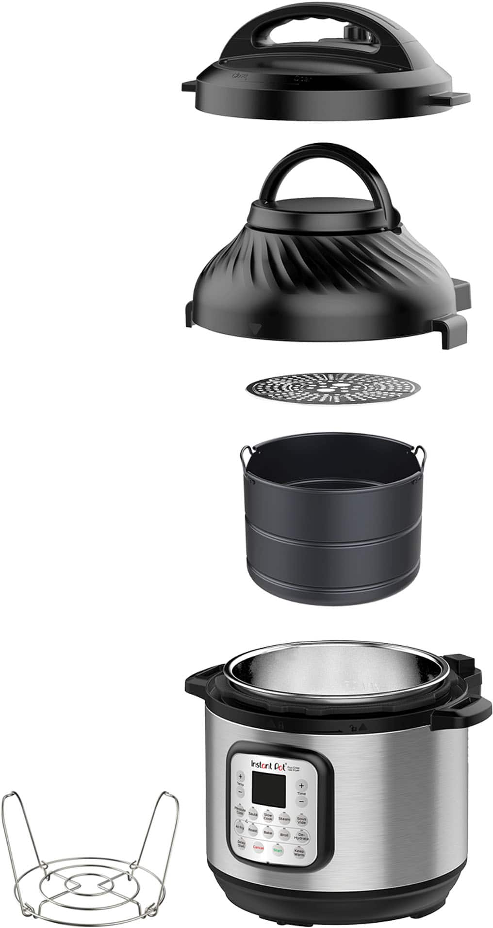 Broil and dehydrator tray, air fryer basket, air fryer basket base, steam rack, air fryer lid, pressure cooker lid and stainless-steel inner pot