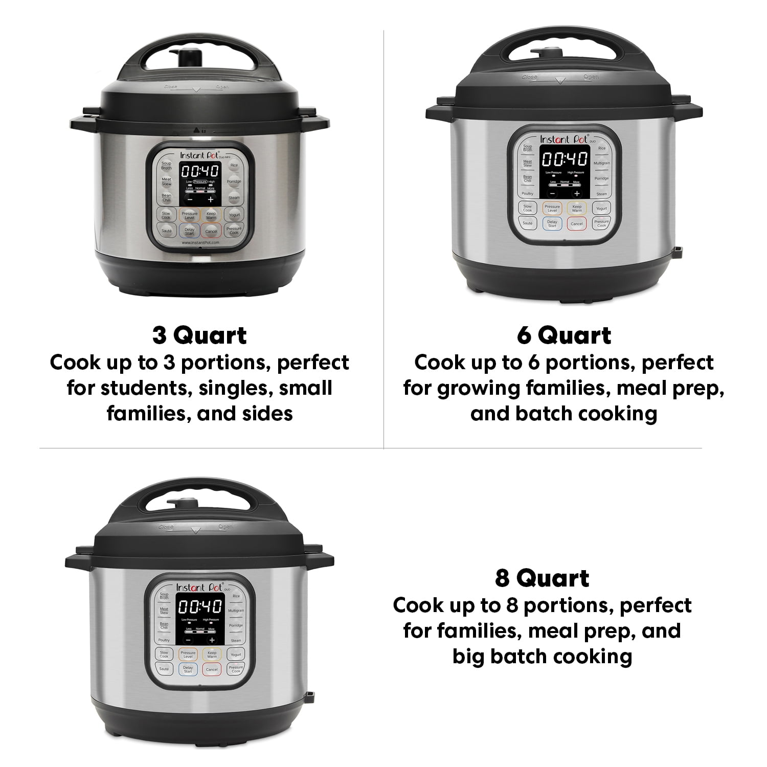 Instant Pot DUO80 7-In-1 Multi-Functional Electric 8QT Pressure Cooker: Instant Pot Duo 8 Qt is a 7-in-1 electric pressure cooker, slow cooker, rice cooker, steamer, saute/browning and warmer Micro-processor controls 10 programs including soup/broth, meat/stew, yogurt Stainless steel inner cooking pot Dishwasher safe stainless steel inner pot Quick and simple to use