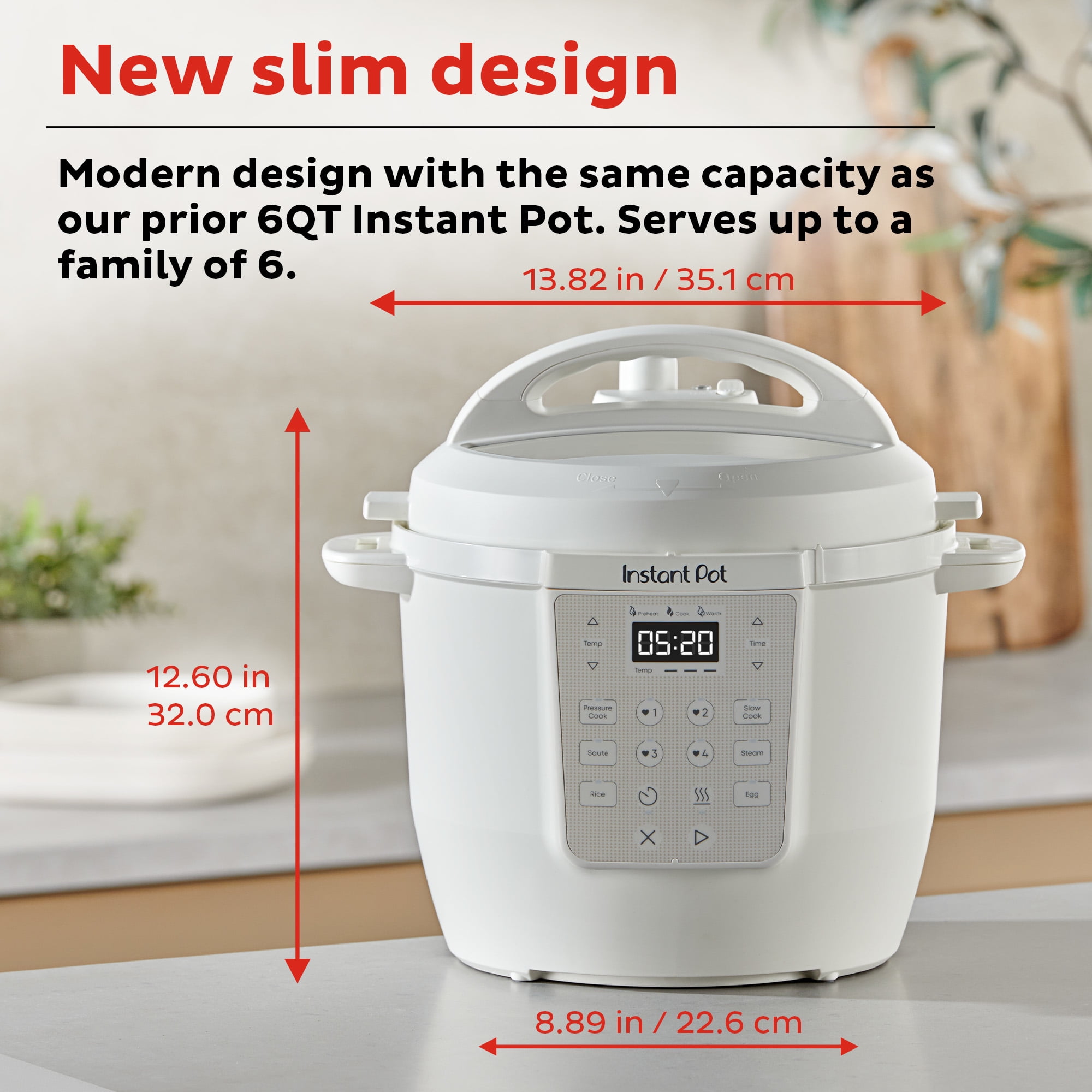 Slim, modern design that fits beautifully on your counter 7-in-1 functions: pressure cook, slow cook, rice, yogurt, steam, sauté and keep warm Quick easy meals: 13 customizable smart programs for pressure cooking, slow cooking, meat/stew, poultry, beans/chili, rice, multigrain, soup/broth, steam, sauté, yogurt, cake and keep warm