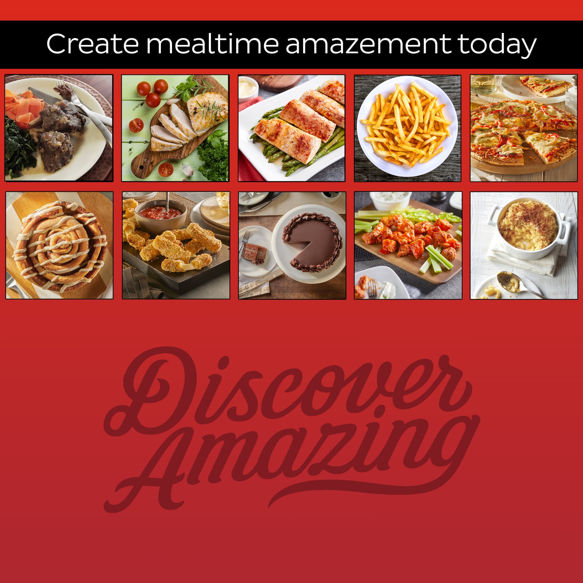 7-in-1 air fry, roast, broil, bake, reheat, dehydrate, and rotisserie 6 customizable programs for quick one-touch meals Easy to use touchscreen and bright display Little to no preheating time, from frozen to golden in minutes Rotisserie feature for perfect self-basting and tumble-frying EvenCrisp for the crunch and tenderness of deep-frying with 95% less oil Cook 8+ servings: perfect for perfect for large families, parties and meal prep Accessories include a non-stick drip pan and 2 perforated cooking trays, a cooking rack, stainless-steel rotisserie basket, rotisserie spit and forks, and lift tool Built-in safety features like Overheat Protection, auto-off and more 1500 watts, 120 V~ 60 Hz, ETL Certified