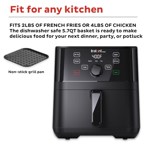Instant Pot 5.7Qt VORTEX 4-in-1 Air Fryer, Crisps, Roasts, Reheats, Bakes with EvenCrisp Technology, Black
