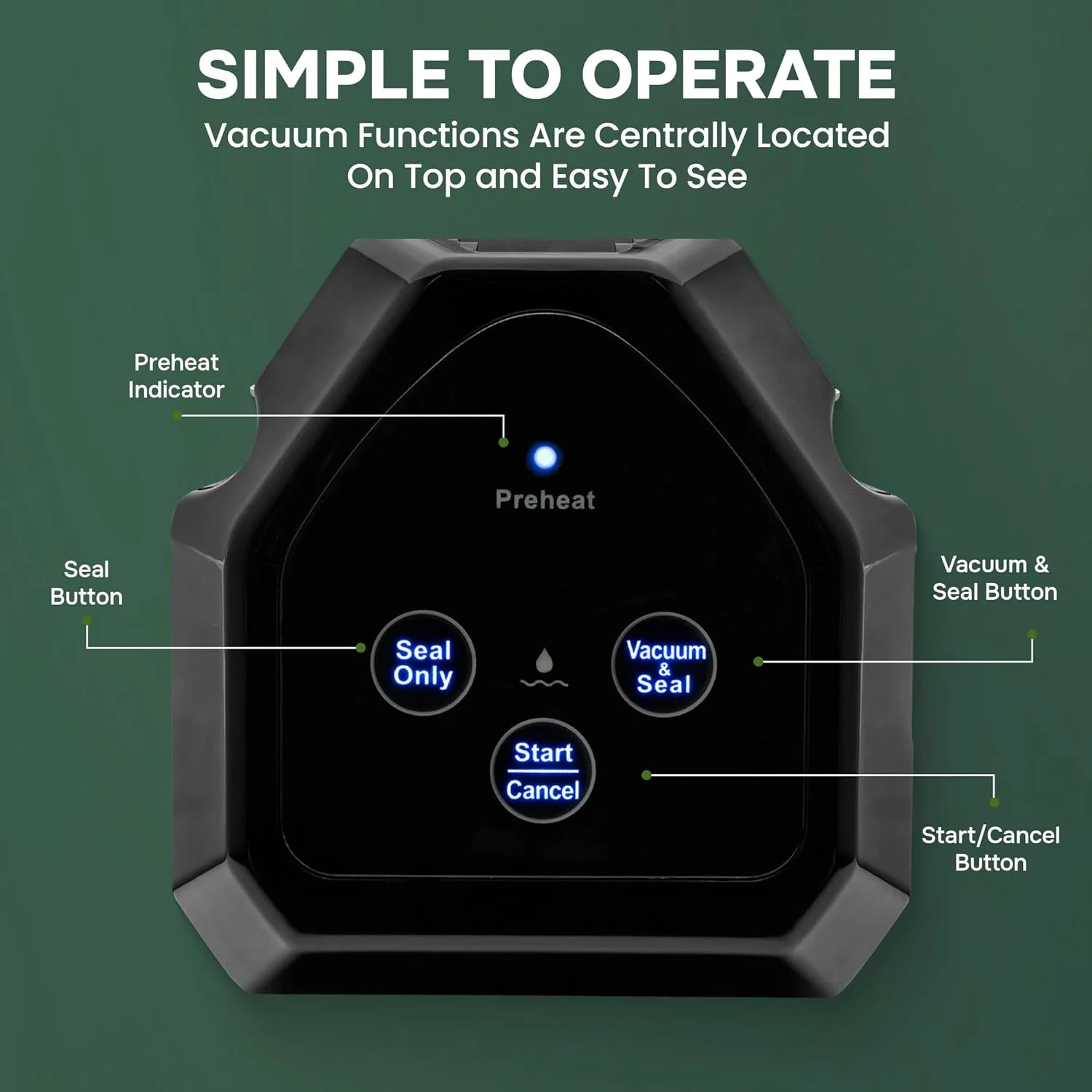 Seal your food fresh with the InstaSeal Vacuum Sealer Food Saver Machine. Standing upright with suction feet, it’s easy to use and ideal for sealing liquids without spills. Fast, non-stop sealing lets you handle meats, veggies, soups, and more in no time. The double airtight seal prevents freezer burn and preserves flavor. A special overflow system catches extra liquid. Compact and simple to operate, it comes with 50 food-safe bags (25 medium, 25 large). Save time, money, and space by keeping your food fresh longer.