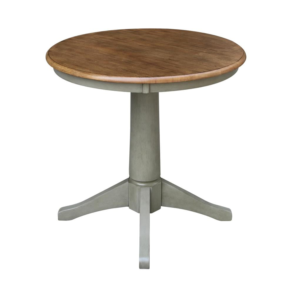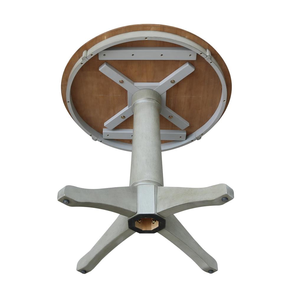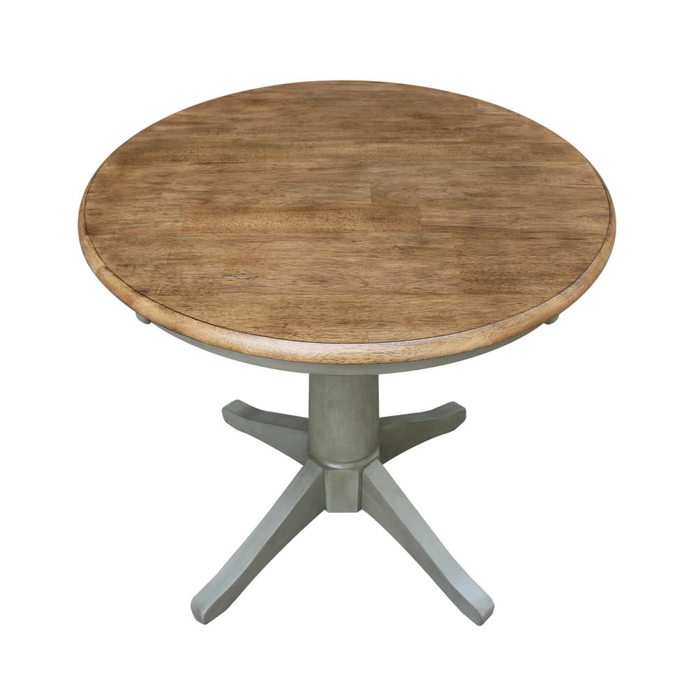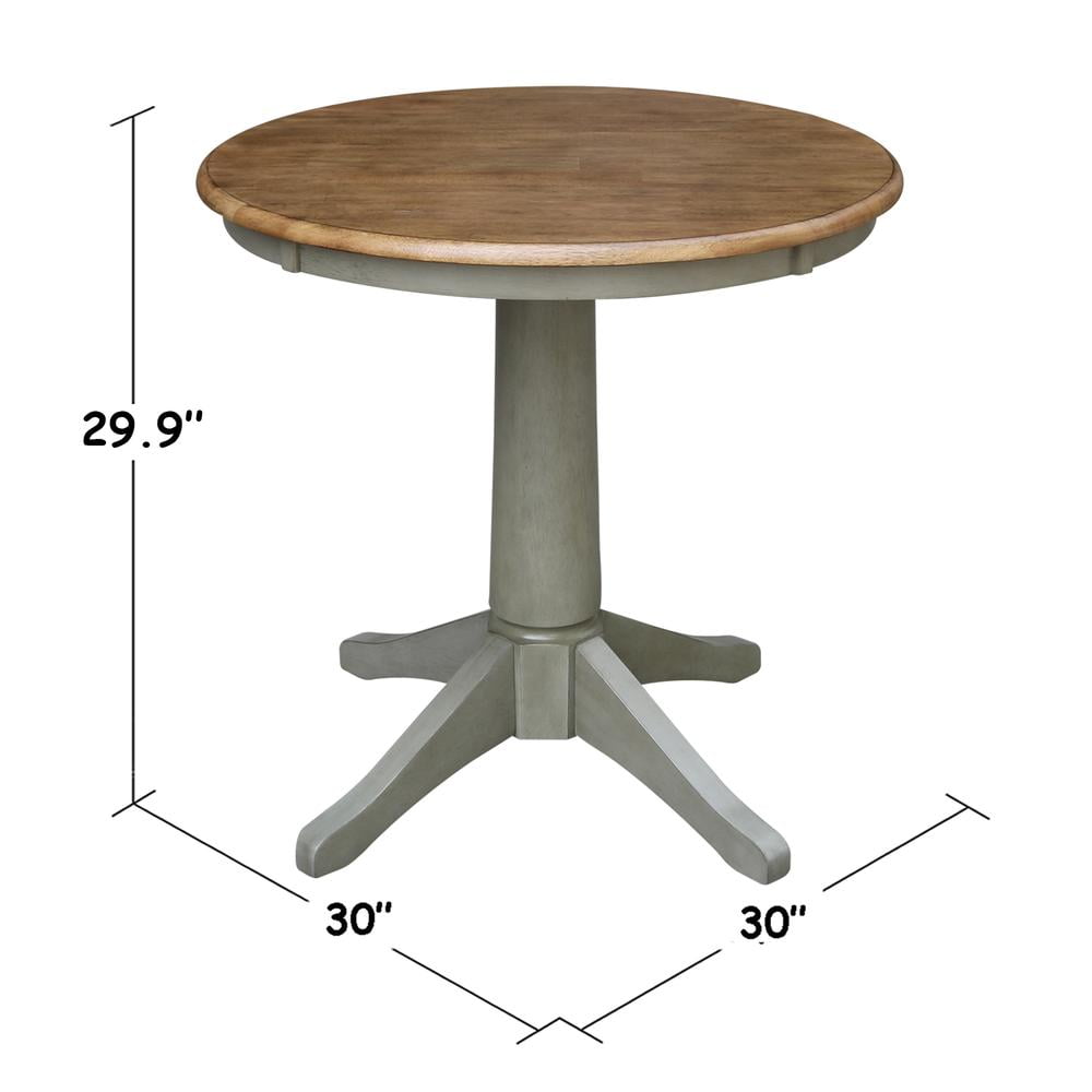 International Concepts home furniture is a beautiful collection of high quality, wood furniture with a traditional and elegant look. Featuring pieces, you will be proud of for years to come and that will easily complement any decor. All pieces are manufactured from solid parawood which is more commonly referred to as Rubberwood. Parawood is eco-friendly in terms of being a fantastic renewable resource. As parawood is considered to be a hardwood, it is actually a truly durable and strong wood. Features: Color: Distressed Hickory/Stone Material: Hardwood For use with dining chairs Butcher block top Pedestal base with four feet for maximum support Ready to assemble Not rated for commercial use, for residential use only Specifications: Product Dimensions: 30″W x 30″D x 29.9″H Product Weight: 40.8 lbs.