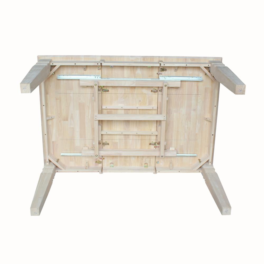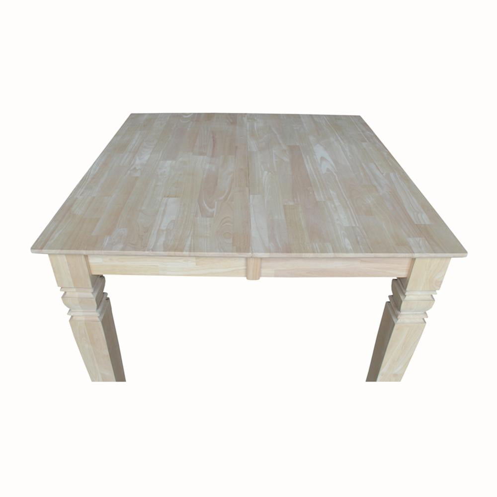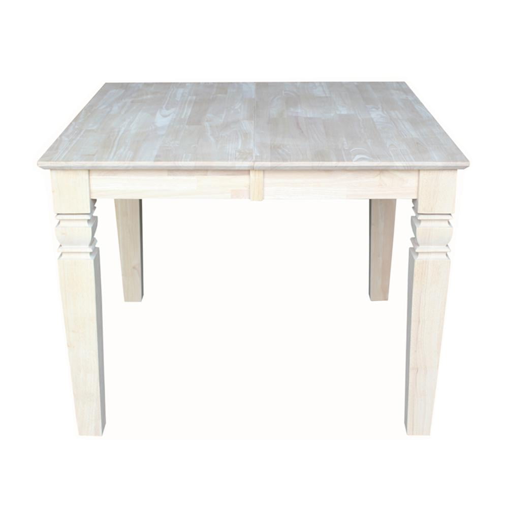 Create extra space when needed in your kitchen or dining room with this extension table from International Concepts. This versatile table is crafted from solid wood and is part of a high-quality collection of wood furniture that will easily complement any décor. Parawood – a hardwood known for its durable, strong, and environmentally friendly nature – is used to craft these traditional tables. This table easily pulls apart on metal glides allowing you to insert a 12-inch leaf, adding to your dining space and accommodating additional guests. Pair with a wide variety of chairs and stools from the International Concepts seating collections to create the perfect dining experience! Whether you are enjoying a cup of coffee, a daily lunch, or a Sunday dinner, you will have this extension table to appreciate for years to come.