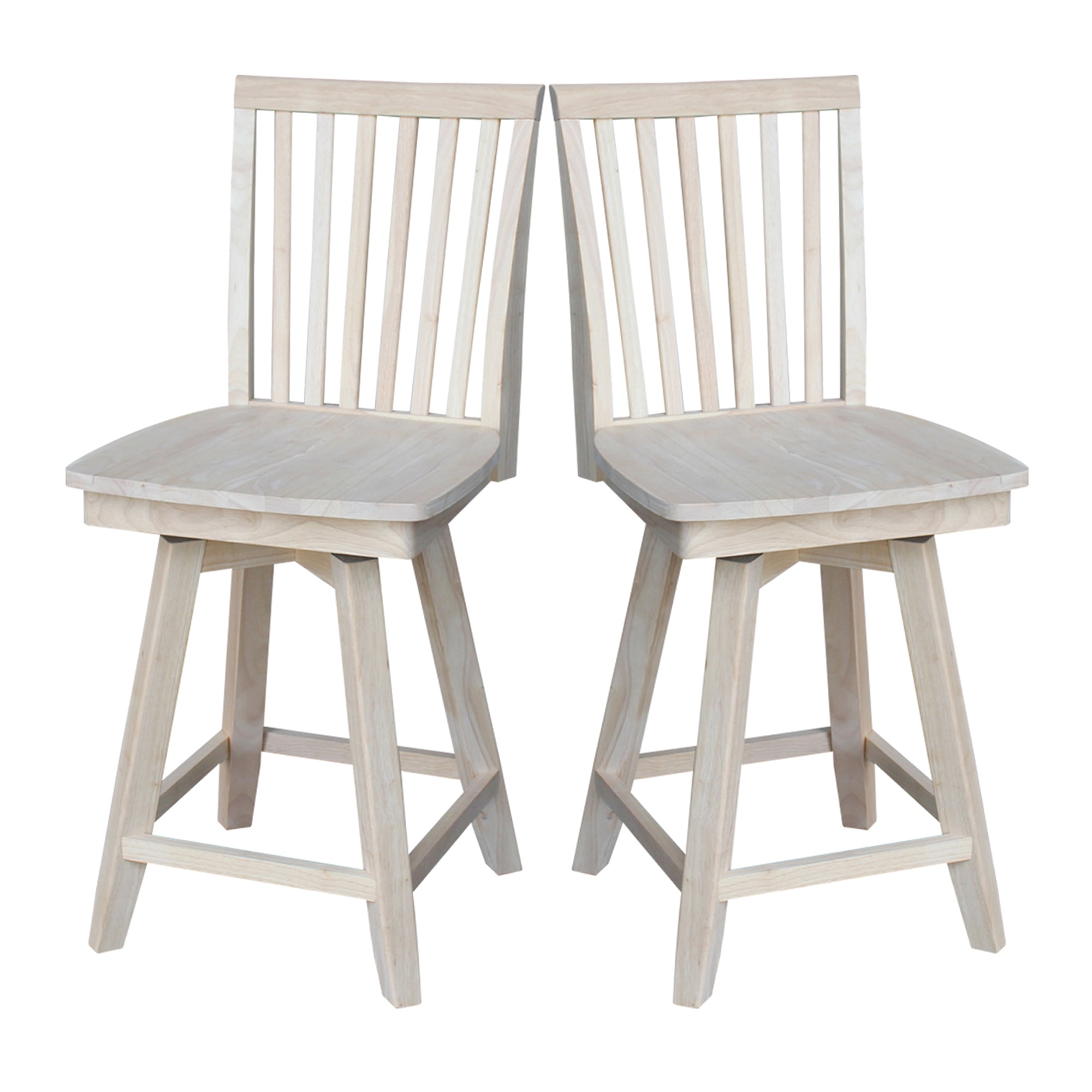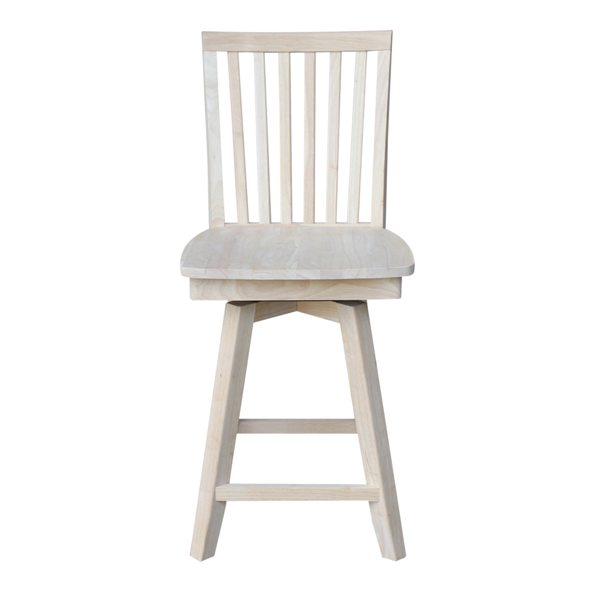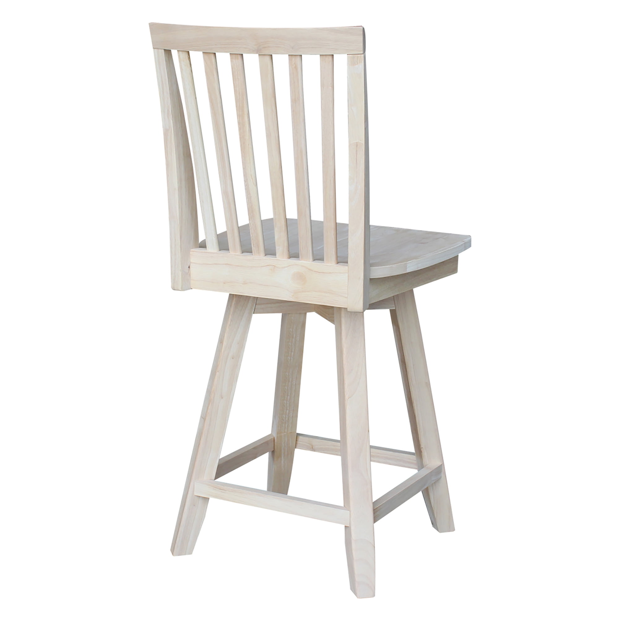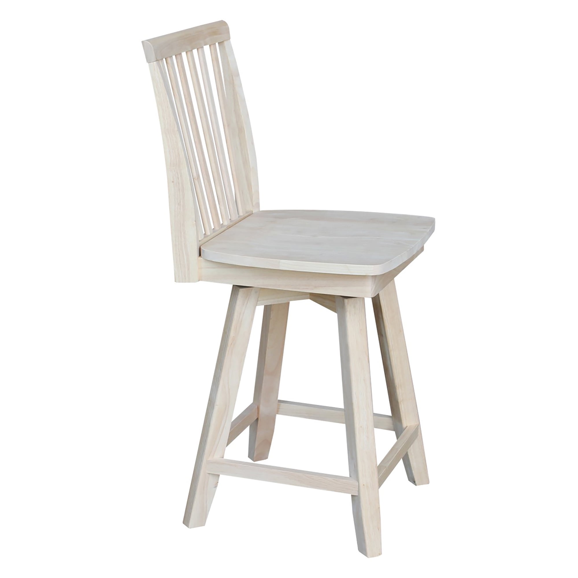 International Concepts Mission Counter Stool, 24″, Ready to Finish: Box seat construction Swivel and auto return mechanism Sold individually Counter height Solid parawood construction Not rated for commercial use, residential use only Assembly required Dimensions: 18″L x 20″W x 40″H (24″ seat height) Model# S-262SW