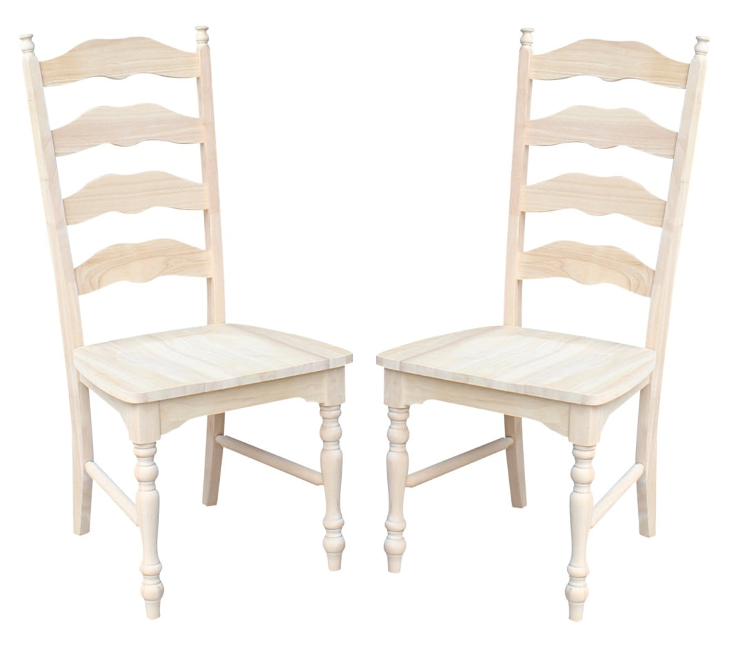Create a classic, welcoming look to your kitchen, dining room, or breakfast nook with these solid wood dining chairs from International Concepts. These traditional yet elegantly crafted chairs are part of a high-quality collection of wood furniture that will easily complement any décor. Parawood – a hardwood known for its durable, strong, and environmentally friendly nature – is used to craft these attractive and long-lasting chairs. Paired with one of the wide variety of tables from International Concepts, these chairs will make every meal feel more luxurious.
