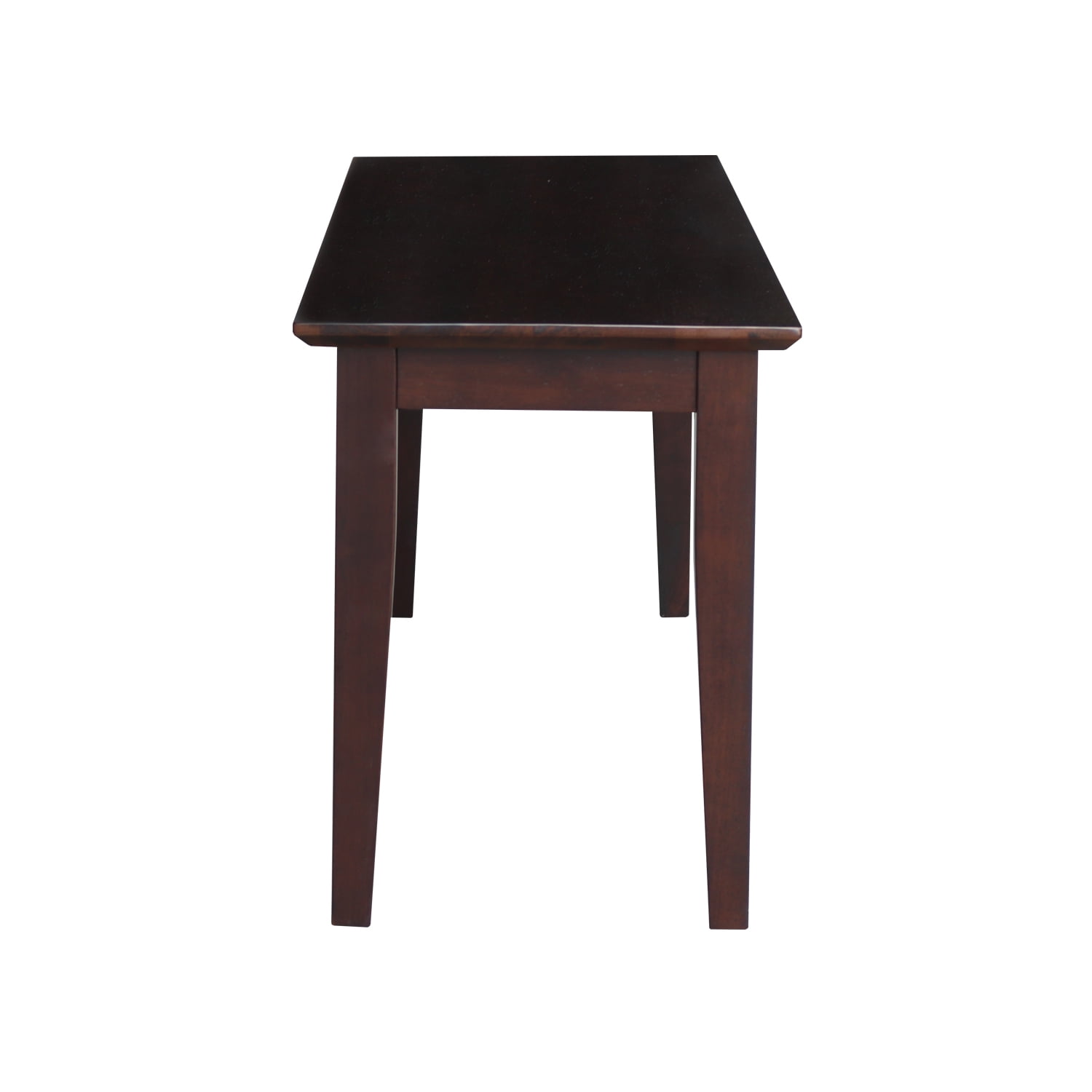 Finished in Rich Mocha Shaker styled bench Composed of solid parawood Easy to assemble Square legs Dimensions: 39″W x 14″D x 18″H