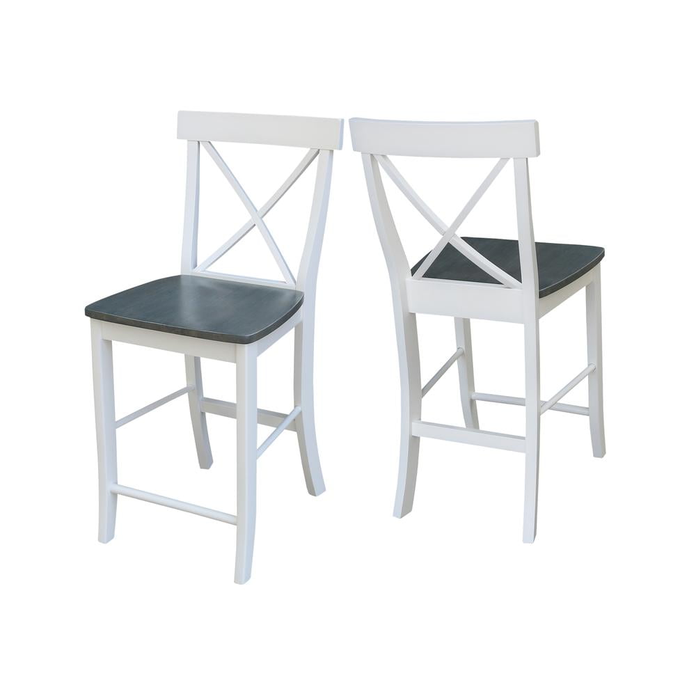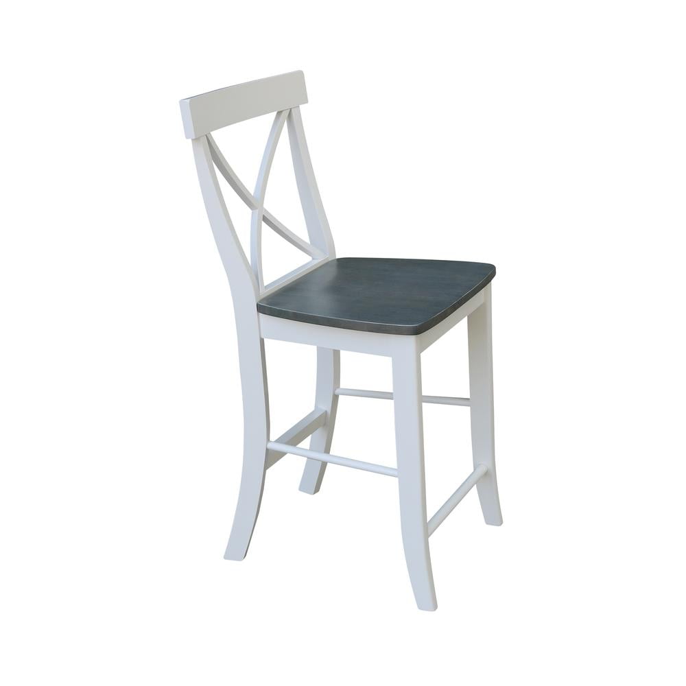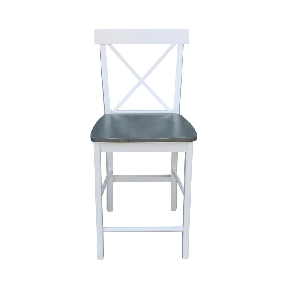 International Concepts Solid Wood Counter Height Stool Cross Back Design – White/Heather Gray