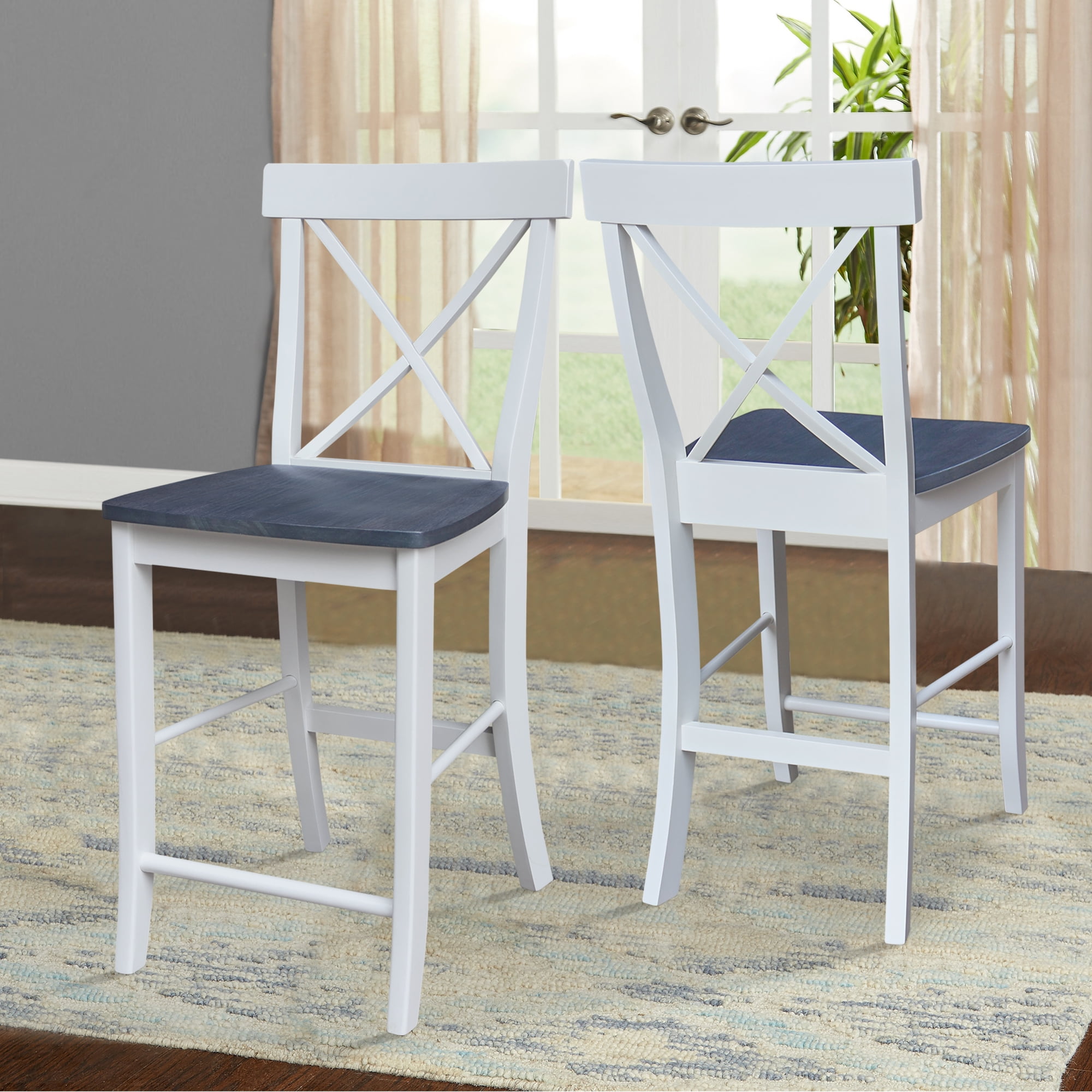 [Dimensions & Comfort] Measures 17.7″ W x 20.4″ D x 40″ H with a seat height of 24″; spacious seating ensures comfort during long sittings at the counter or bar [Quality Material] Constructed from solid parawood, known for its strength and durability; ideal for daily use in residential settings [Stylish Design] Features a classic cross back design in a sleek White/Heather Gray finish, blending seamlessly with any kitchen, dining room, or bar decor [Functional Elegance] Counter height stool design fits perfectly with kitchen islands and bistro tables, enhancing the functionality and style of your space [Usage Specification] Specifically rated for residential use; not intended for commercial environments, ensuring longevity and maintainability in home settings