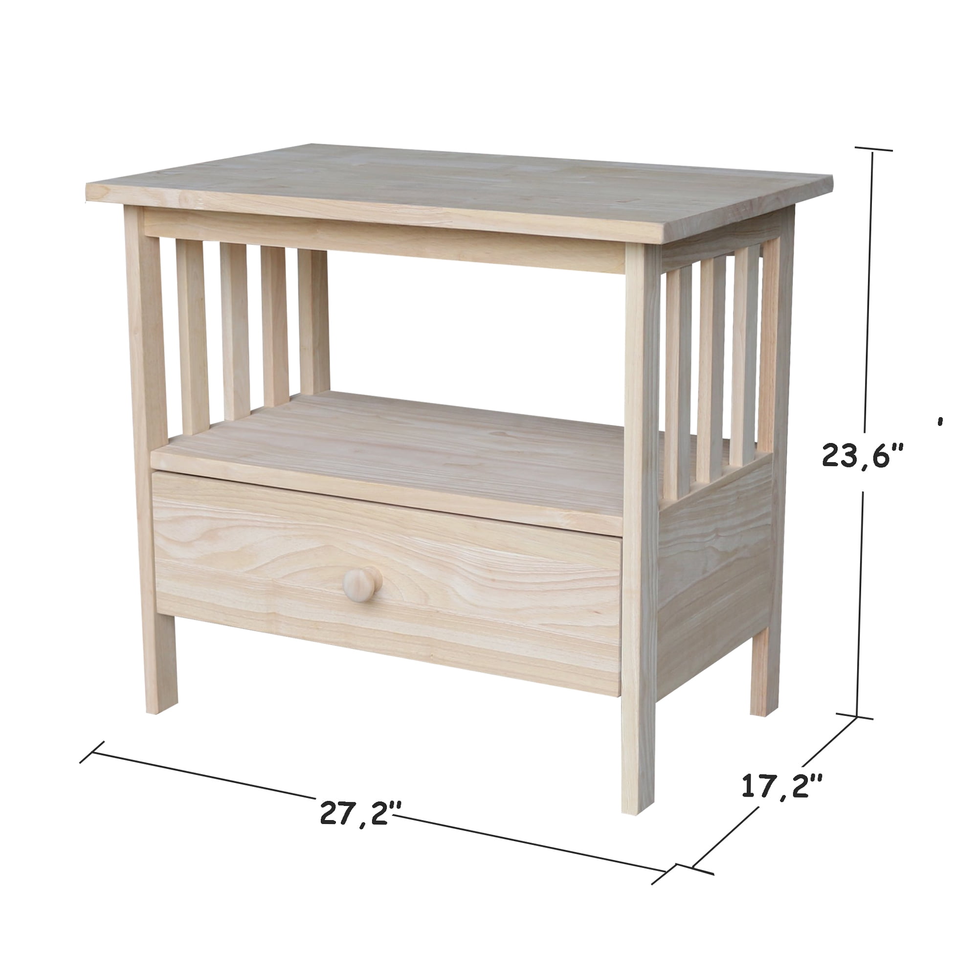 Product Material: Solid parawood One shelf and one drawer Ready to assemble Not rated for commercial use, for residential use only