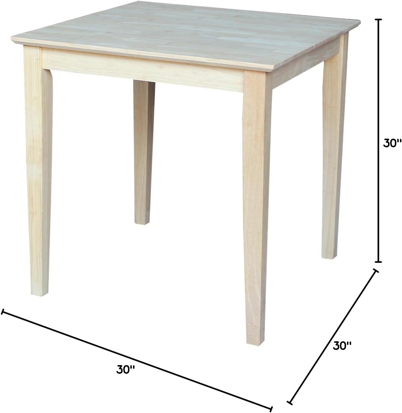 International Concepts Solid Wood Top Table with Shaker Legs, Unfinished