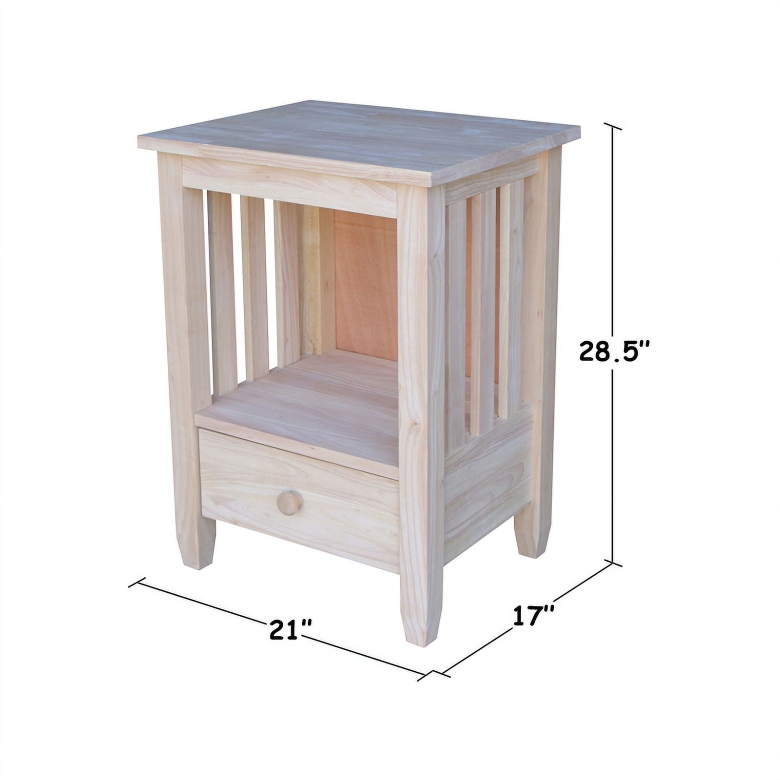 International Concepts Solid Wood Unfinished Mission Tall End Table with Drawer