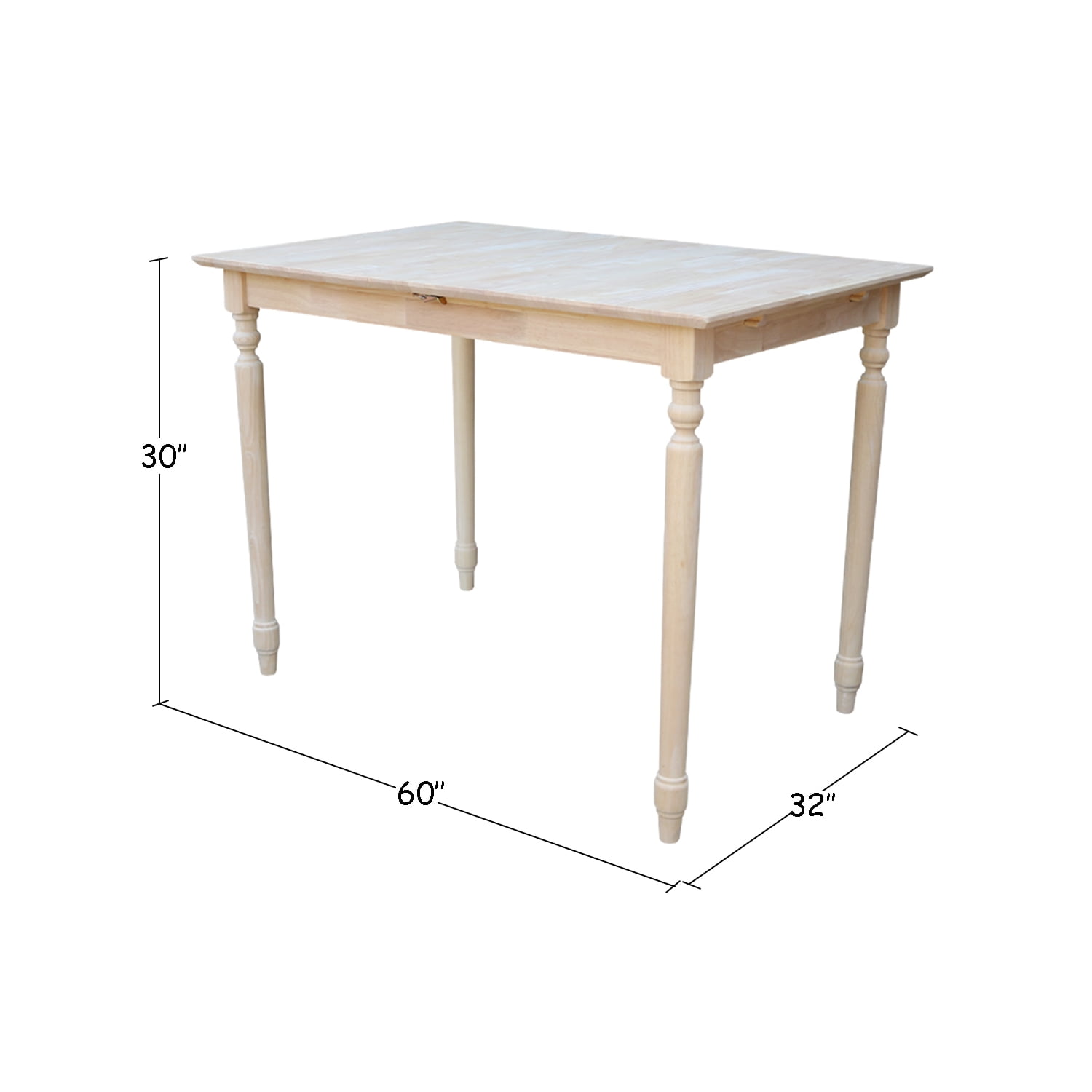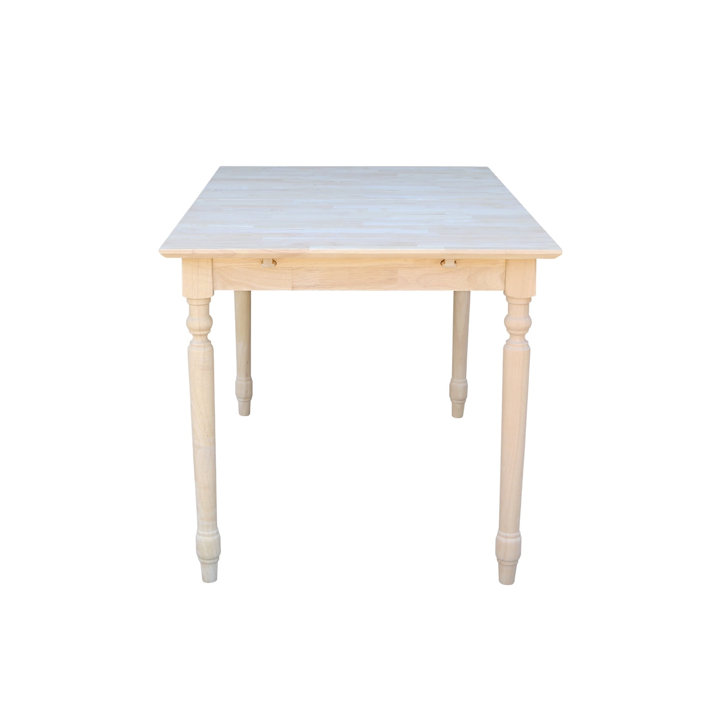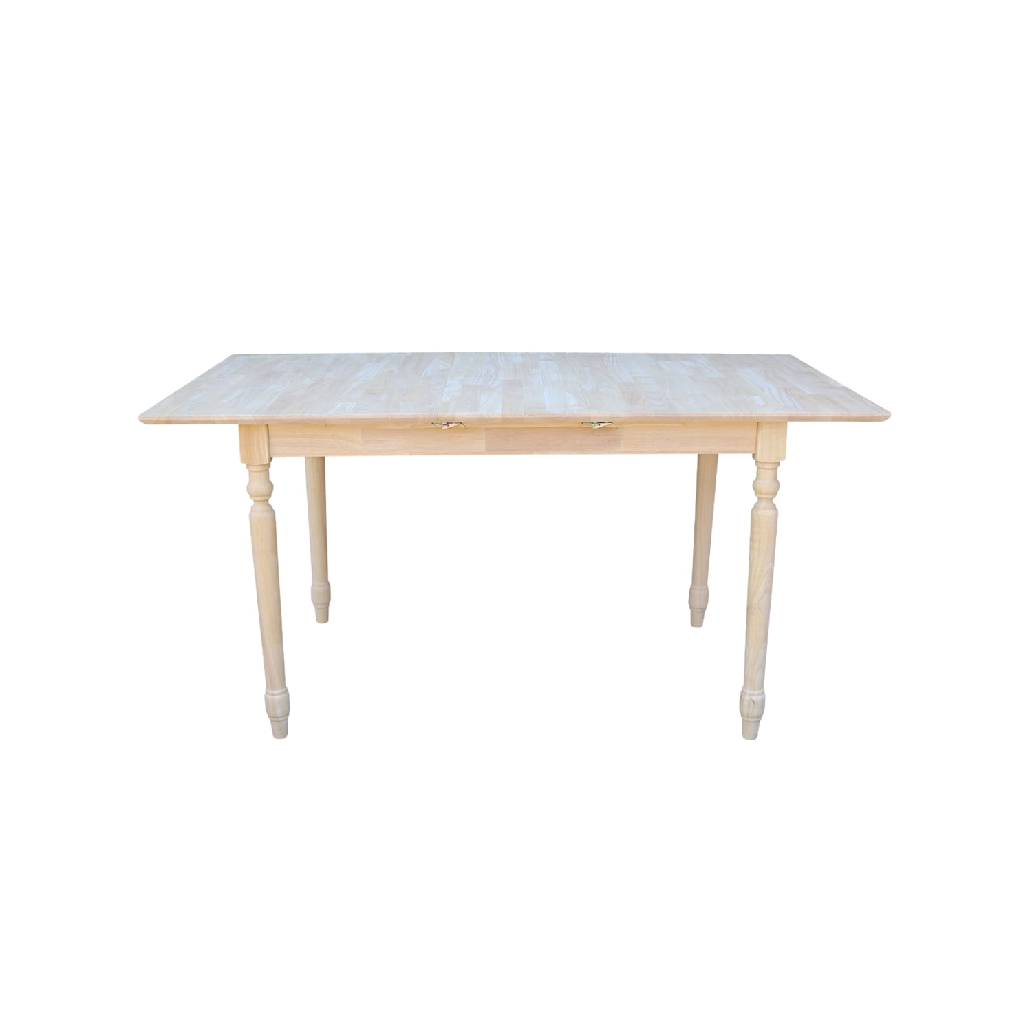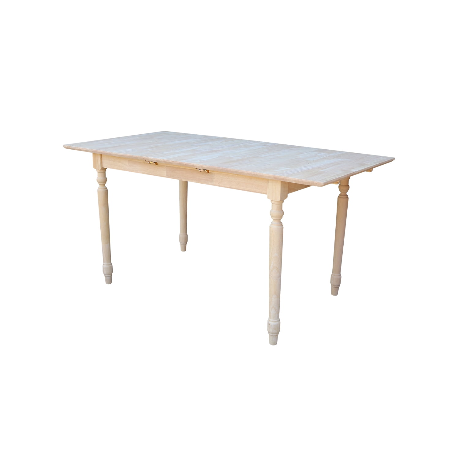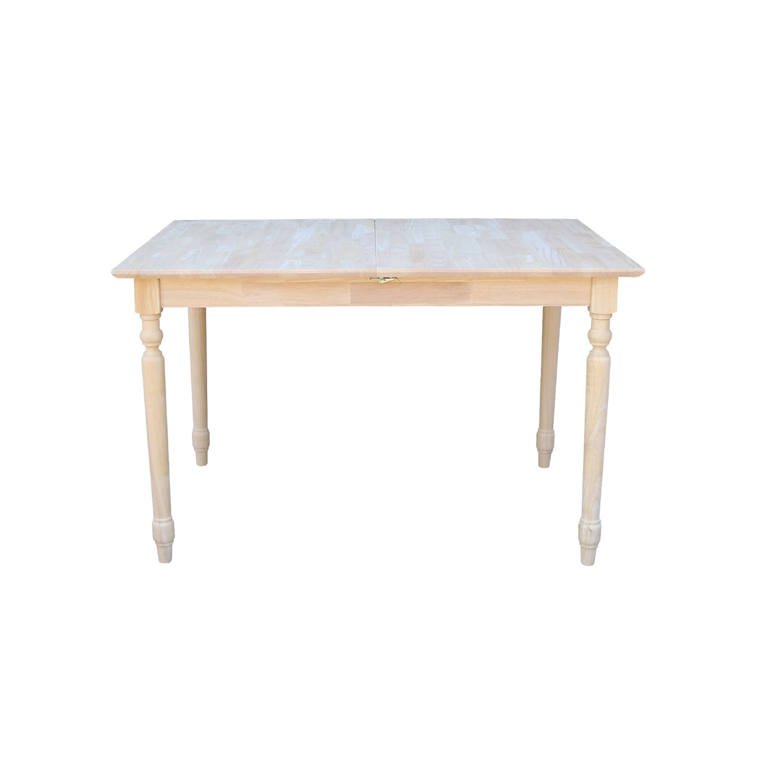 Create extra space when needed in your kitchen or dining room with this extension table from International Concepts. This versatile table is crafted from solid wood and is part of a high-quality collection of wood furniture that will easily complement any d?cor. Parawood ? a hardwood known for its durable, strong, and environmentally friendly nature ? is used to craft these traditional tables. This table easily pulls apart on metal glides allowing you to insert a 12-inch leaf, adding to your dining space and accommodating additional guests. Pair with a wide variety of chairs and stools from the International Concepts seating collections to create the perfect dining experience! Whether you are enjoying a cup of coffee, a daily lunch, or a Sunday dinner, you will have this extension table to appreciate for years to come.