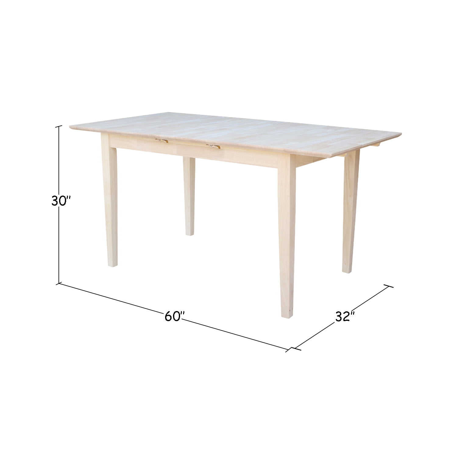 A dining table is also great for entertaining. And you will want to show off this table that you have custom finished yourself. Solid Wood so it will last for years and years. Make this table a part of your home. Parawood is a hard wood that comes from the great rubber plantations of Malaysia. The density of parawood is comparable to that of birch or ash. Its strength is rated the same as maple. Parawood is easy to finish and matches well with a variety of other woods. Once a rubber tree is no longer able to produce sufficient quantities of latex, it is cut for the process of furniture making and a new tree is planted in its place. This is an example of man’s ability to fully utilize our natural resources, without harming the environment. Features: Dining table constructed in solid wood Ready to assemble Butterfly extension top, expands to 60 inches For use with dining height chairs Turned styled legs Butcher block top Specifications: Product Dimensions: 30″ H x 32″ W x 48″ D Product Weight: 76 lbs