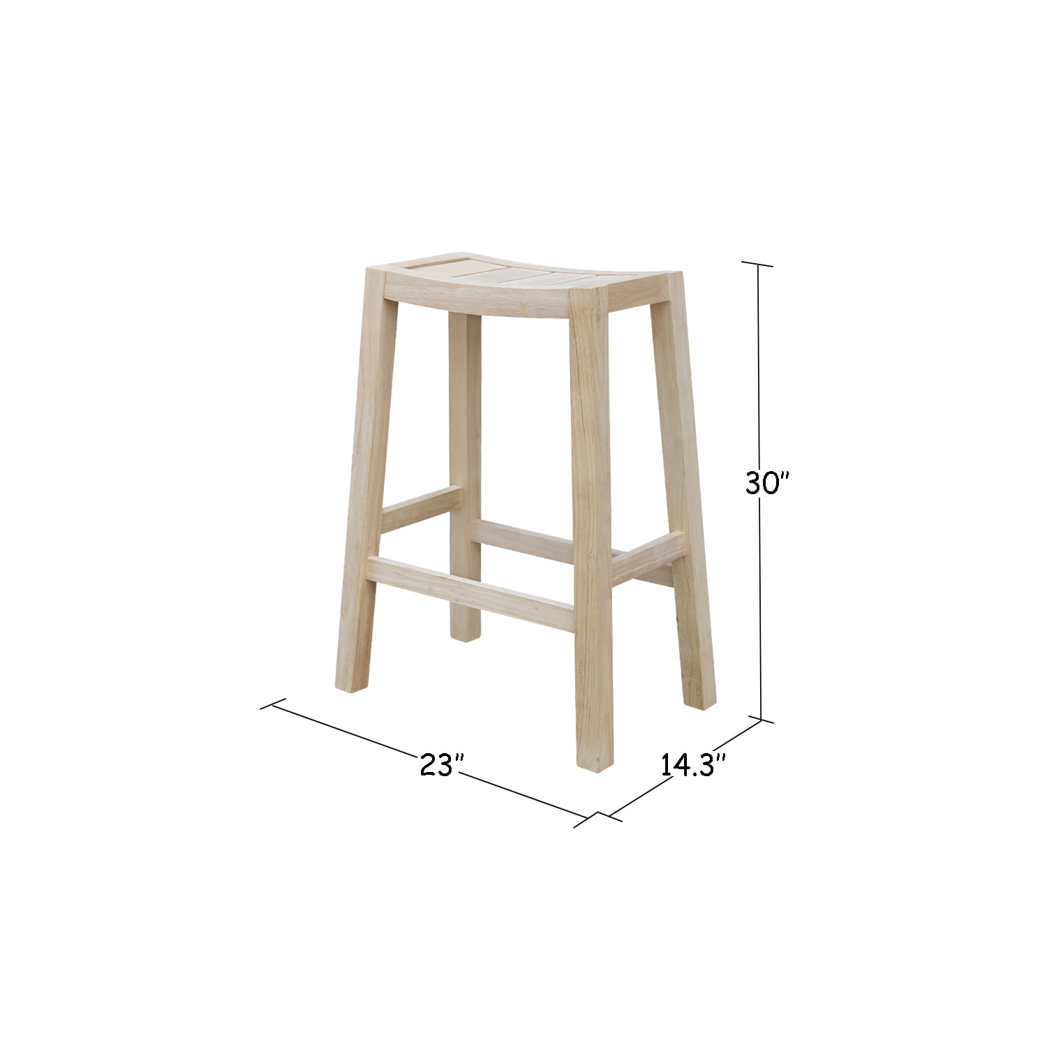 Dimensions: 22.99″W x 14.29″D x 30″H Seat dimensions: 15.16″W x 9.92″D x 30″H This is a piece of wood that has not been treated or finished yet, which means you can paint or stain it in any color that you prefer Made from solid hardwood Box seat construction for easy assembly Not rated for commercial use, for residential use only