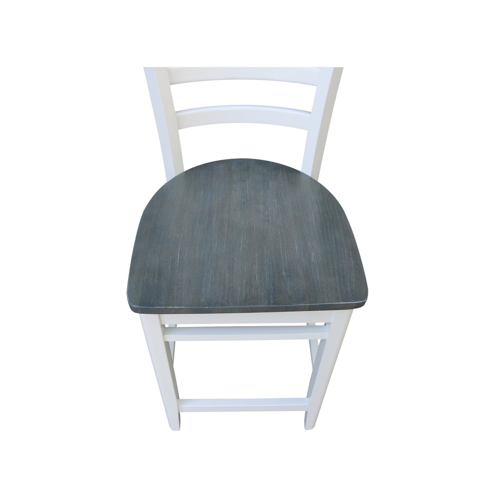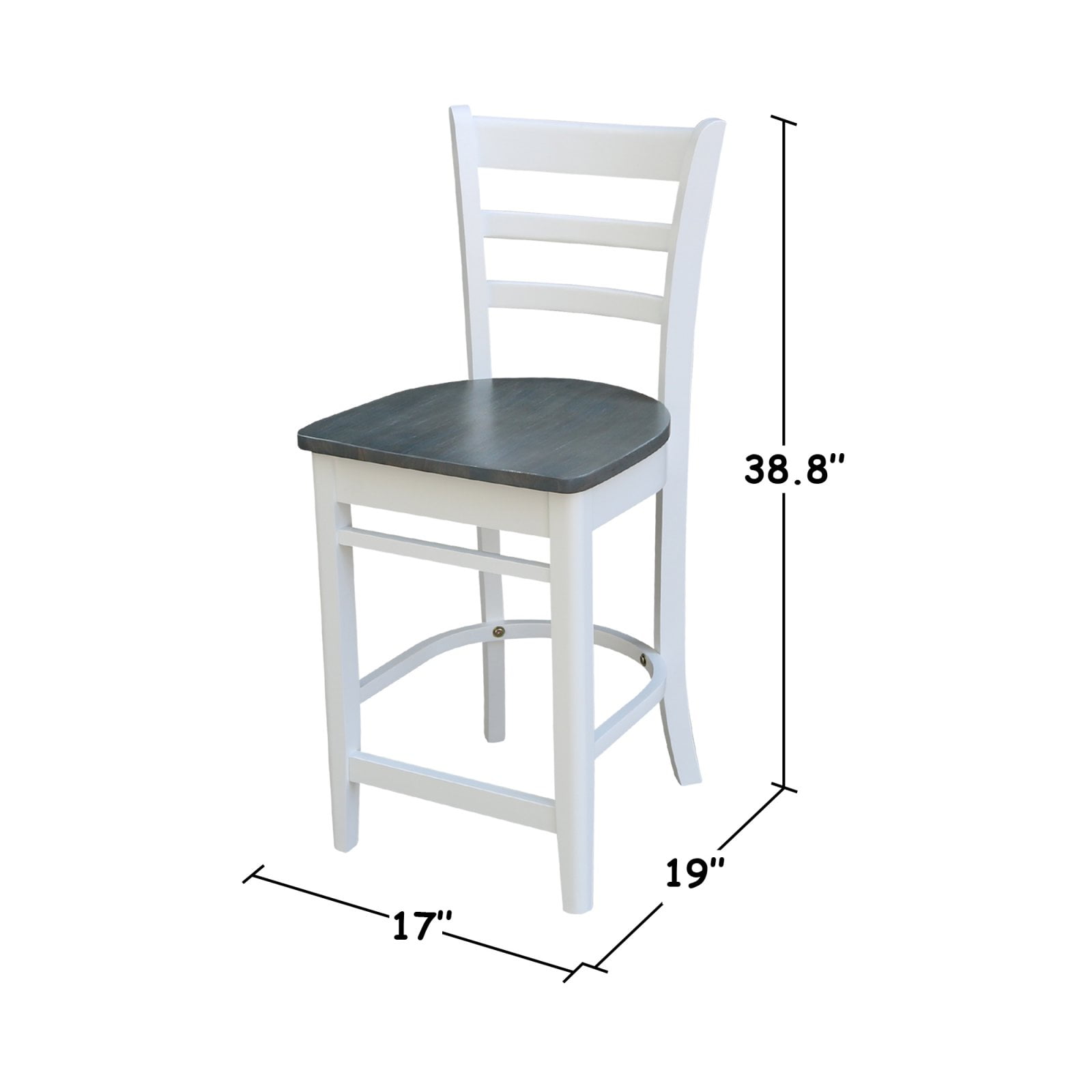 Dimensions: 17W x 19D x 38.8H in. Solid hardwood construction Choose from available finishes Box-style seat construction Curved legs and lathe-turned footrest Curved backrest with a flared, ladder-back design Seat Height: 24 in.